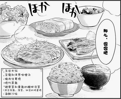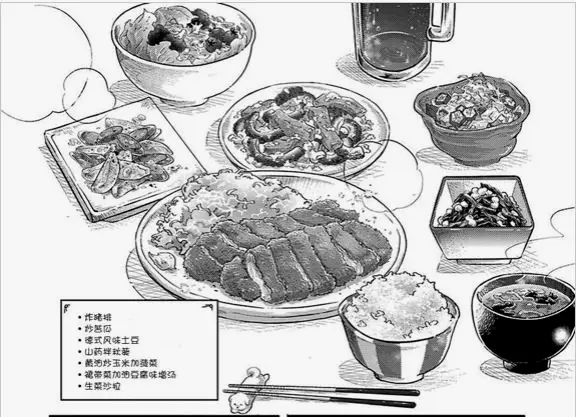 漫画中的菜式大多都是平凡朴实的家常菜,作者也没有着力描写饭菜的色香味。但是看到男主狼吞虎咽大口扒饭的样子,读者却能不由自主地产生“哎呀看他吃得这么香下次我也试试”的想法。一部优秀的美食漫画,应该能让读者回想起食物的美妙滋味与吃饭的幸福感,让他们由衷地产生食欲。假如做的都是读者从未尝试过的菜品,又怎么能让读者感同身受呢。