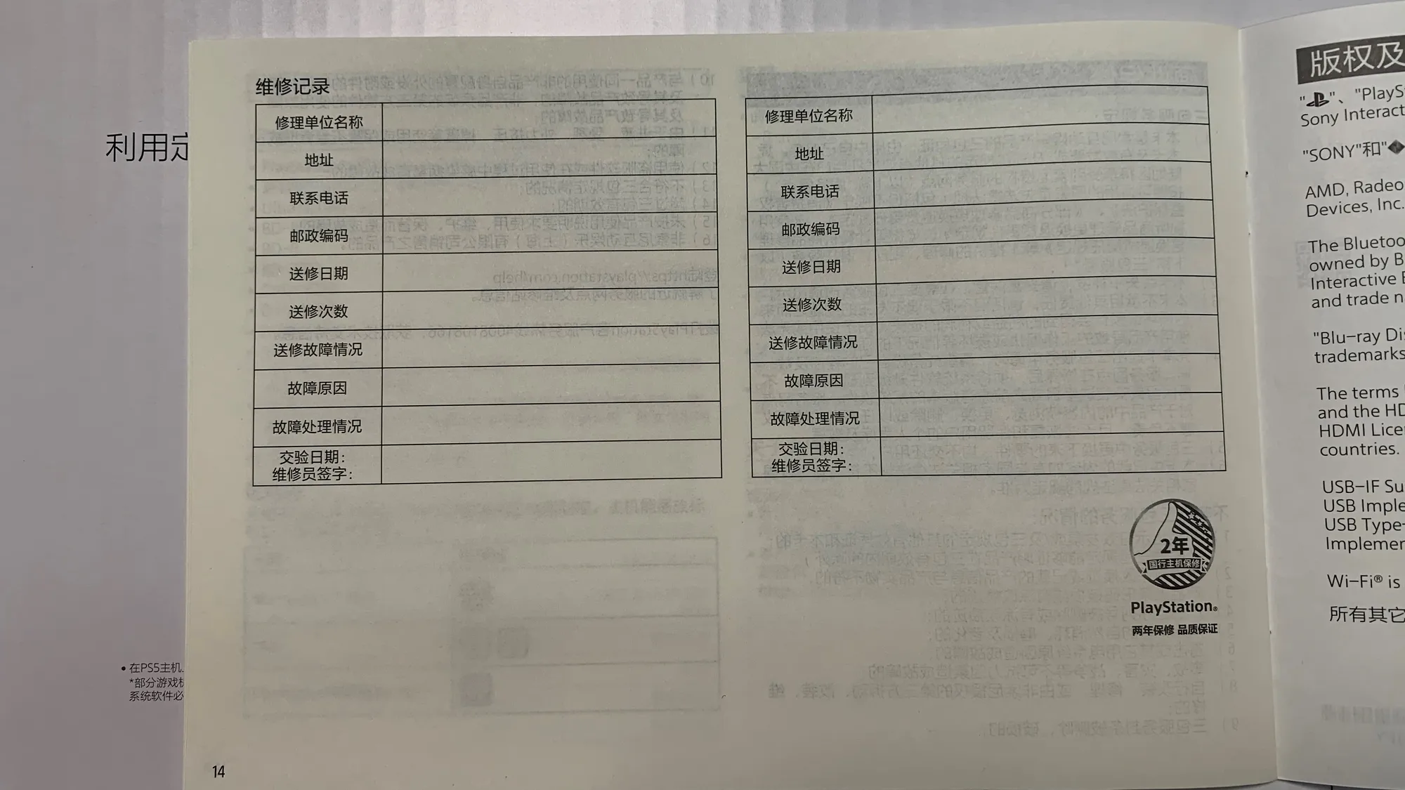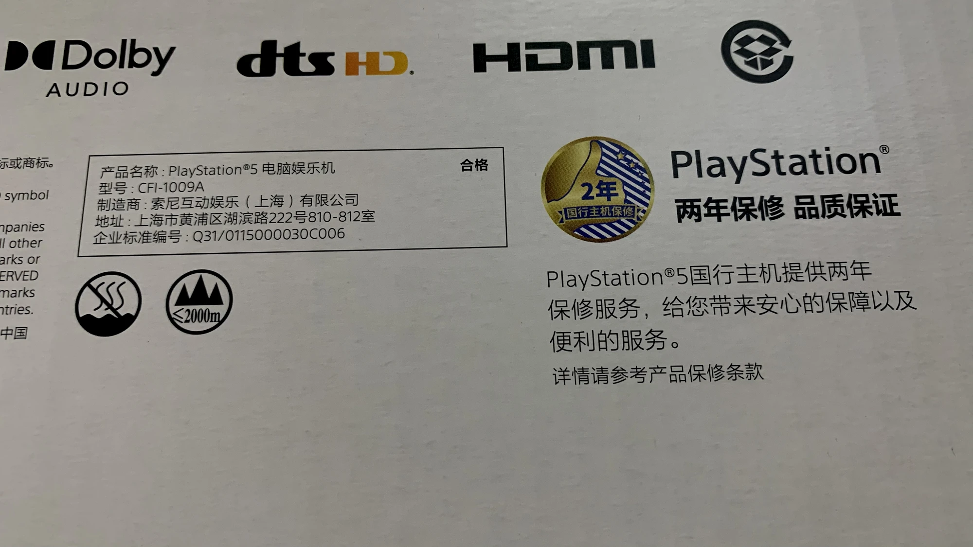 此外,国行 PS5 的外包装与保修书上也写明国行主机拥2年质保服务,无线控制器拥有1年质保服务。