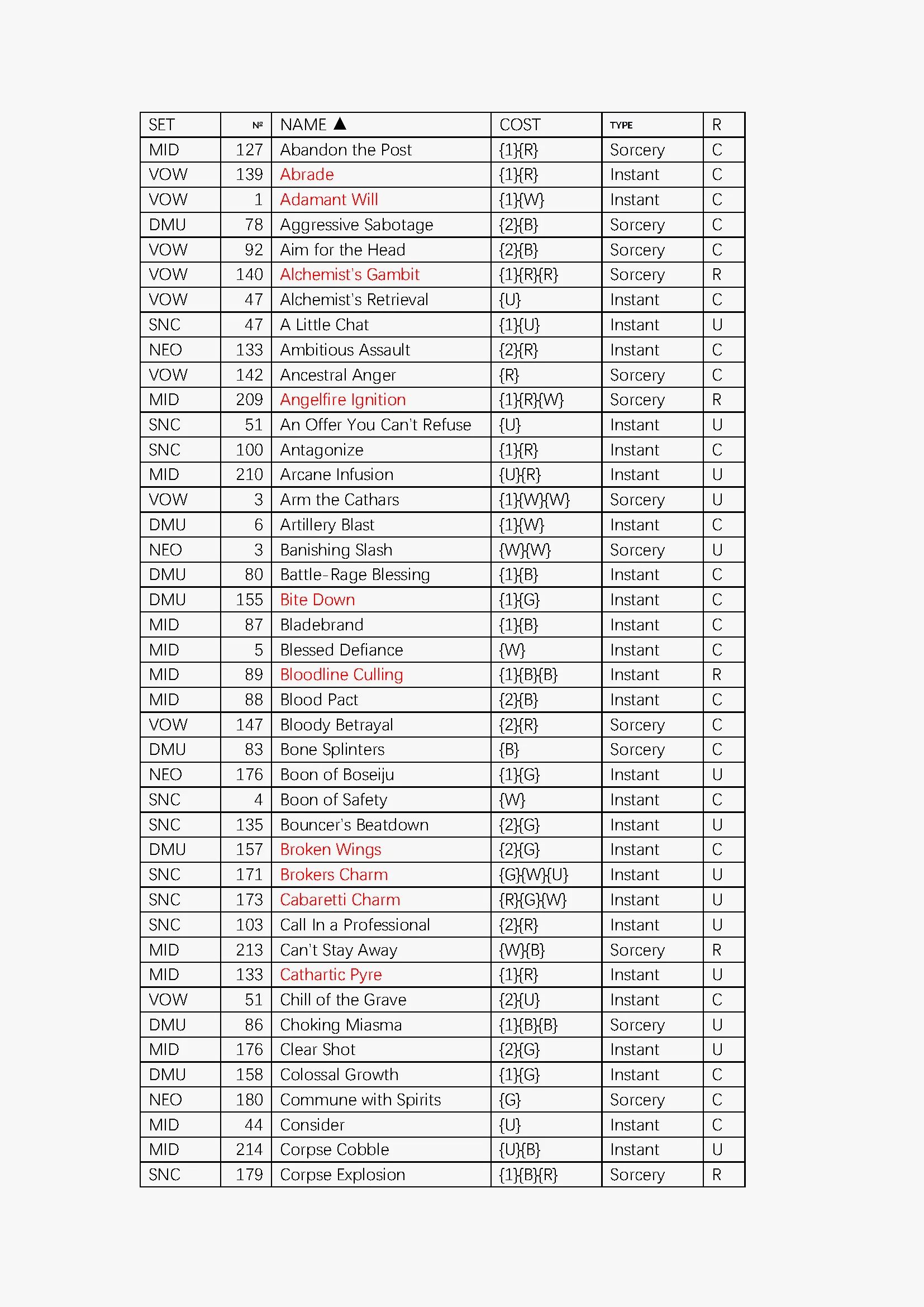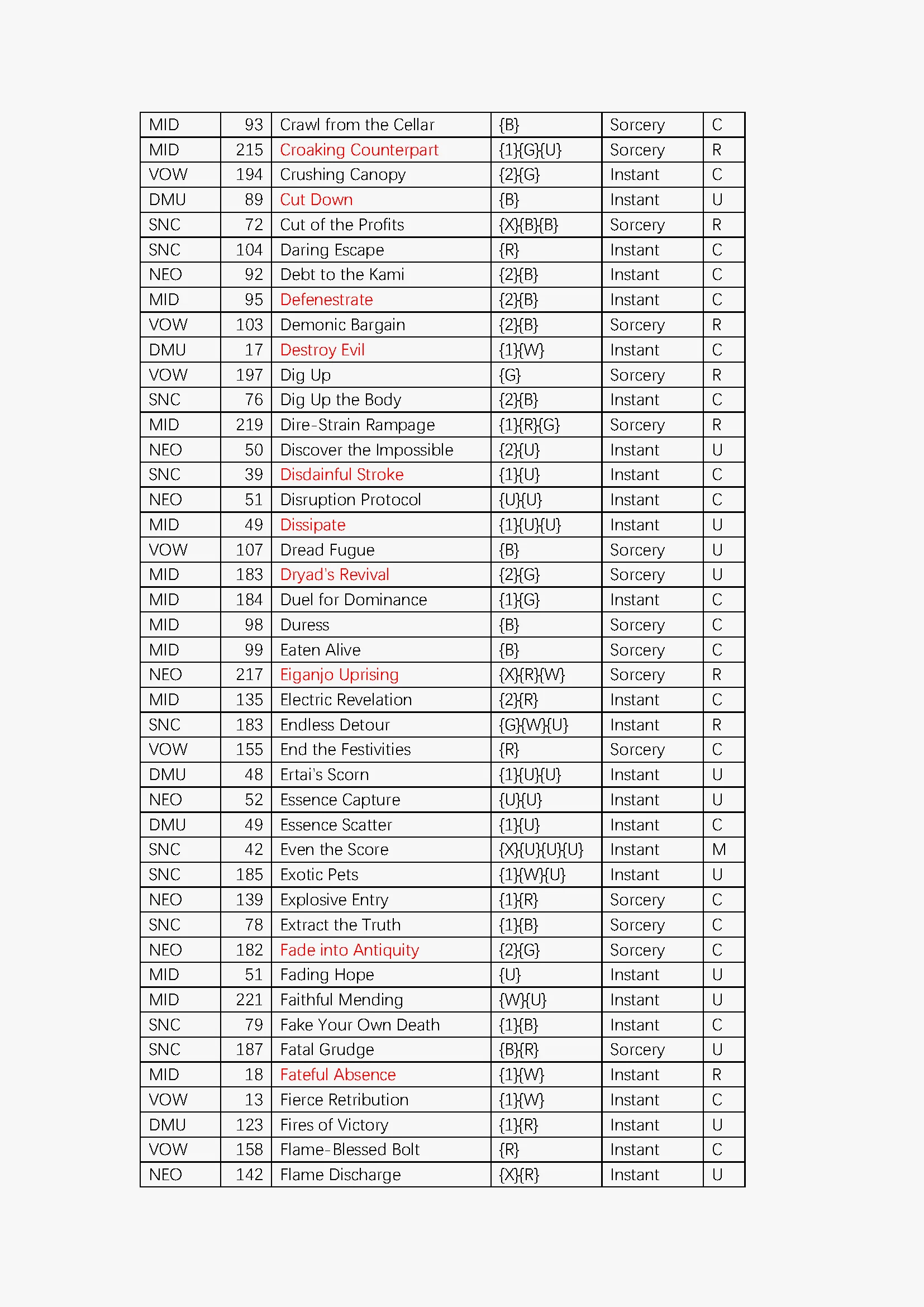 符合条件的咒语一共246张在下表,标红为好用牌。(Yuukuri:alphabetical order, pain in the ass)点击跳转 11.在本系列的生物中bar-entry杀不掉X个生物(第一条或第二条都杀不掉)。评价标准如下: