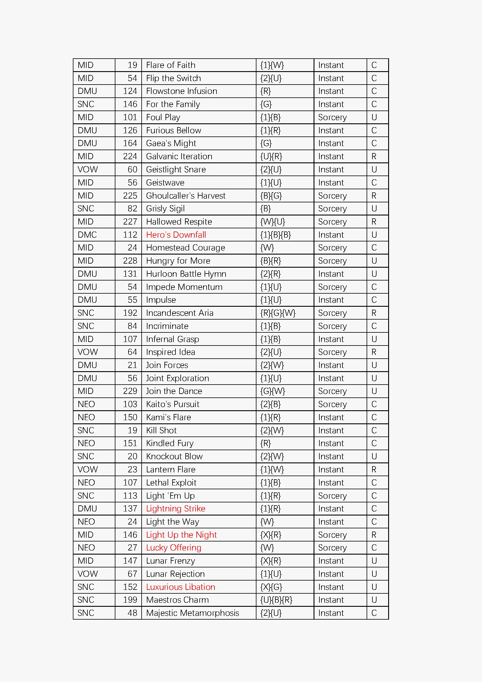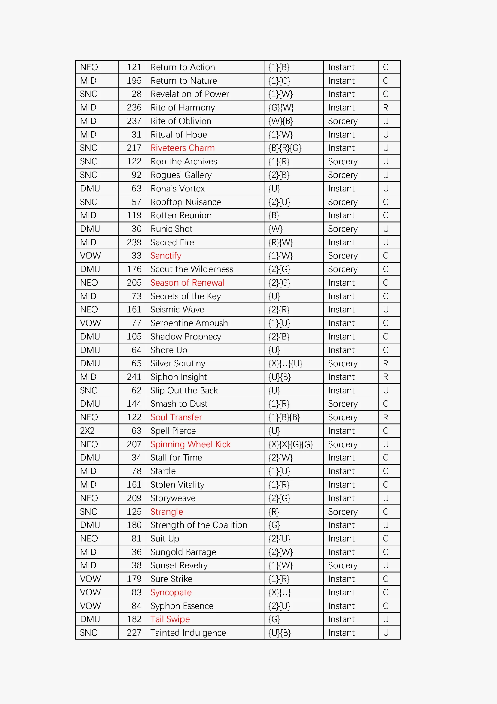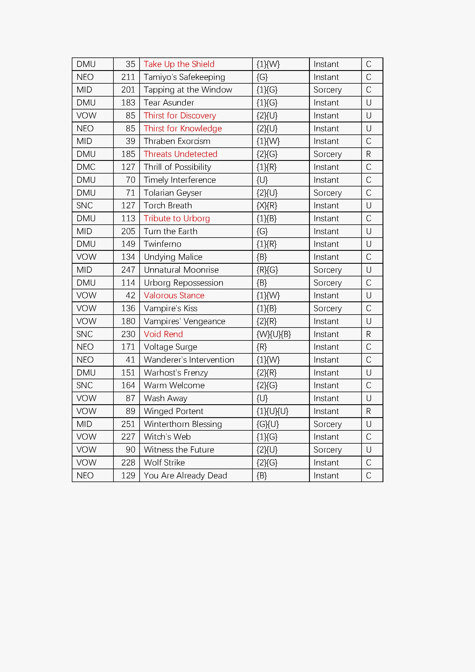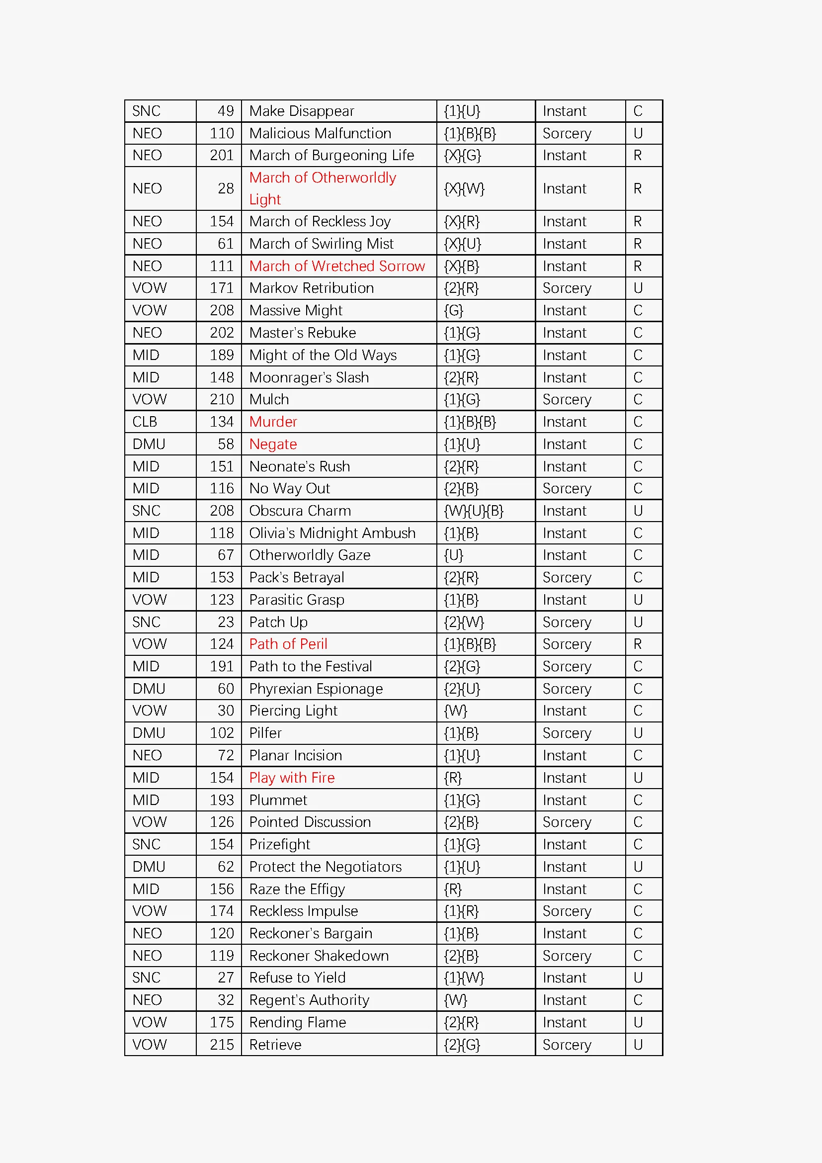 10.背下现在标准常用3费去除,抓牌,弃牌的法术瞬间咒语。注意一些X费的咒语会很超值,比如永岩城起事,拉平得失。另外增幅或贯通咒语也会变得超值。
