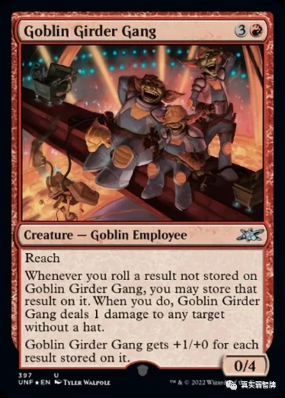 2.戴一顶帽子。本系列有很多和帽子有关的牌,带着帽子你将会获得很多收益。最重要的一点就是你不会被Goblin Girder Gang 点到了!