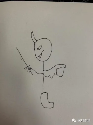 29.练习一下简笔画,要在15秒内画出一个有角、尖牙、卑鄙眼睛、带翅膀、拿着剑和盾,穿着鞋子的角色。根据本人设计(Yuukuri:so efficient, so ugly),下图是满足所有要素,又很好画的版本。