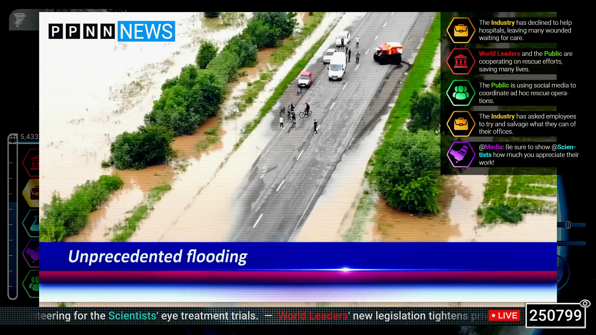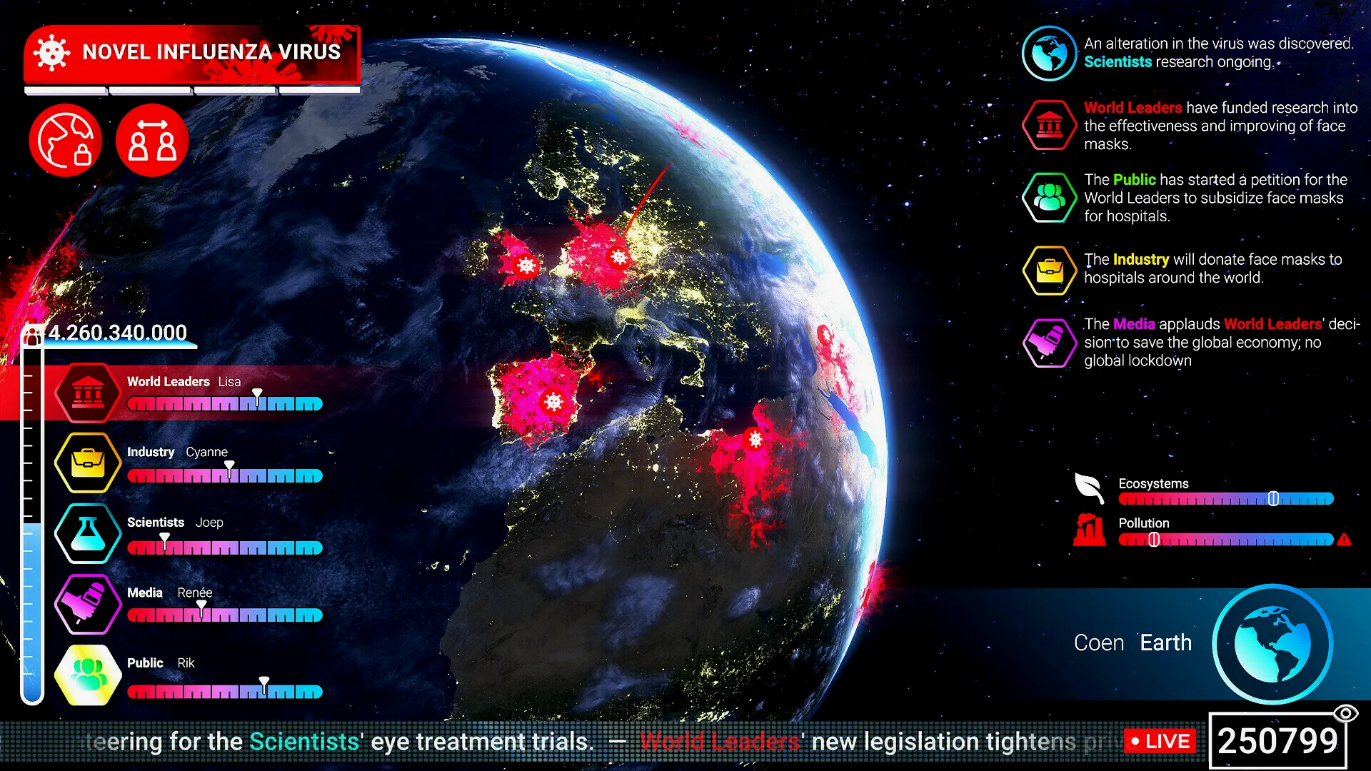 同时,扮演人类的玩家则可由最多五人组成世界领袖、工业、媒体、科学家和公众的团队,尝试生存。随着多种多样的分支叙事,玩家所做的每个决定都会引导人类走向不同的道路。你会优先考虑整体利益吗?还是个人利益会占据上风?
