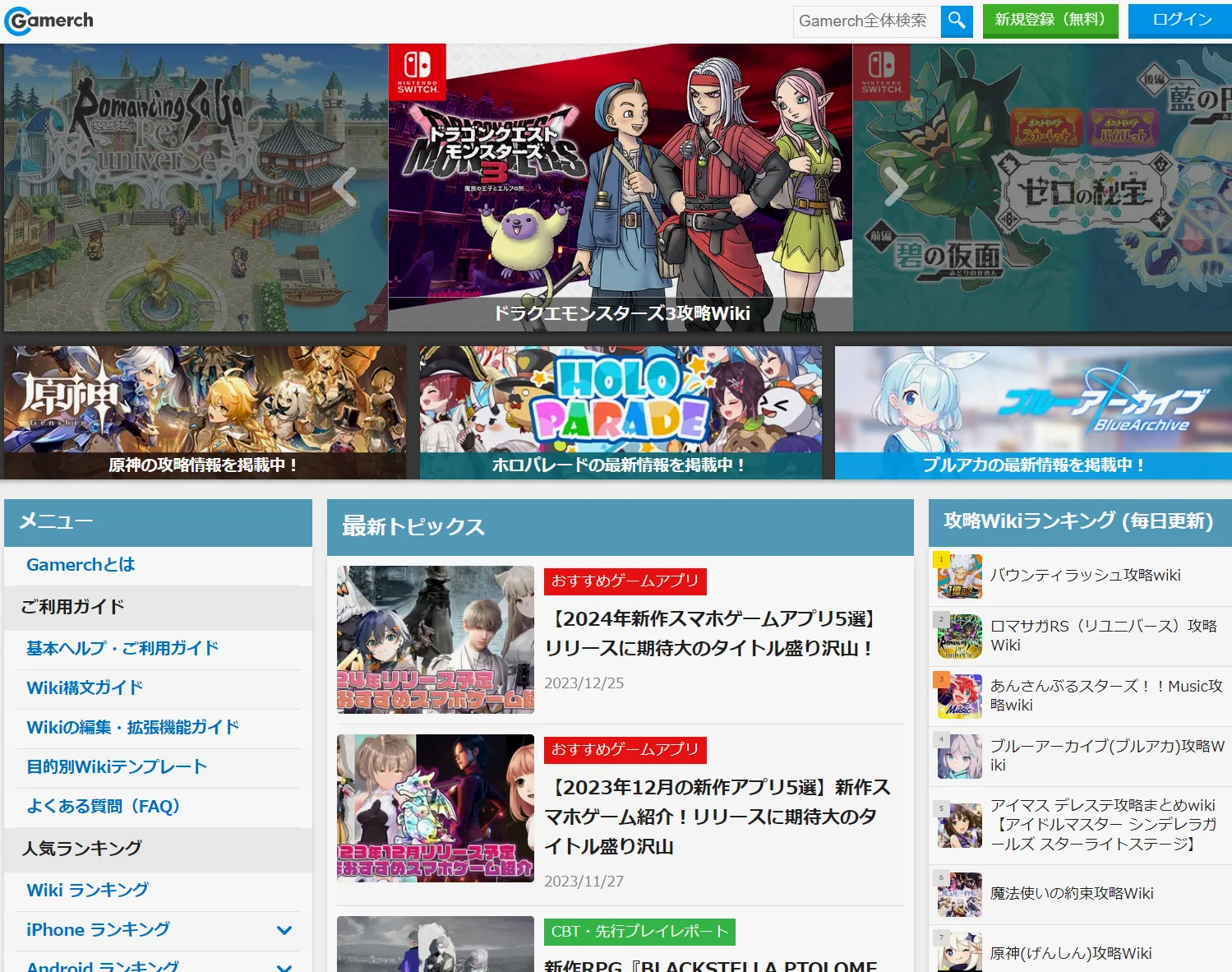 ①Gamewith:头部游戏类社区之一,有网页版和app版,以游戏资讯、攻略、排行榜为主。