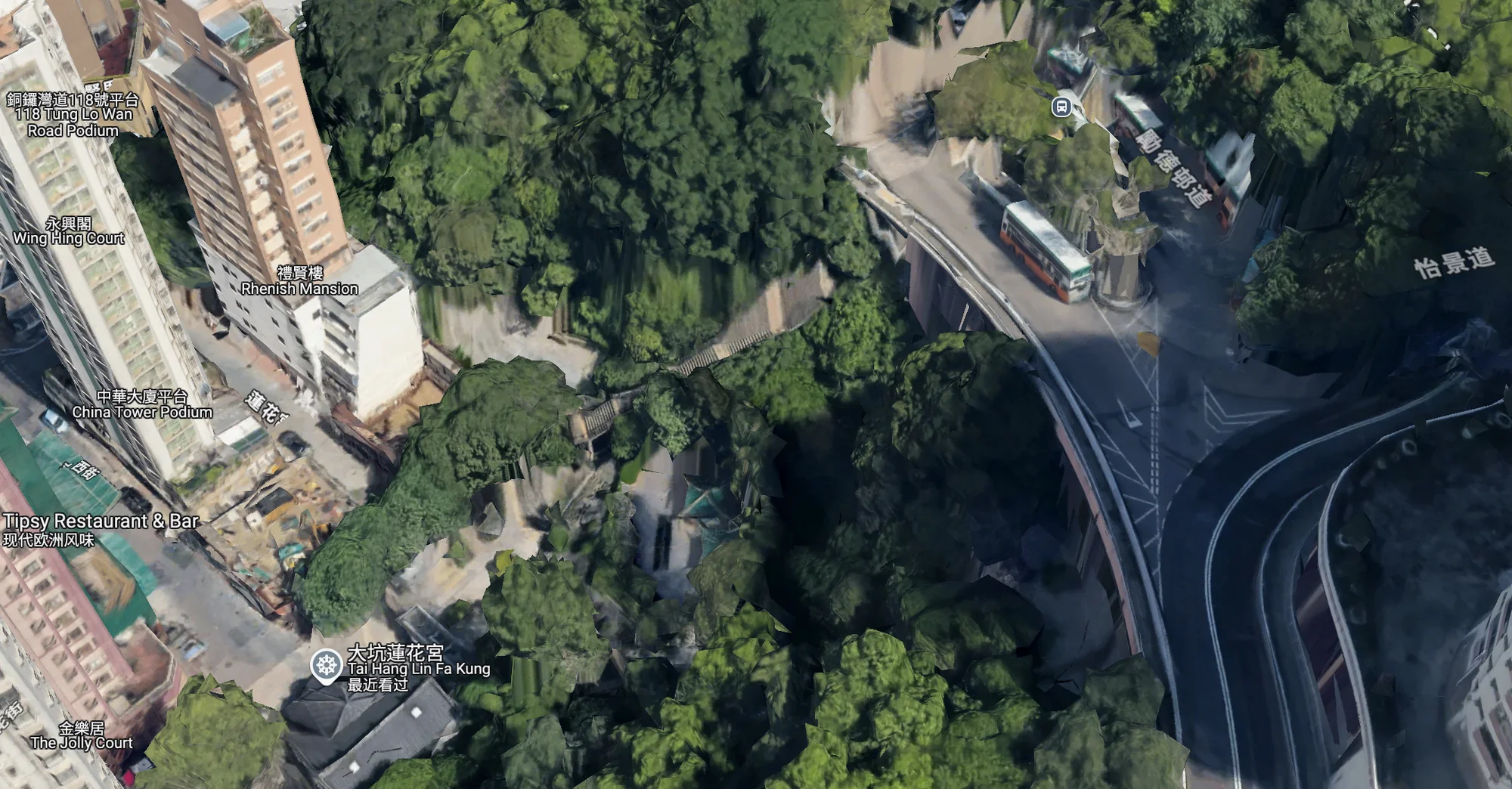 接着,如果留意观察,会在励德邨车站环岛处找到一条隐藏的楼梯。这条楼梯藏得颇有趣味,不易发现,但一旦踏上,便能感受到其别样的魅力。沿着楼梯缓缓而下,两旁的树影婆娑,阳光透过枝叶洒落,仿佛进入了一段静谧的森林小径。这条美丽的楼梯通往大坑莲花宫,行至终点。