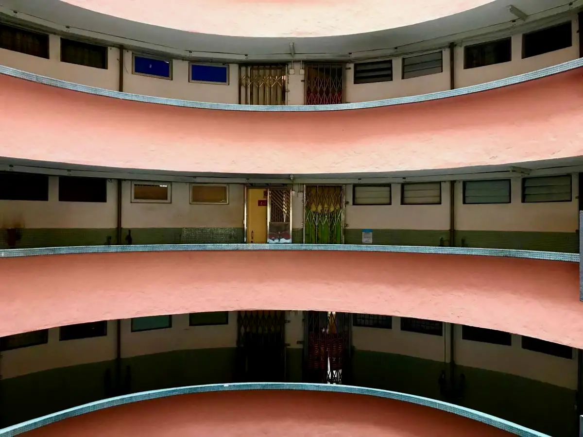 在大坑旧区逛得尽兴后,沿着浣纱街的楼梯拾级而上,来到浣纱街儿童游乐场,左手边便可见一座历史悠久的四层楼房——融苑。这栋建筑建于上世纪50年代,承载着岁月的痕迹,静静地矗立在斜道上。融苑是英殖时期兴建的公务员合作社房屋,居住者多为高级公务员,因此被称为当时的“平民豪宅”。其设计比传统的战前唐楼更加现代化,单位宽敞实用,层高挑高,还配有大露台和落地玻璃,充分体现了当年精英阶层的生活品味。