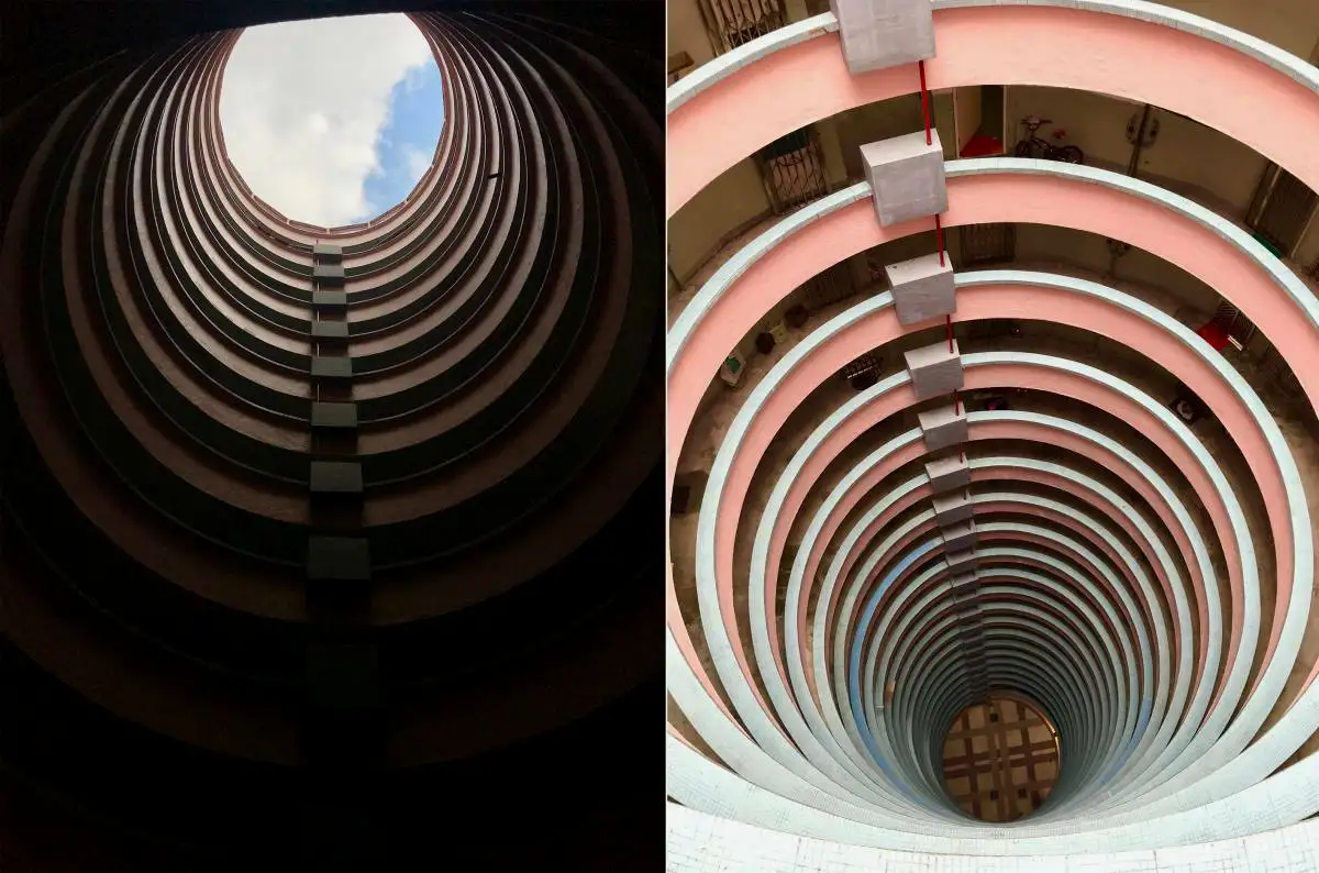 励德邨在落成时备受关注,因为在当时的众多廉租屋邨中,它的租金是最高的,堪称“豪华版”廉租屋。特别是励洁楼和德全楼,以独特的“圆筒形”设计闻名,这种设计至今仍是香港建筑中的罕见之作。作为香港唯一的圆柱体廉租屋大厦,其设计在美学与实用性之间找到了巧妙的平衡,而楼梯间采用的三角形布局则进一步展现了建筑师对空间的独特理解。