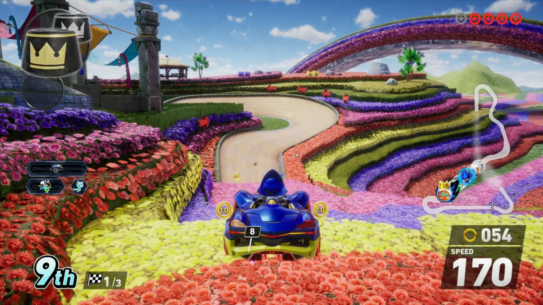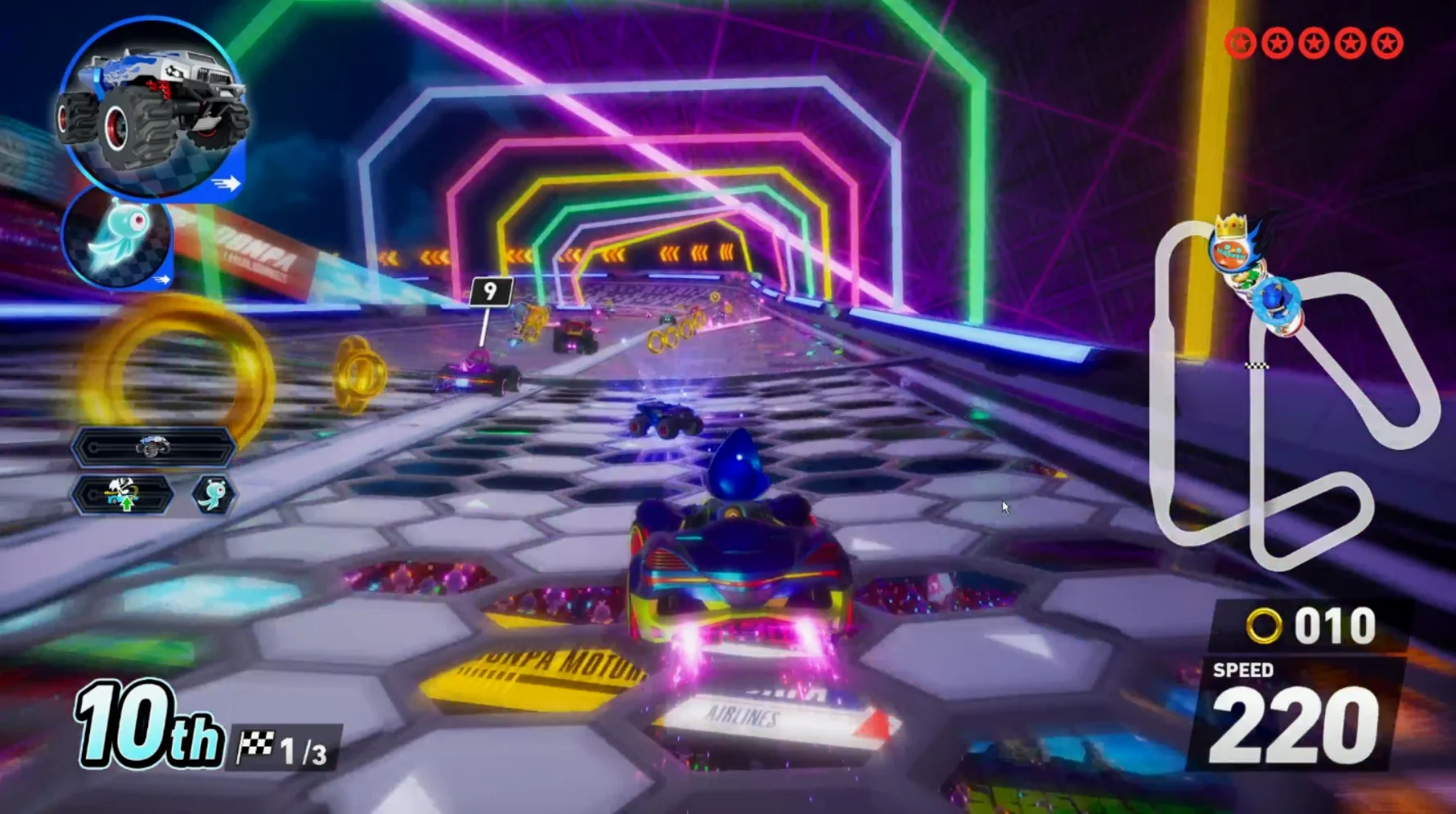 作为非常典型的卡丁车竞速游戏,《索尼克赛车 交叉世界》在赛道上和对手之间的博弈主要围绕着道具展开,从普通的加速到能让全场陷入混乱的干扰道具应有尽有,其中的大多数道具的效果就像是隔壁的《马力欧卡丁车 世界》一样,玩过后者的玩家在跑上几圈后就能很快上手。