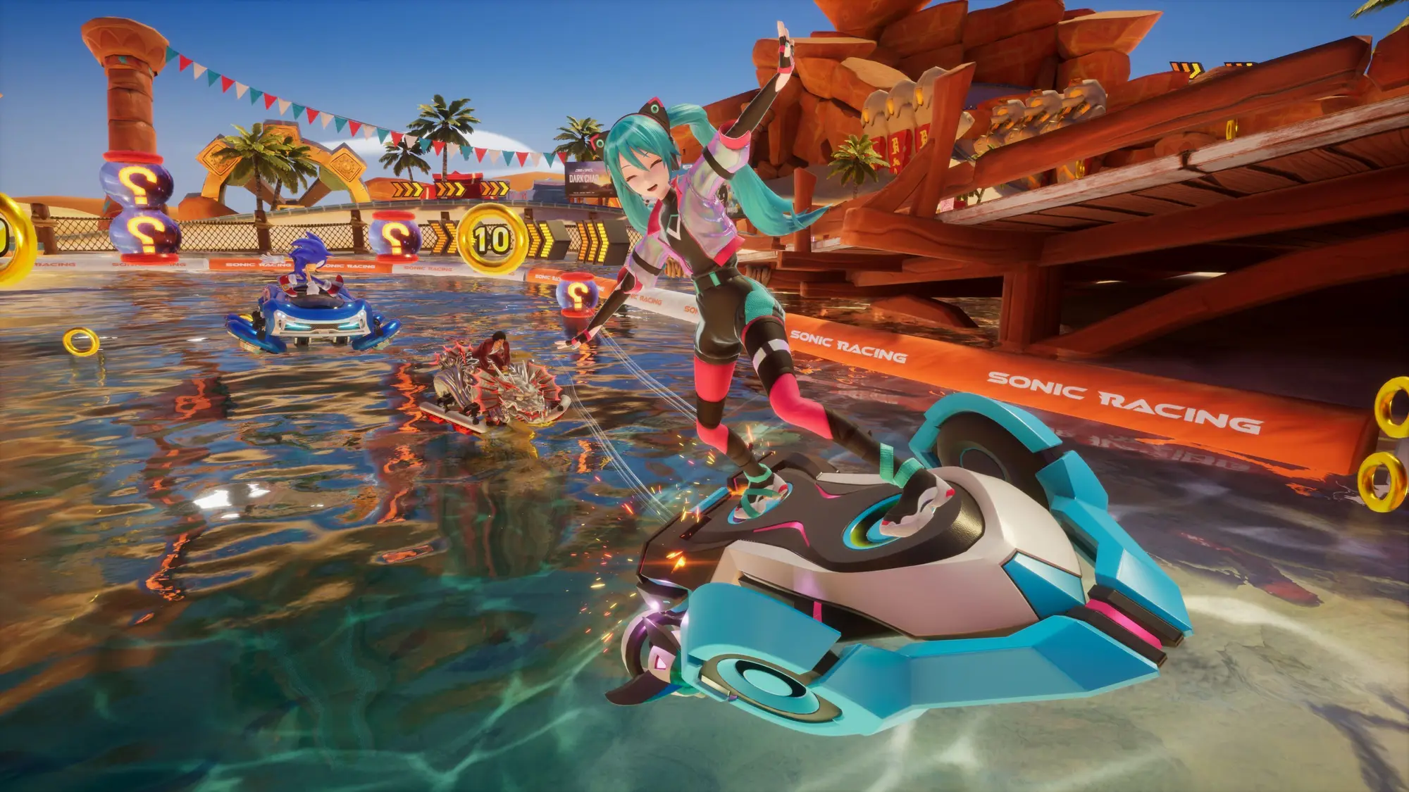 10月3日,我们还将迎来初音未来的联动活动,玩家们可操作穿着全新原创服饰的初音未来,驾驶专属赛车“Diva Macchina”游玩本作,游戏中实装5首索尼克&初音未来音乐联动企划“Project ONSOKU”歌曲,可通过点唱机功能在比赛中播放。