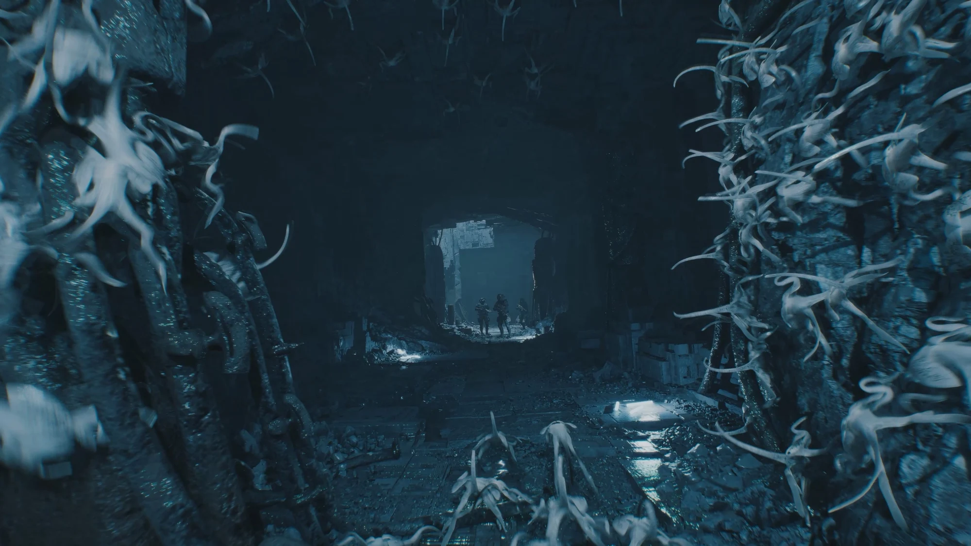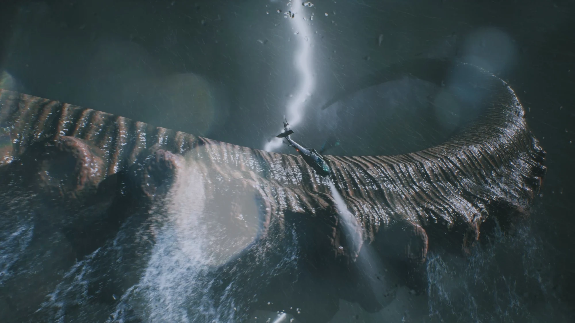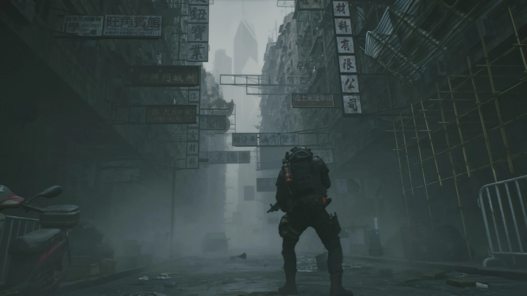 4分钟预告在很多首曝作品中都算相对较长的,但《灰境行者》这4分钟的视频中十分密集地塞入了大量展示游戏风格与氛围的内容。看似杂乱的敌人与场景,其实细细捋一下就能发现其中规律。所有的敌人可以说是直接绑定在它们出现的地图中,例如抱脸虫怪物就在“黑水”地图中出现,“红绿灯头”的怪物出现在霓虹都市中。最让我印象深刻的则是在暴雨的海上平台,类似深潜者的怪物爬满了这个巨大的海上平台。在行者们登上直升飞机看似逃出生天时,海平面上巨大的触手被一道闪电所照亮。