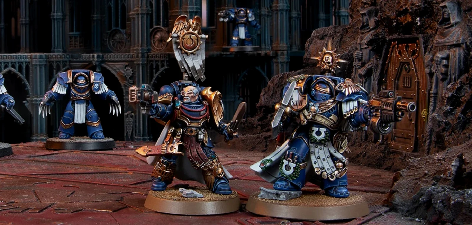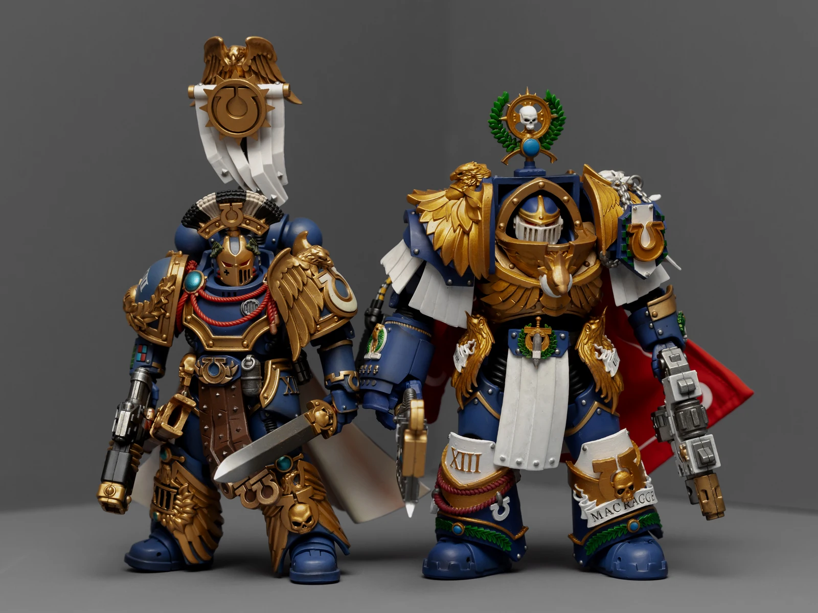 暗源早先出过一个极限战士的执政官,和其他的暗源战锤系列人偶一样,都是基于GW的棋子制作的可动人偶。这个GW的棋子是和另一个穿铁骑终结者盔甲的执政官棋子一起发售的,GW的官图、推文都把两者放在一起。可是暗源在出了这个执政官以后就一直不出U团的铁骑执政官。等了很久一直等不到,我就只好靠自己来做,顺便把自己可怜的涂装水平稍微提升一点点。