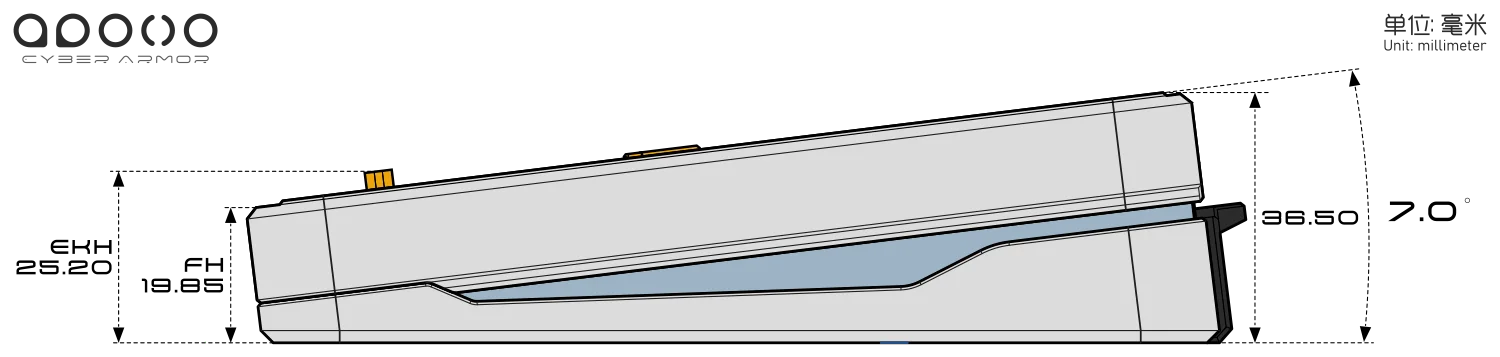 不过需要注意的是,这款套件由于 6.5° 的打字坡度,以及边缘弧线的处理,实物看上去会给人一种内胆似乎稍微“沉”在机壳里的视觉感,有点像与漏轴相反的效果。不过并不影响实际打字体验。