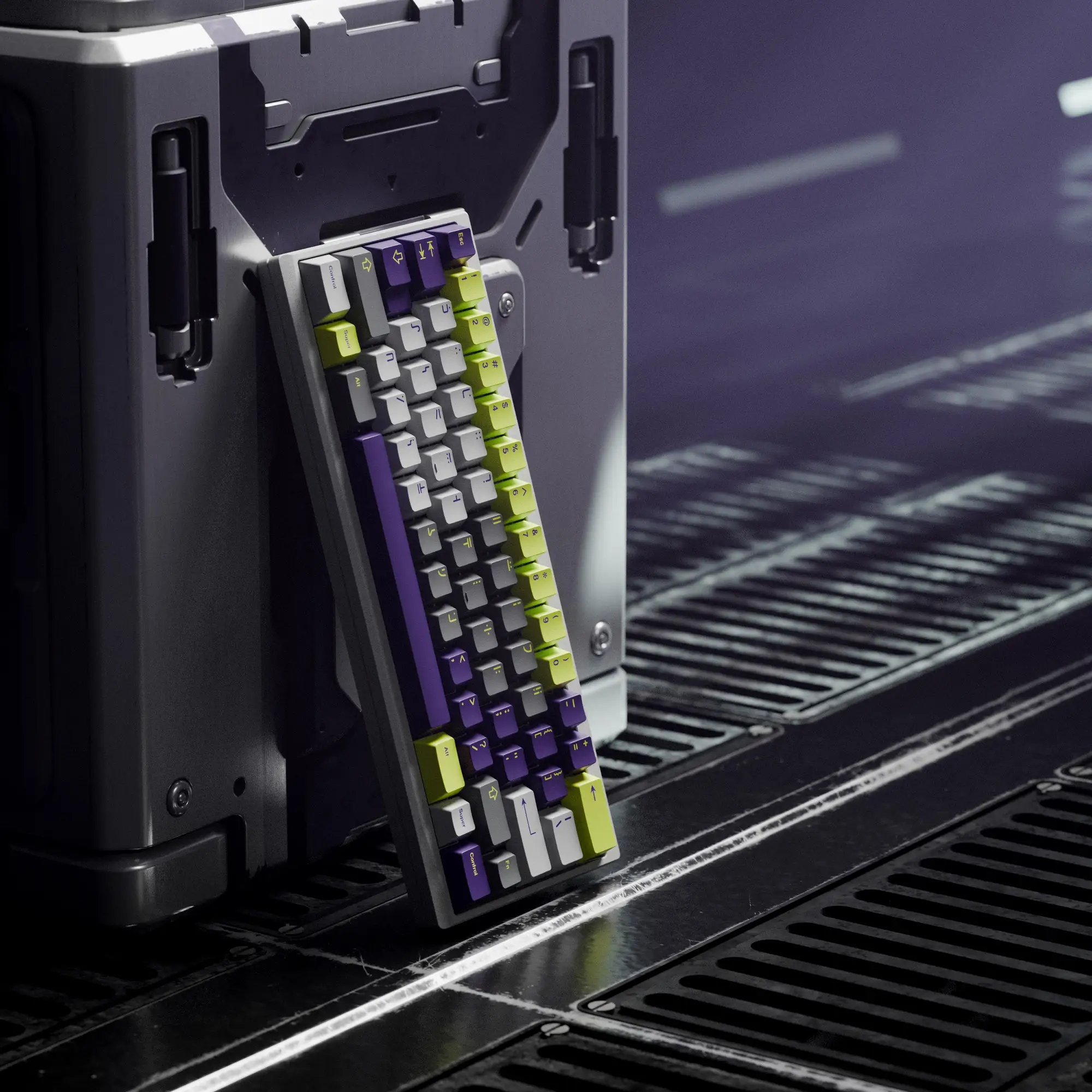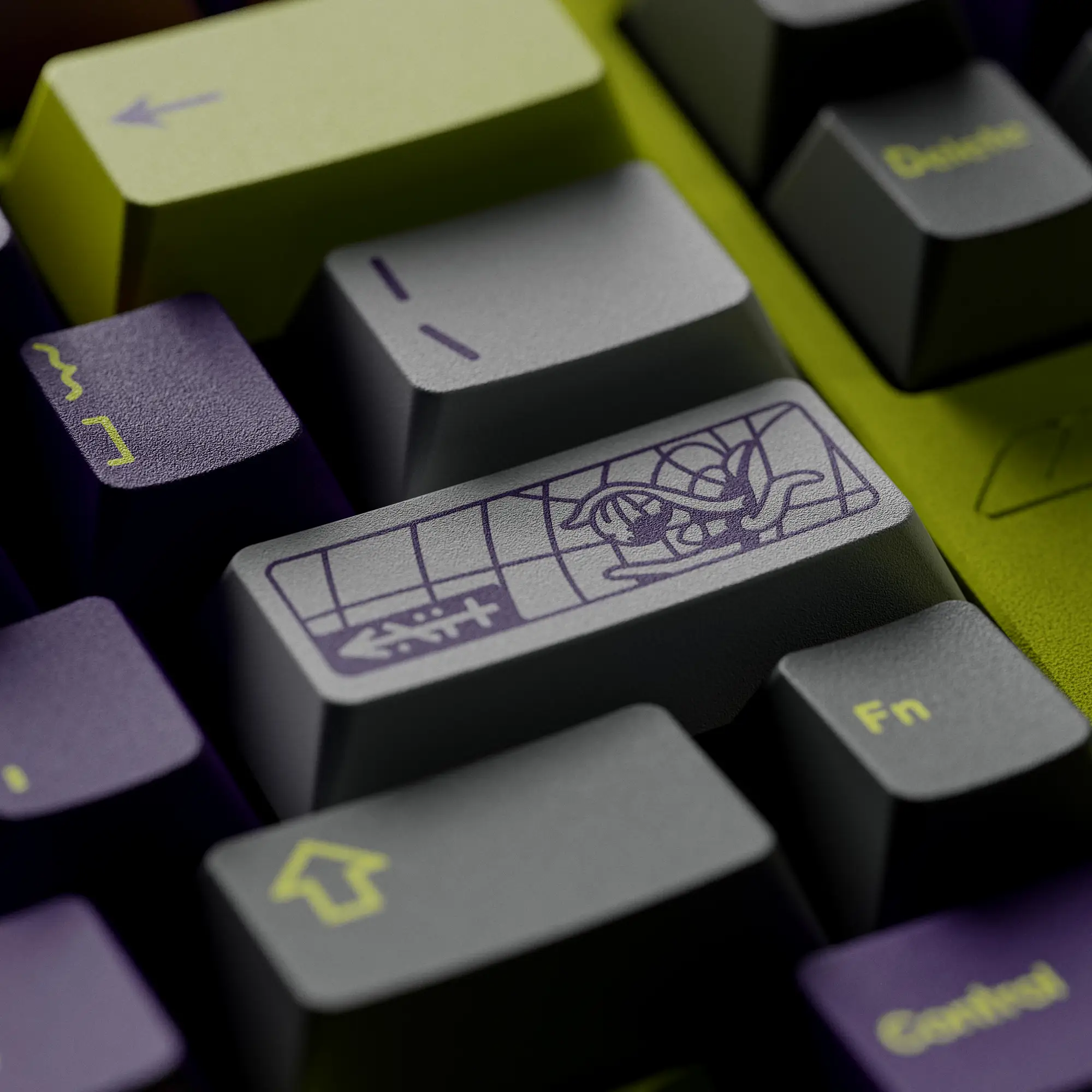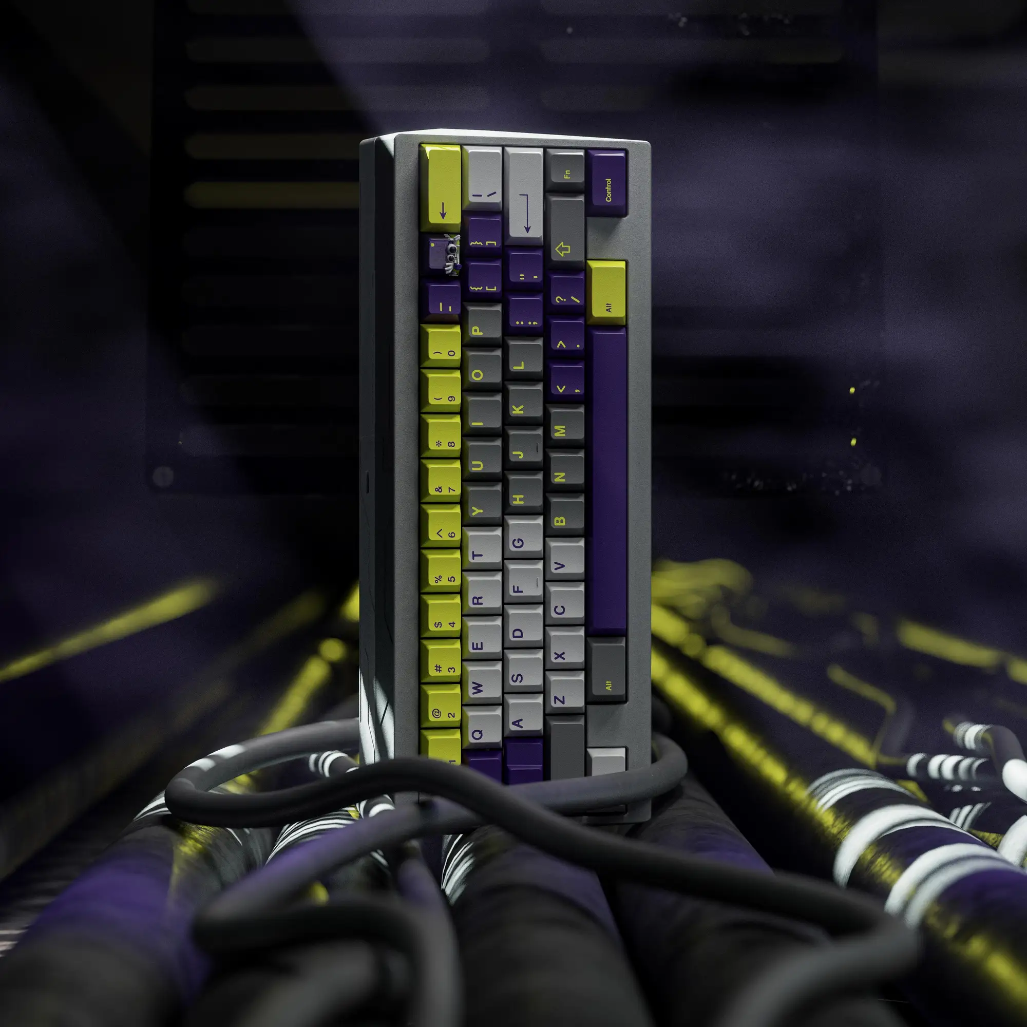 我个人还是蛮喜欢这套设计的。整体来看,NERVEWRECKER 通过冷灰与深紫的压抑基调,配合荧光黄绿色的高亮警示色,营造出一种仿佛宇宙实验事故般的视觉张力。配色对比极强,带有鲜明的危险感与侵入性,很契合太空克苏鲁和异形的灵感设定。它既有实验室般的冷酷感,也透出某种未知生物的异化气息,是一套视觉冲击力极强,但整体仍保持连贯性的设计。个性键方面略显不足,主要体现在数量较少,同时整体变化仍然基于 R1 设计,没有更多惊喜。不过一方面GMK的价格和工期还是老规矩,这套还捆绑了num,价格比小Base要贵不少。