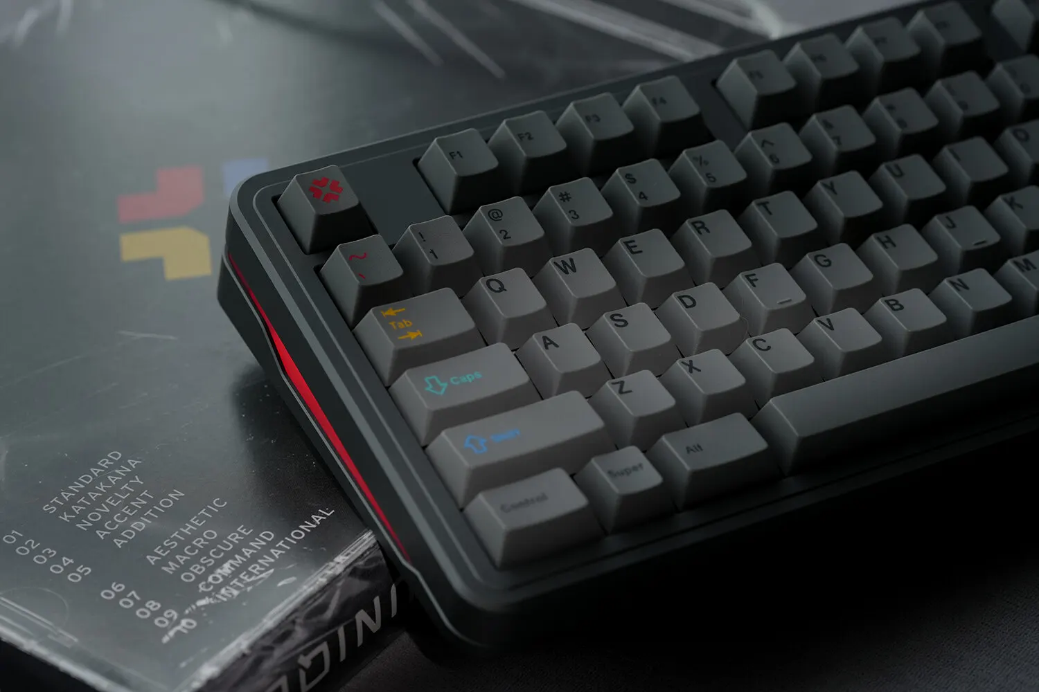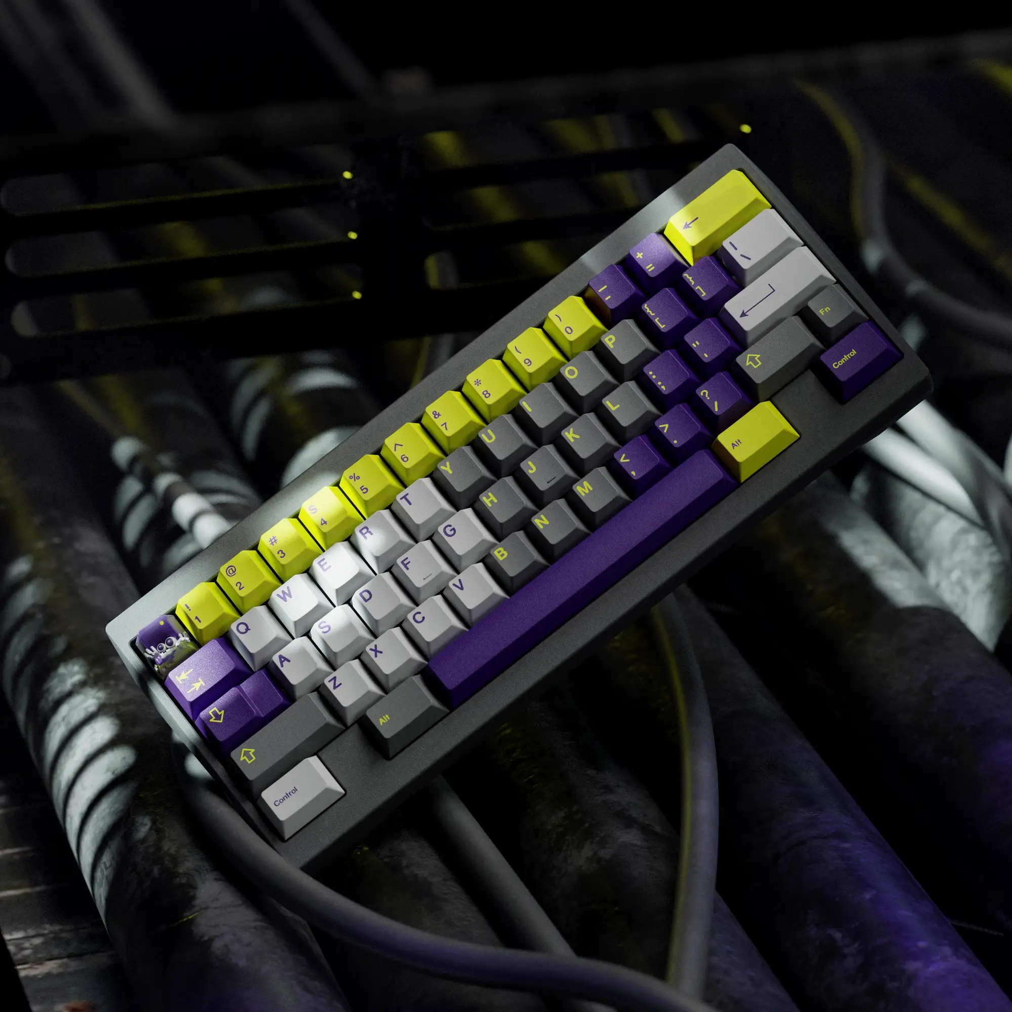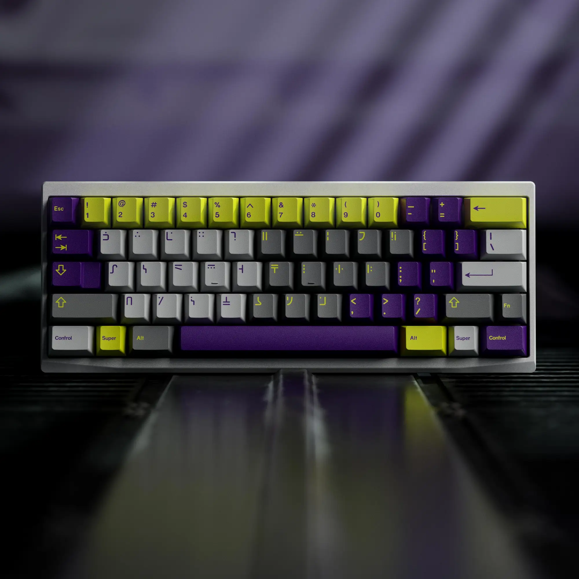 我个人还是蛮喜欢这套设计的。整体来看,NERVEWRECKER 通过冷灰与深紫的压抑基调,配合荧光黄绿色的高亮警示色,营造出一种仿佛宇宙实验事故般的视觉张力。配色对比极强,带有鲜明的危险感与侵入性,很契合太空克苏鲁和异形的灵感设定。它既有实验室般的冷酷感,也透出某种未知生物的异化气息,是一套视觉冲击力极强,但整体仍保持连贯性的设计。个性键方面略显不足,主要体现在数量较少,同时整体变化仍然基于 R1 设计,没有更多惊喜。不过一方面GMK的价格和工期还是老规矩,这套还捆绑了num,价格比小Base要贵不少。