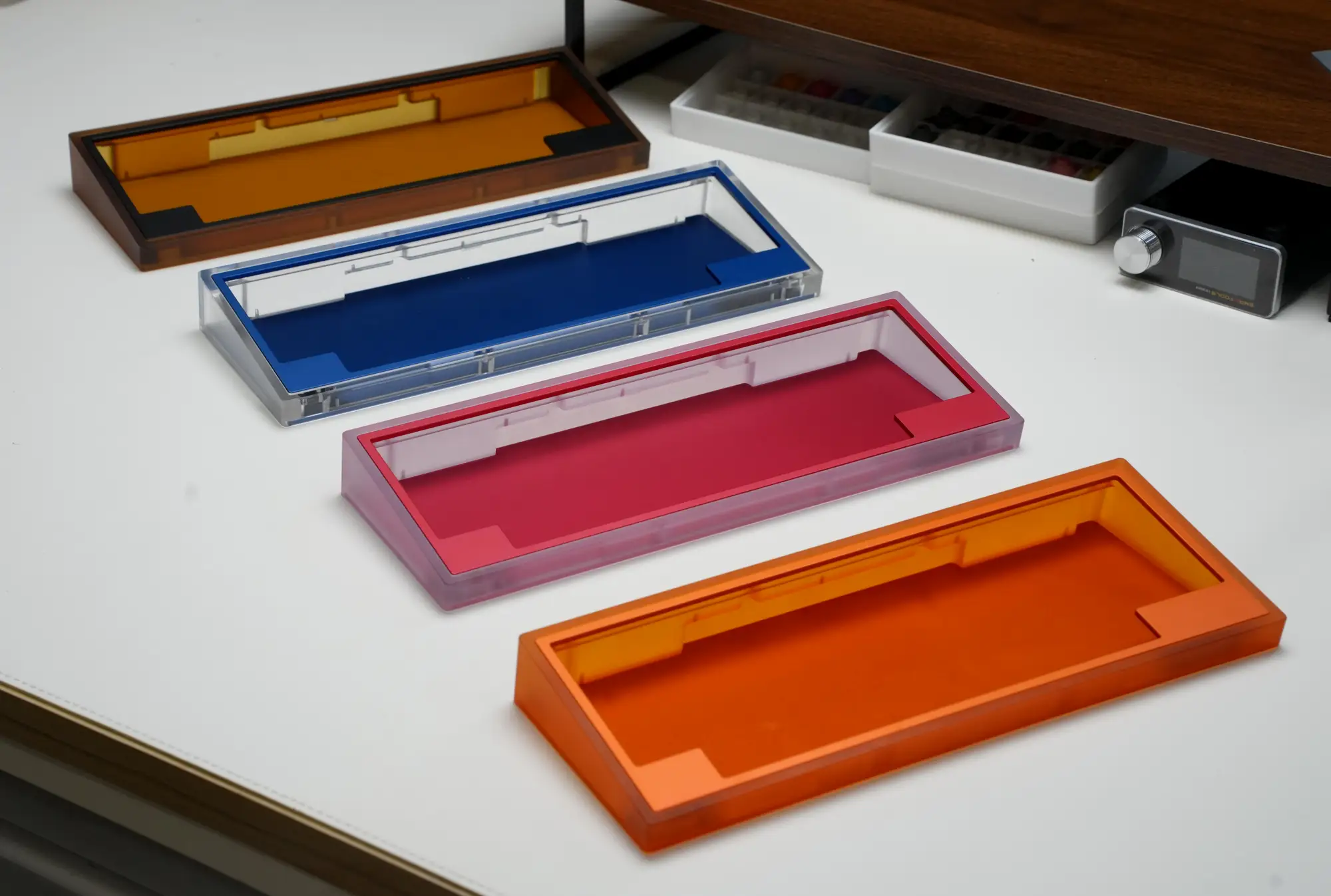 铝合金稳重且经典,会带来更多中高频的亮感;PC 和亚克力则相对通透,声音柔和顺滑;而 PEI 作为新兴材料,原生琥珀色本就自带独特气质,同时在声音上相比 PC 更清脆、反馈更强,也因稀缺和高昂的原料成本(接近铝合金的 10 倍以上)而显得格外“奢侈”。但我个人并不希望大家过度神话它——PEI 对一把键盘的价值影响并没有到“颠覆性”的程度,它的独特之处更多在于少见和昂贵的原料成本,以及那份带点稀缺性的“格调”。真正决定一把键盘的,还是设计本身,没有好的基底,再好的调味也是白搭,就像我们过去聊的各种金属、木材一样。同时 PEI 作为一种工程塑料,或者说任何非稀缺金属一样,它的价格波动本身就具有周期性,若仅仅是因为它价格高、稀少,就把它当成某种“神材”,那就有些本末倒置了。