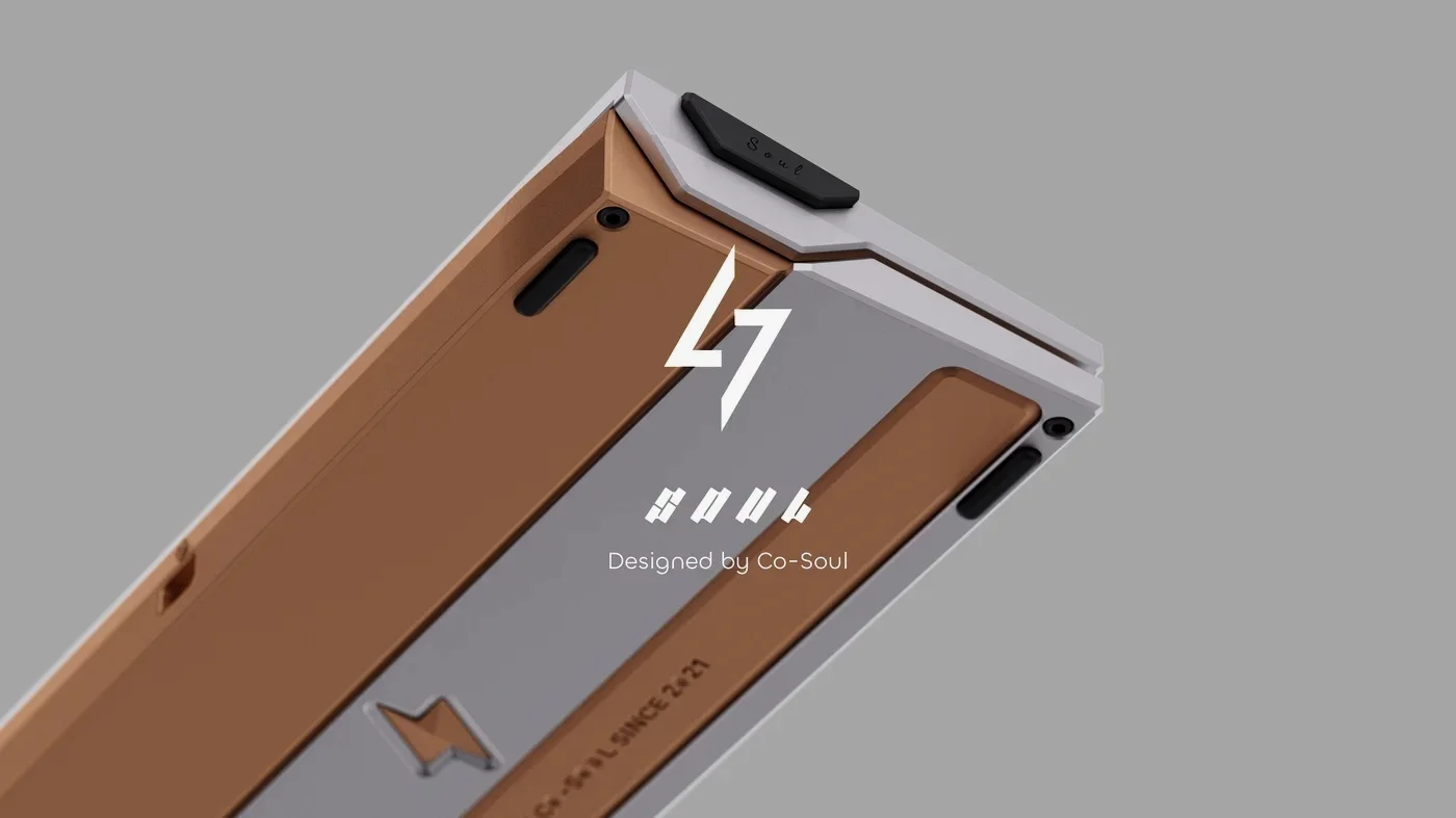 Soul65 并没有通过切削机身本体来营造腰线,而是选择在上盖与底壳饰板上动手,通过交错的线条关系勾勒出一条梯形的留白,带来一些拼接感。这次灯条饰板也与上盖的外形形成呼应,在轮廓上做了一些线条变化,同时融入了栅格装饰与 “SOUL” 的阴刻处理。