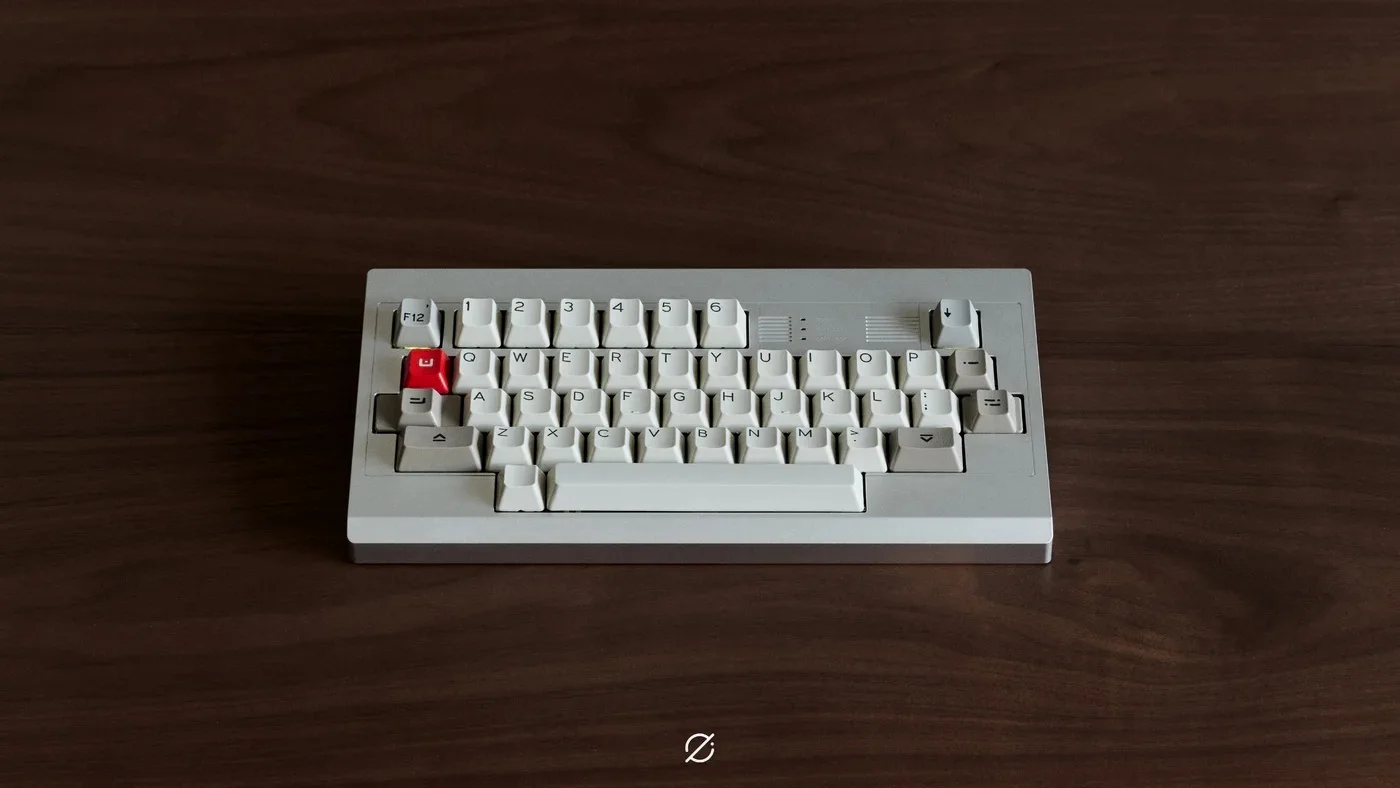 整体的配列设计会让我想到V4N4这款45%套件,而在外观上,HX-40 则深度提取了 HX-20 的诸多复古设计元素:正面采用面板式区块划分、顶部保留栅格状散热孔与带注释的阴刻指示灯区域;前唇做了自然的倒角坡度处理;上侧 6 枚数字键形成独立区块,ESC 与 DEL也以独立分区呈现,整体视觉比例紧凑而有秩序感。
