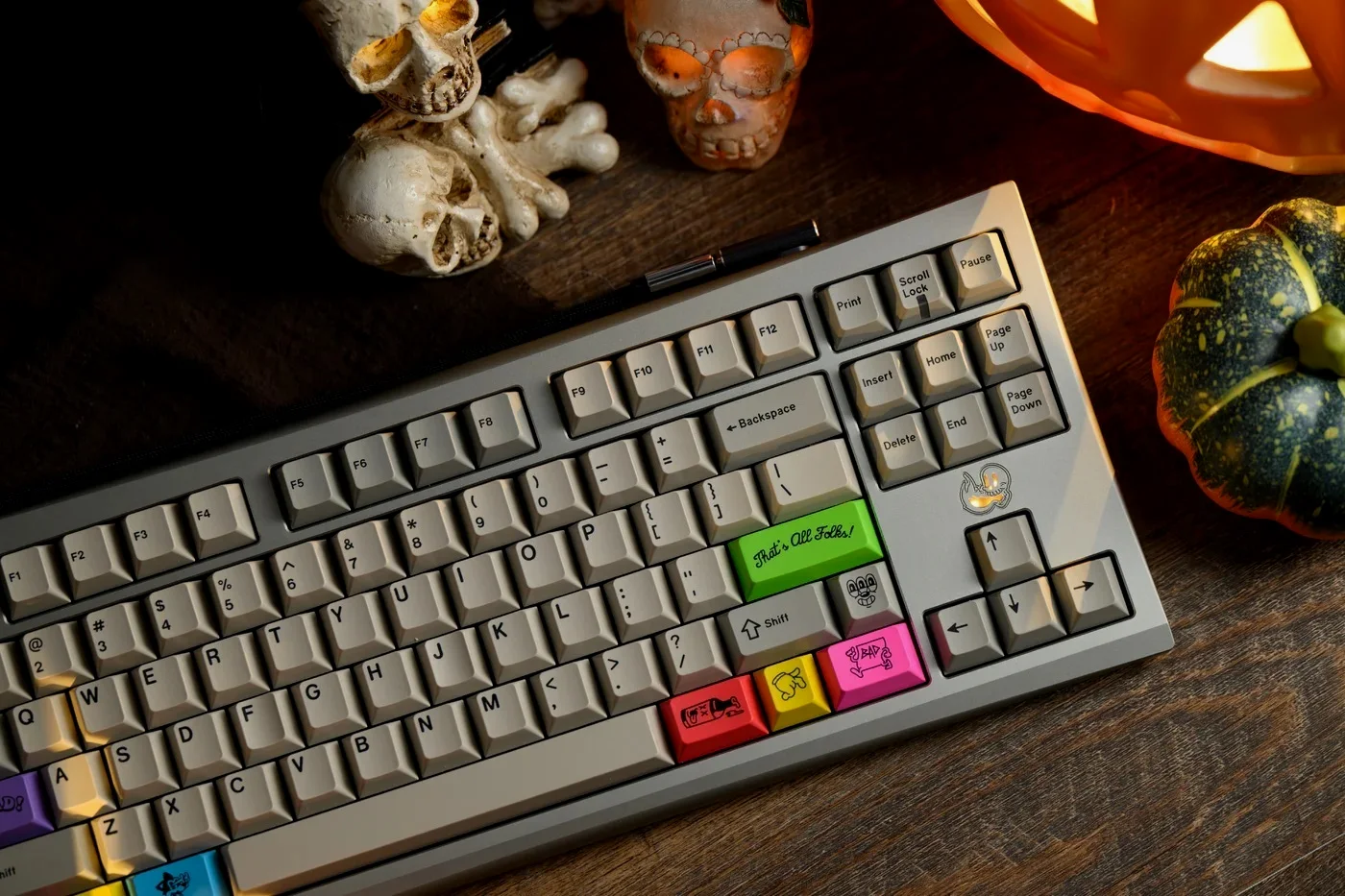 这套键帽的主题表达和色彩点缀是加分项,能带来一点轻松愉快的气质,不过整体基底色比较常规,也有大量的类似的选择。