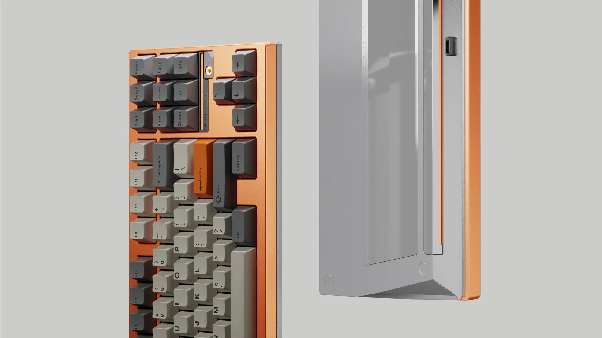 而在 Type-C 接口处的侧条与背板处理上,Velora 80% 给人的观感有点像是对海外 TGR这类经典设计语言的一种变种演绎。它采用了带有弯折感的侧条,并在其中加入撞色铝件夹心,使得原本硬朗的造型在视觉上多了一层轻盈的分割。背面则以一块贴合整体造型的梯形大配重为主,边缘还辅以折角处理,让背部既饱满又不至于过于厚重。不过,确实没有给我那种眼前一亮的感觉,整体还是比较收敛。