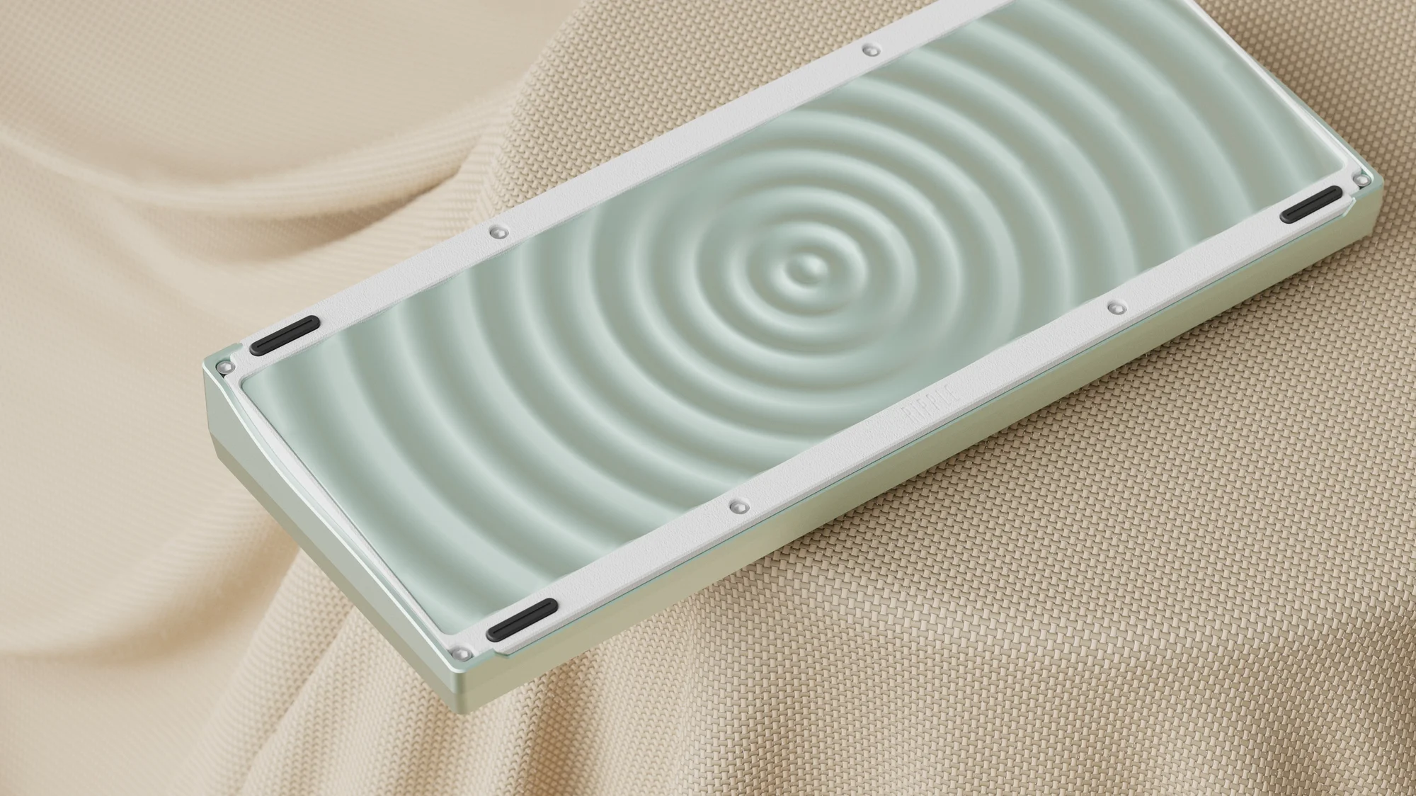 底部配重依旧是常规的大面积条形,但这次的亮点在于提供了波浪纹样式可选。它让我联想到 Orbit65 内部的环状星轨,不同的是,Ripple 60 的涟漪纹路从中心向外扩散,由密集圆圈逐渐过渡到舒展的波纹。非均匀的起伏模拟了水面涟漪扩散的自然过程,而凸起的波纹又与底壳面保持齐平。