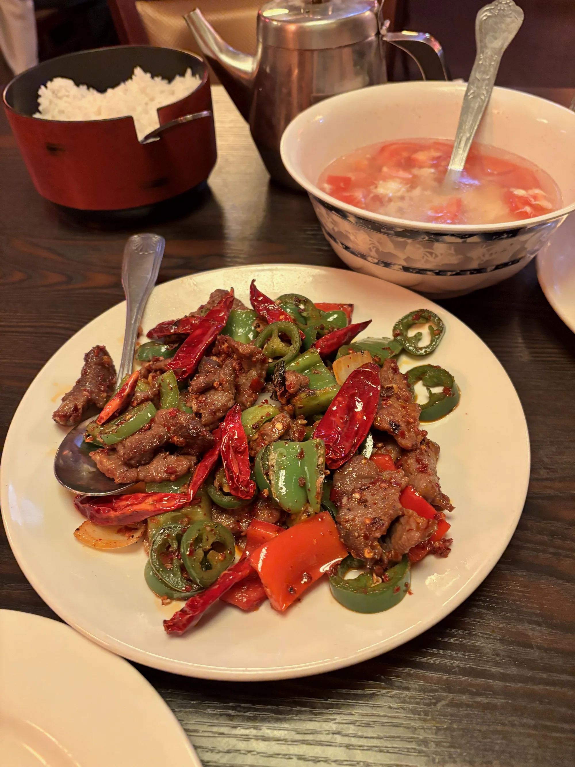 晚上我们住在离西出口开车3分钟的West Yellowstone。因为非常馋中餐,连续两天都去了本地唯二的中餐厅中的一家“红莲”。意外的很好吃!店员和店主也都是中国人。