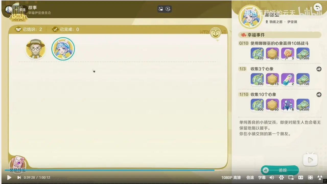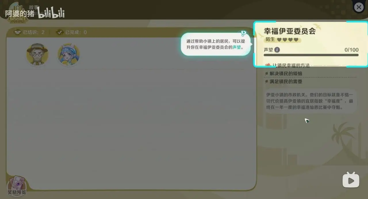 故事系统二级界面——幸福伊亚委员会(未选中角色时侧边栏状态&选中角色时侧边栏状态):