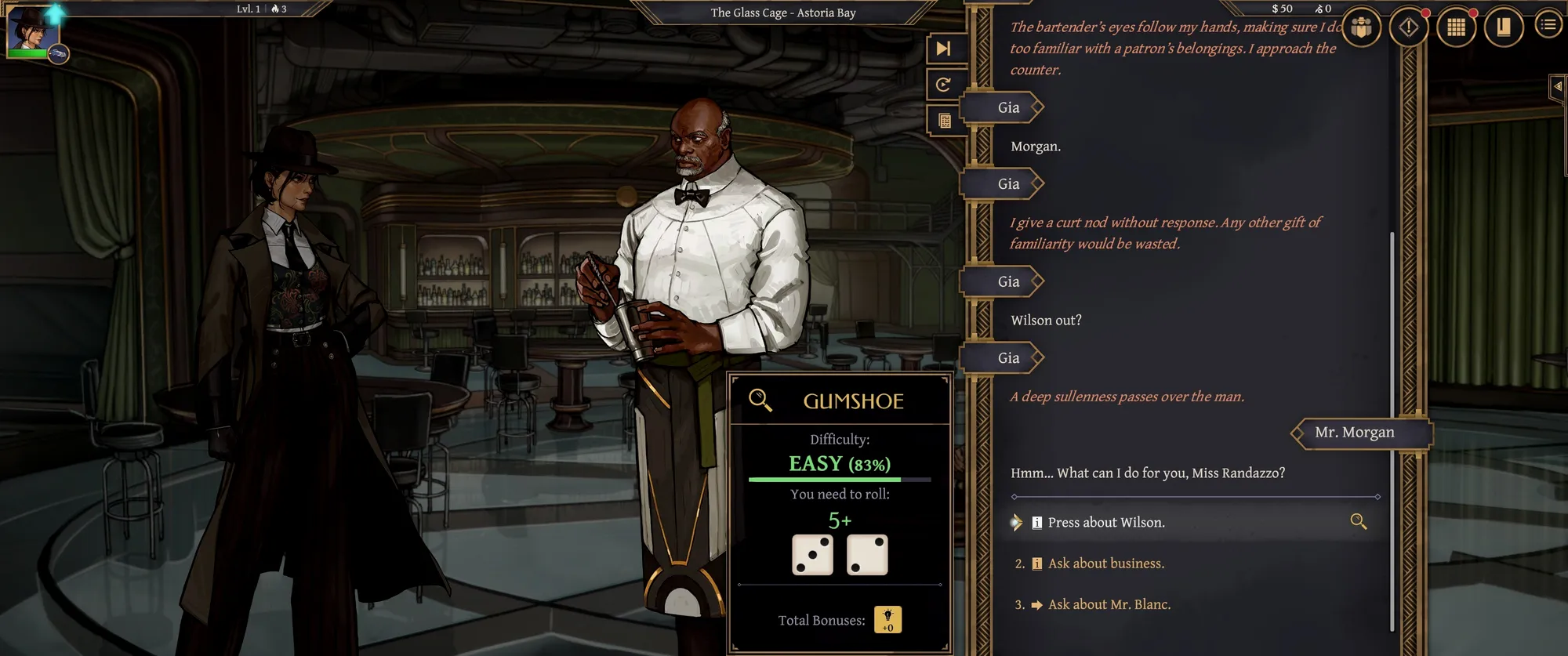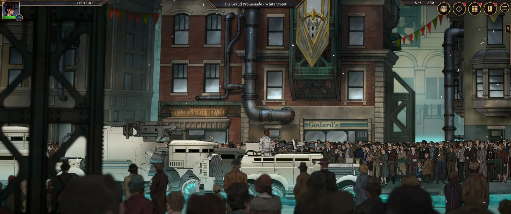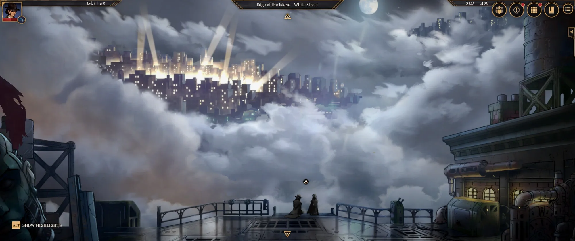 CRPG+战车战斗,1930年但发明了反重力技术的架空世界观,主角作为一名走私犯承接各种任务,结识各色角色并可能招募入队伍。面对各种情况会需要根据狡诈,智慧,胆魄的判定来投骰子来判定成功与否。