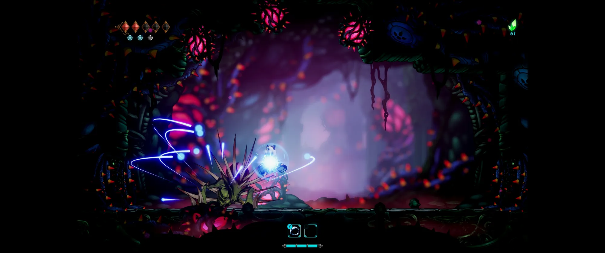 空洞骑士真是很大程度上影响了类银的制作风向,如今很多类银新品比起更元祖的银河战士和恶魔城反倒是更像空洞骑士,这部《Fatal Claw》就是明显的例子。