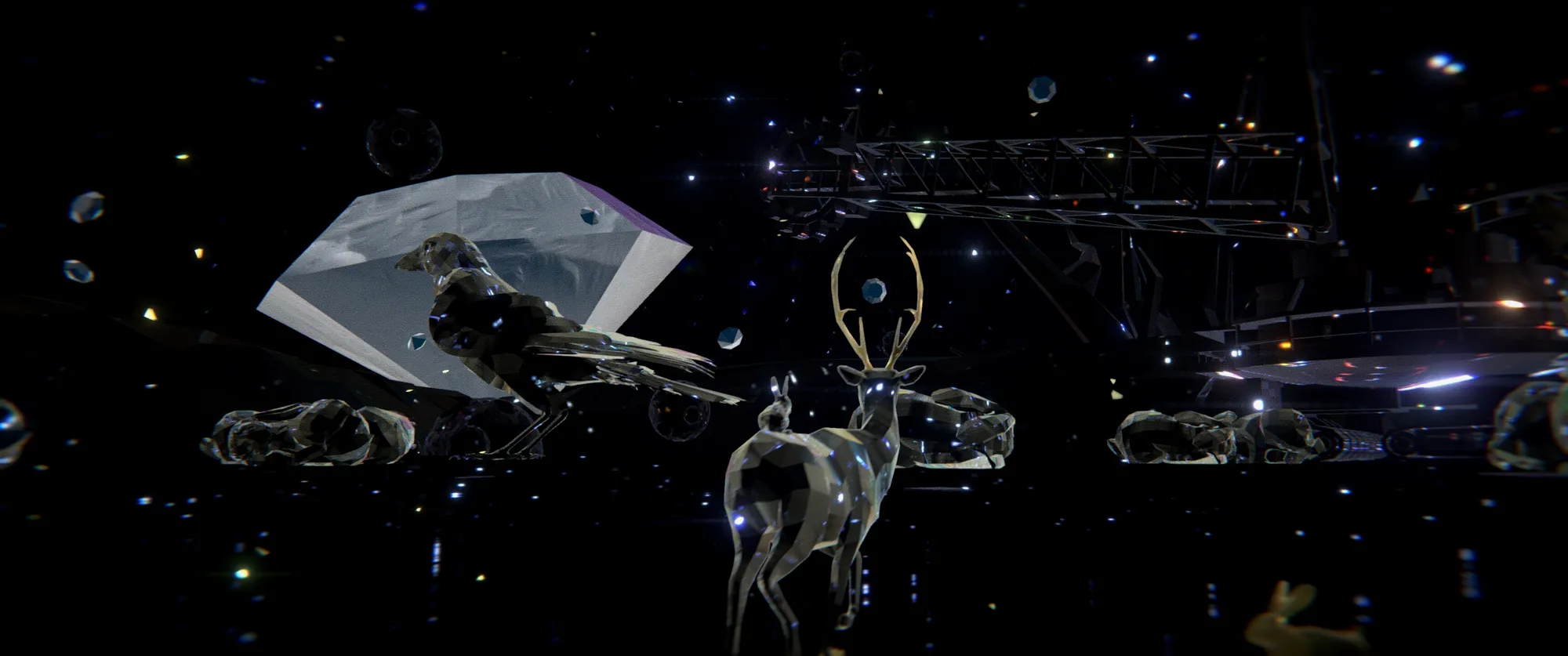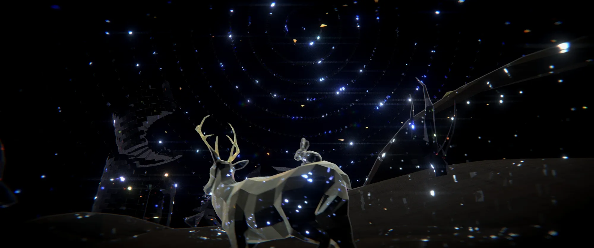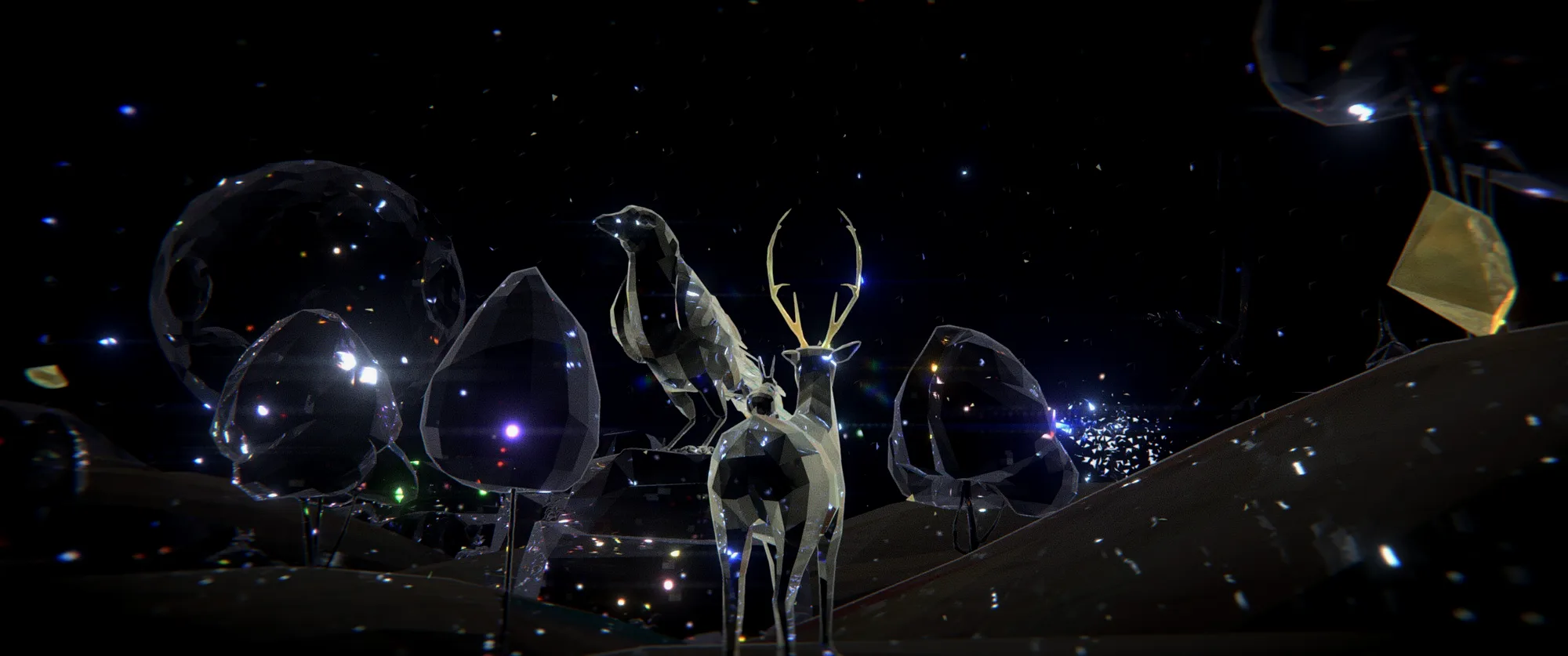 美术风格异常绚丽的心流游戏,钛晶化的鹿驮着钛晶化兔子,穿过钛晶化的草地和河流去寻找钛晶化的钻石,整个世界看起来都像是被“钛晶化”之后的样子。