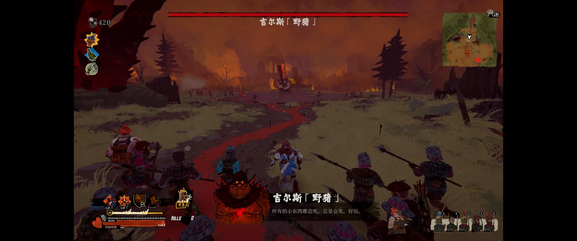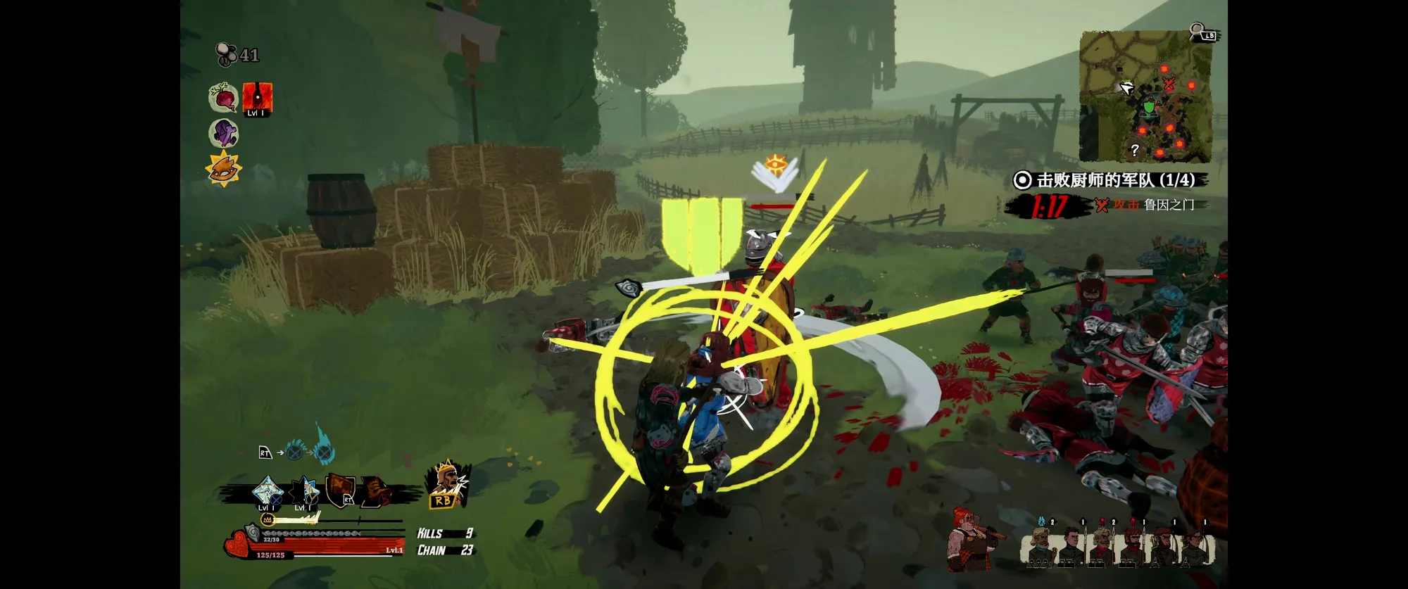 三国无双+肉鸽,但是苏格兰。美术风格和手感非常好,战斗很有三国无双的爽感,轻攻击+重攻击的连招能将一群敌兵击飞出去,面对强力的敌将时则要在地方攻击时(有明显提示)选择闪避或格挡。