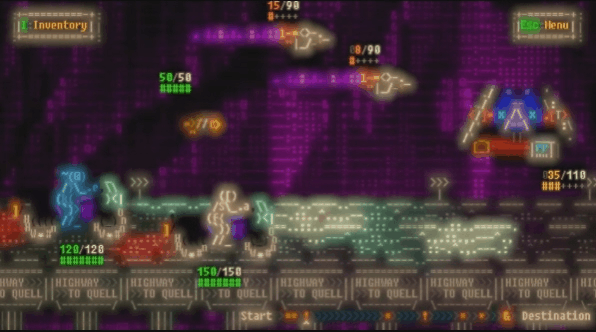 仅仅依靠字符画就能完成所有的游戏美术,额外加了动态和发光后更是产生了难以言喻的神奇迷幻感。