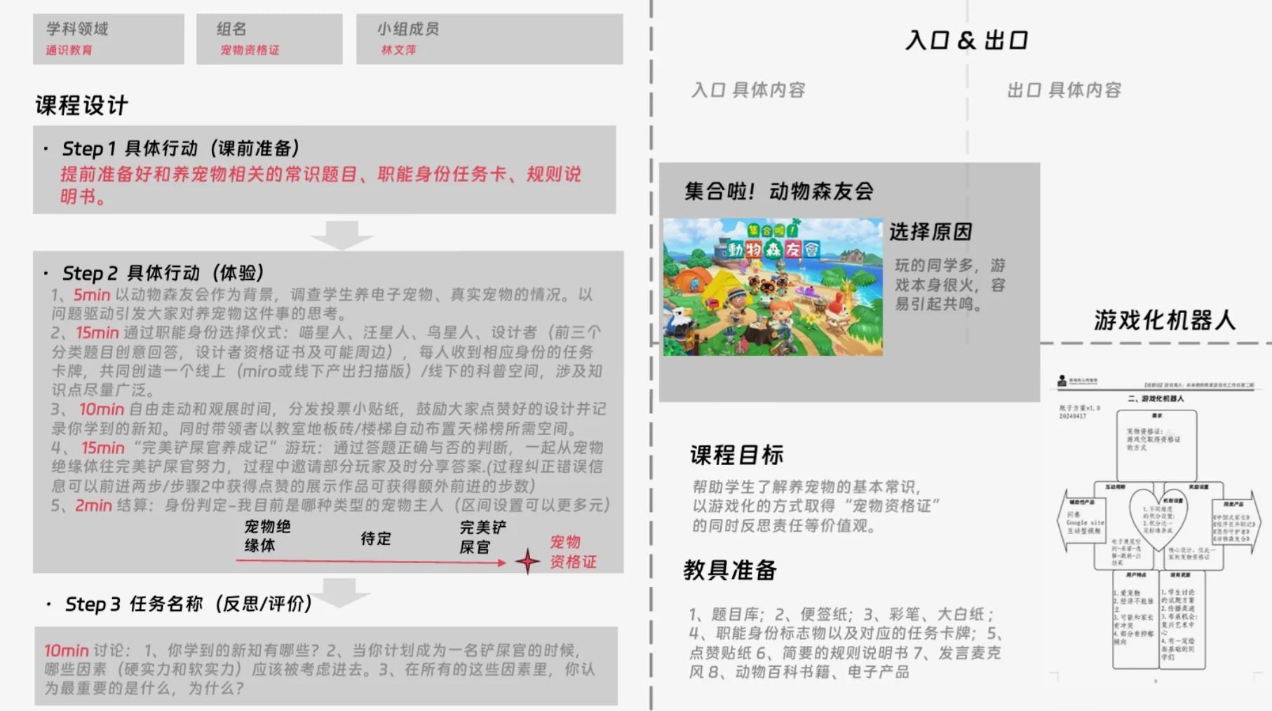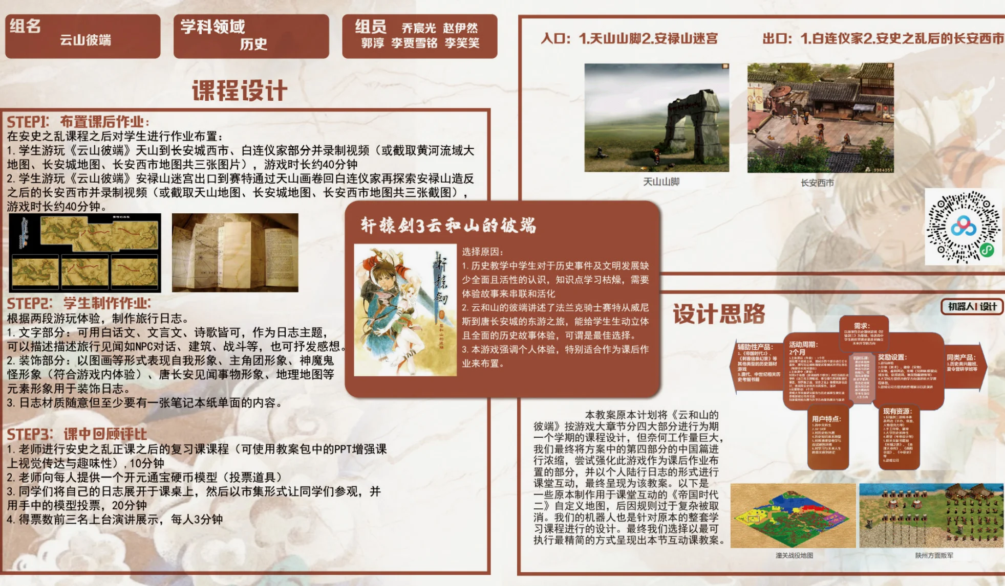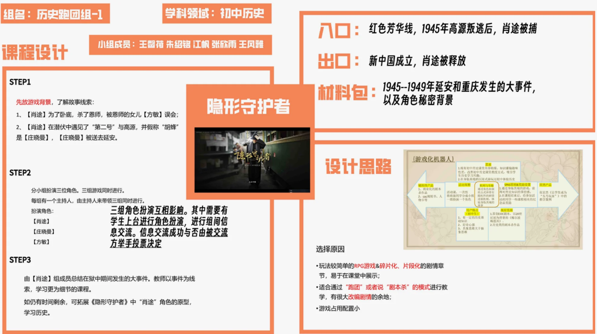 在为期六周的课程中,18个学科小组以语文、地理、生物、心理、新闻、政治等课程为基础,围绕“学科素养融合”的核心目标,尝试将游戏机制转化为教学工具,设计出跨学科的课堂教育方案。每个小组从选题、游戏分析到教学目标设定,都经历了完整的设计与验证过程,逐步形成了从“玩”到“教”的转化路径。