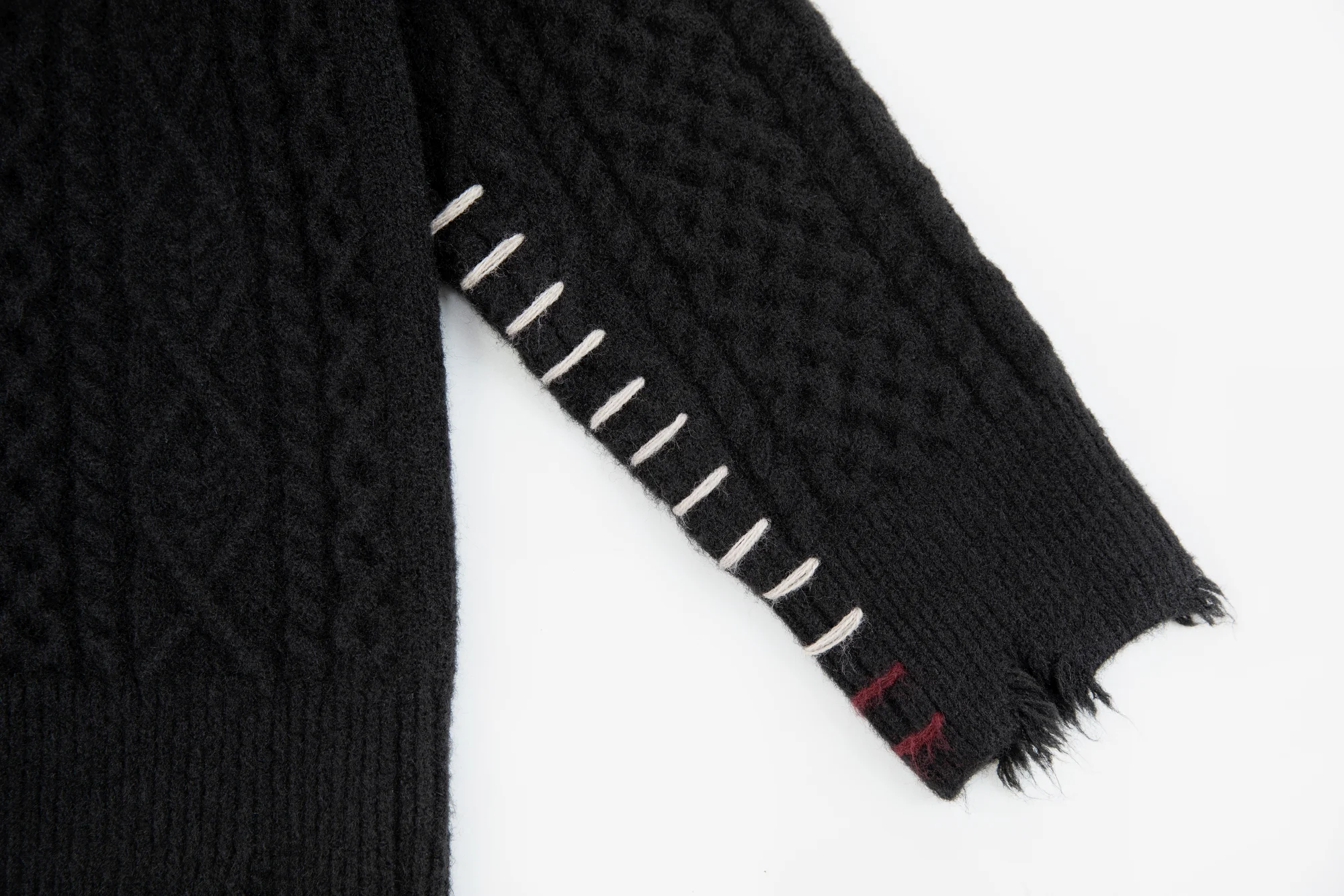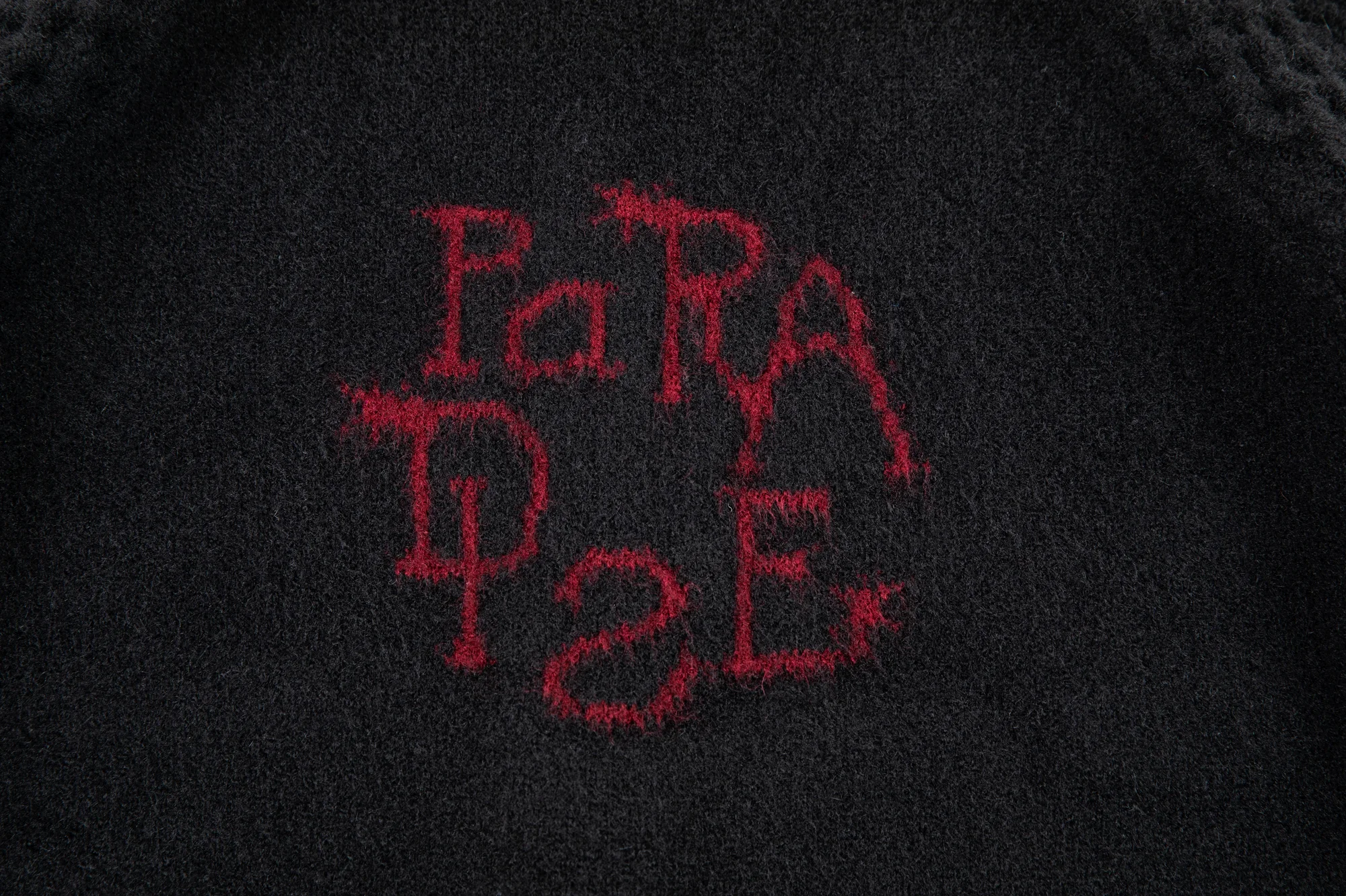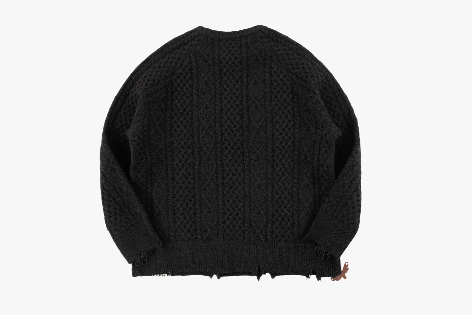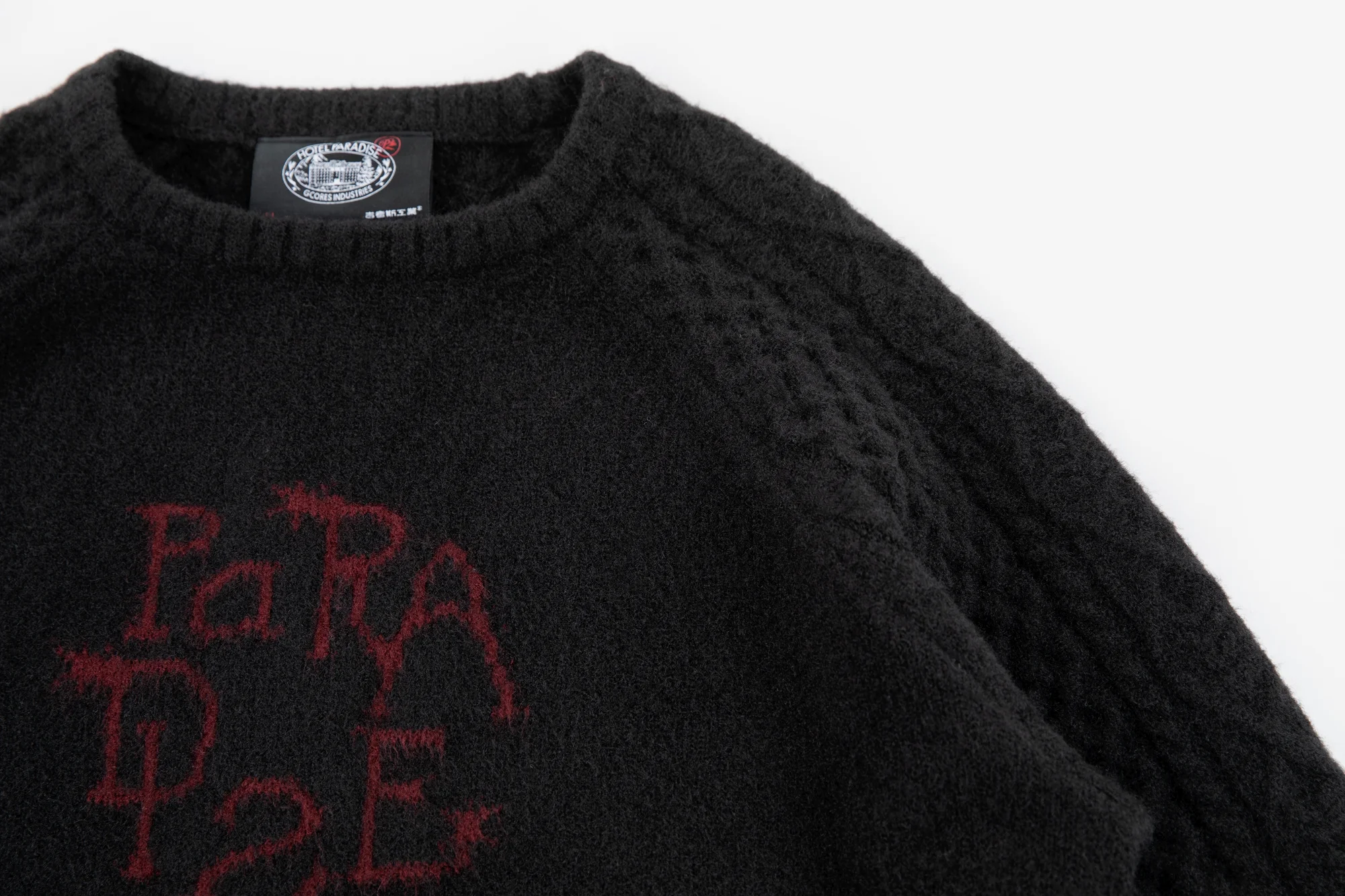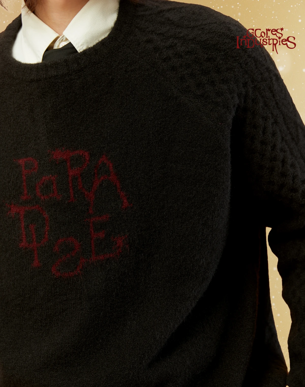 图案插画被转化为服饰贴布装饰,黑、红两色交错,象征雪夜中被封存的心跳与铃声。整件毛衣既是服装,也是故事的延续。