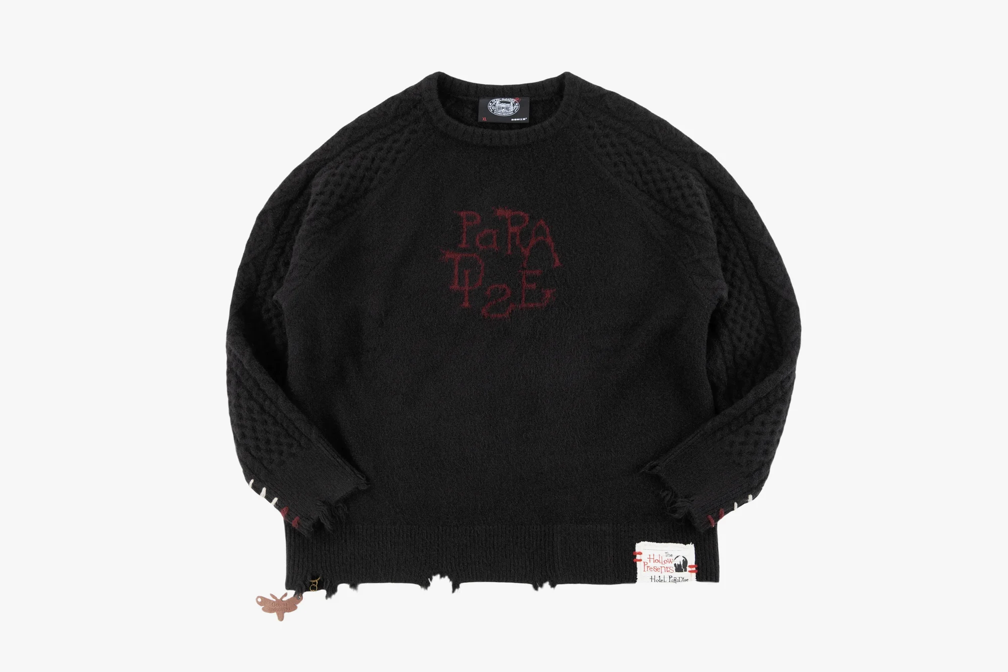 本款毛衣以吉考斯工业原创系列「天堂酒店」特别篇的故事为设计灵感,将故事中「水晶球」与「骨瓷小熊」的意象融入织物设计之中,构筑出介于梦境与现实之间的节日氛围。