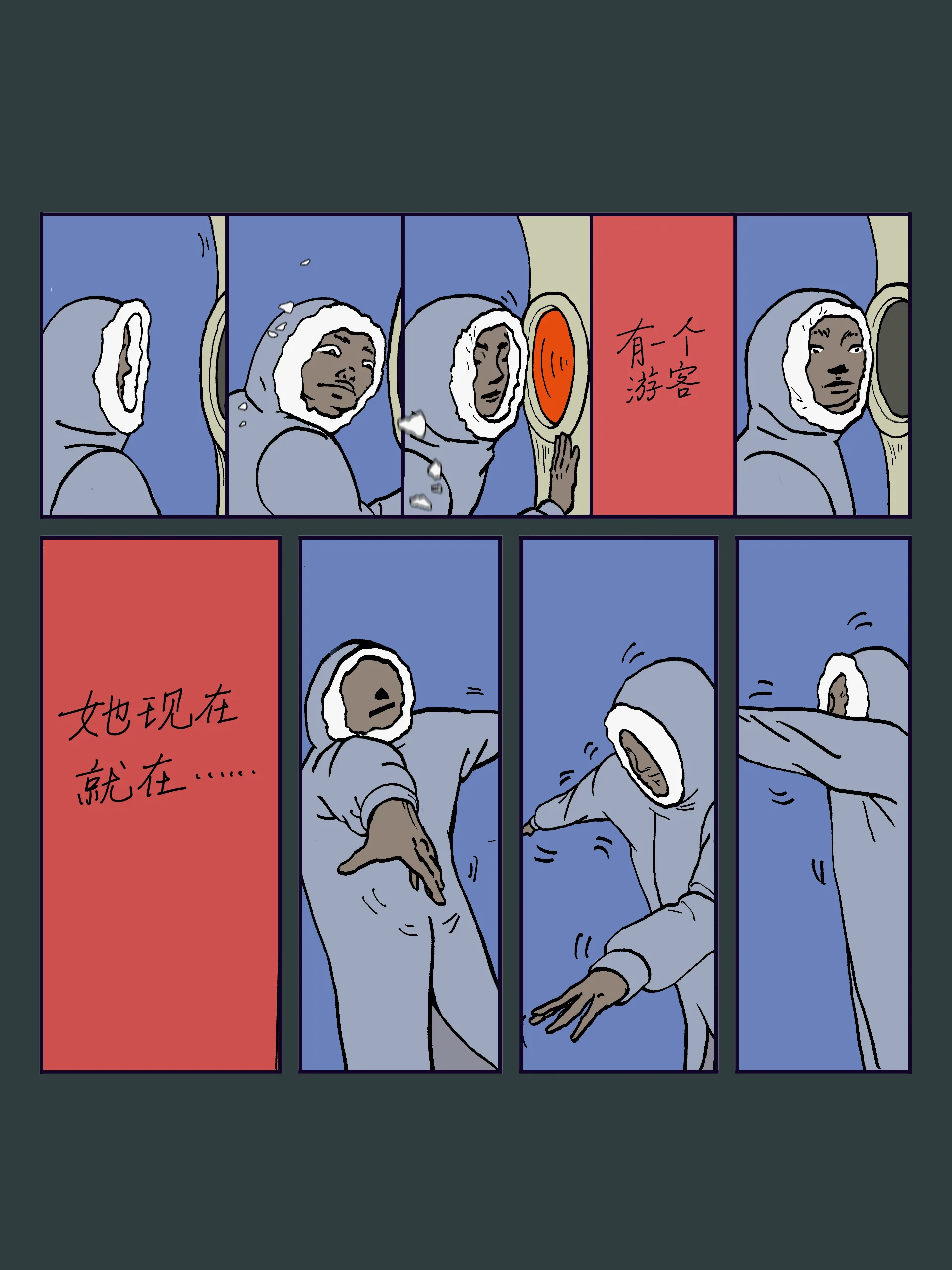 4.游客A在两个片段中出场,她的眼睛有什么不对劲的地方?为什么?