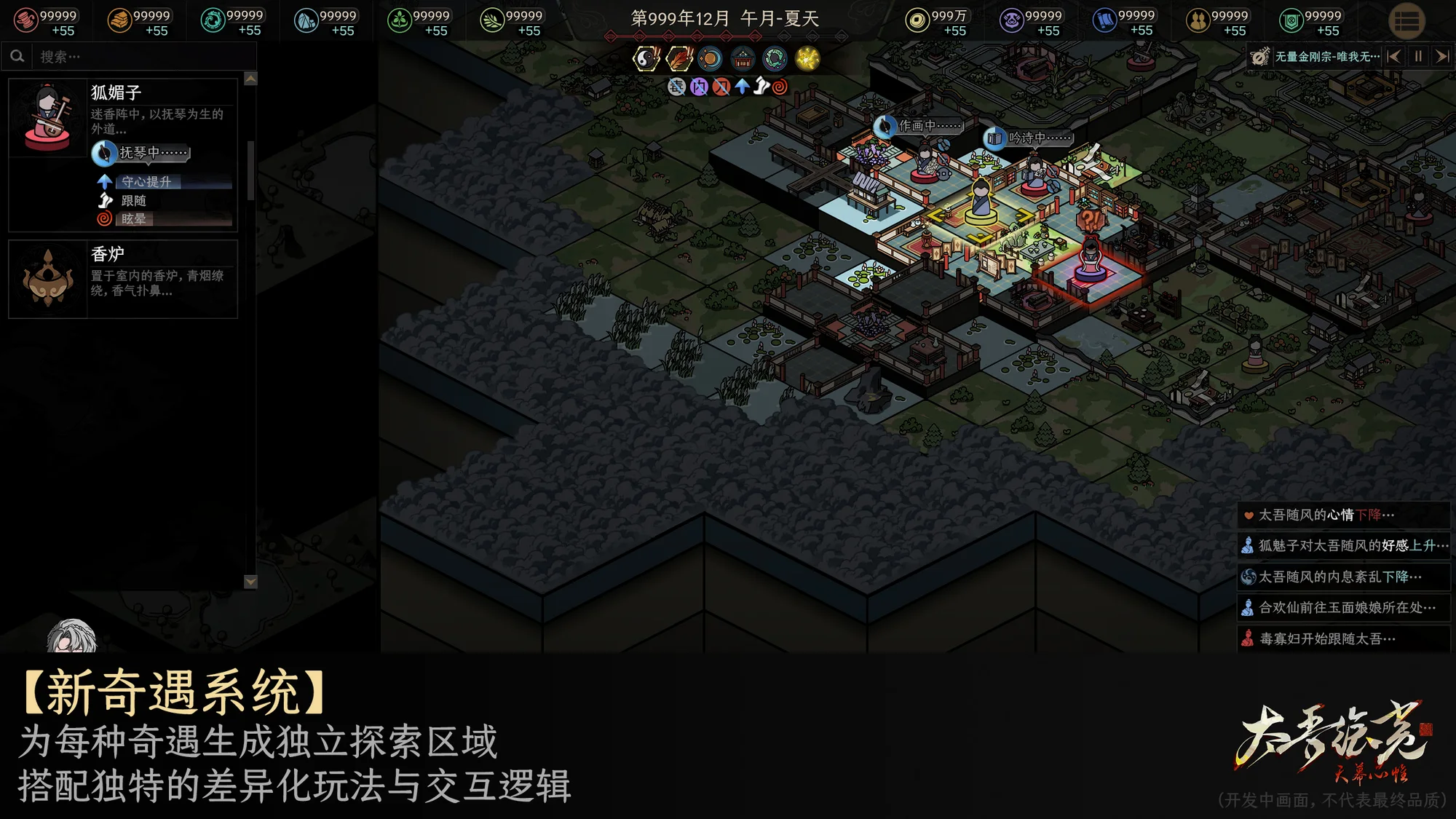 在接下来的几个月里,开发团队将持续通过官方渠道同步开发进度,并适时分享部分新增内容与机制介绍。感谢各位玩家长期以来的支持与陪伴。螺舟工作室表示,全体成员将继续全力以赴,推进《太吾绘卷:天幕心帷》的最终开发工作,唯有尽全力达成更多玩家们期望的内容,才不辜负每一位玩家的期待。