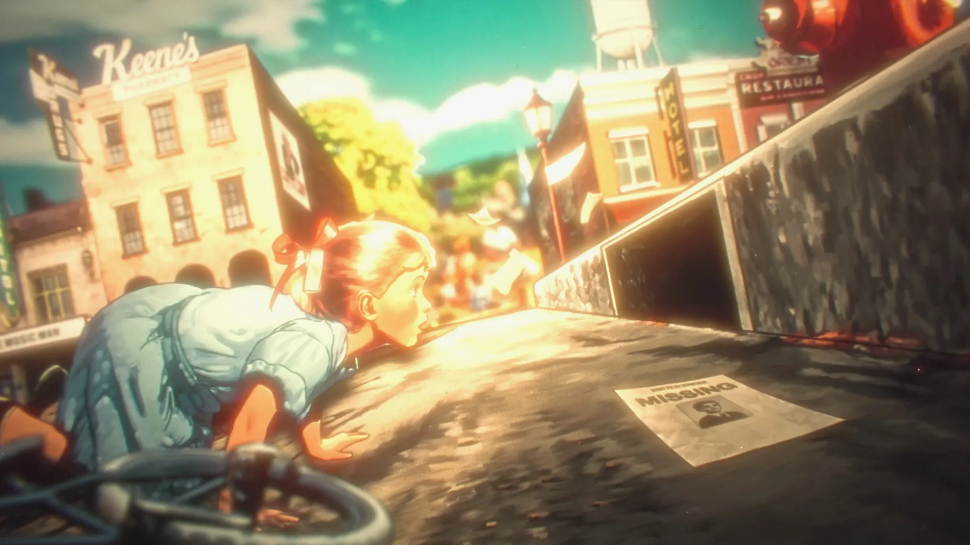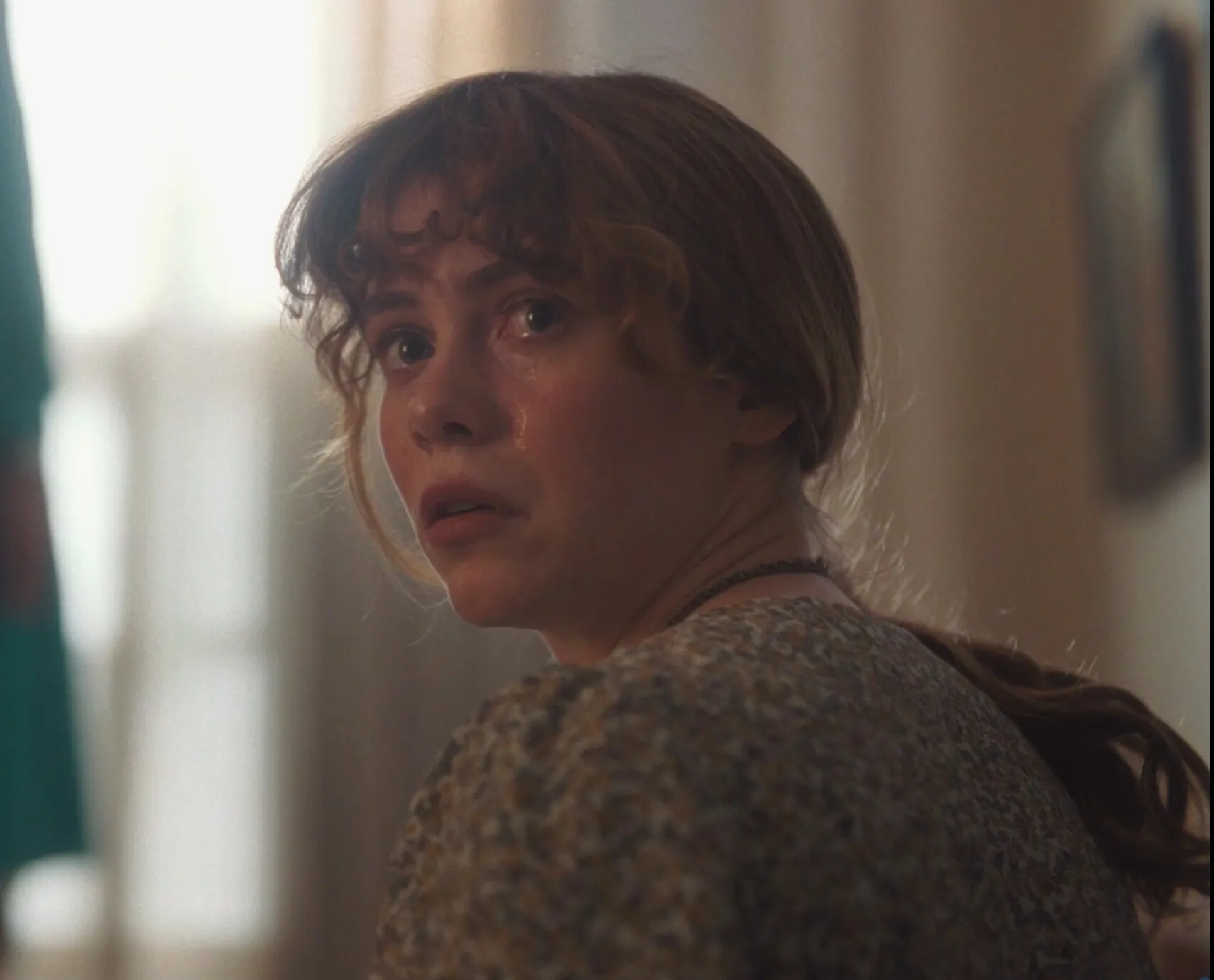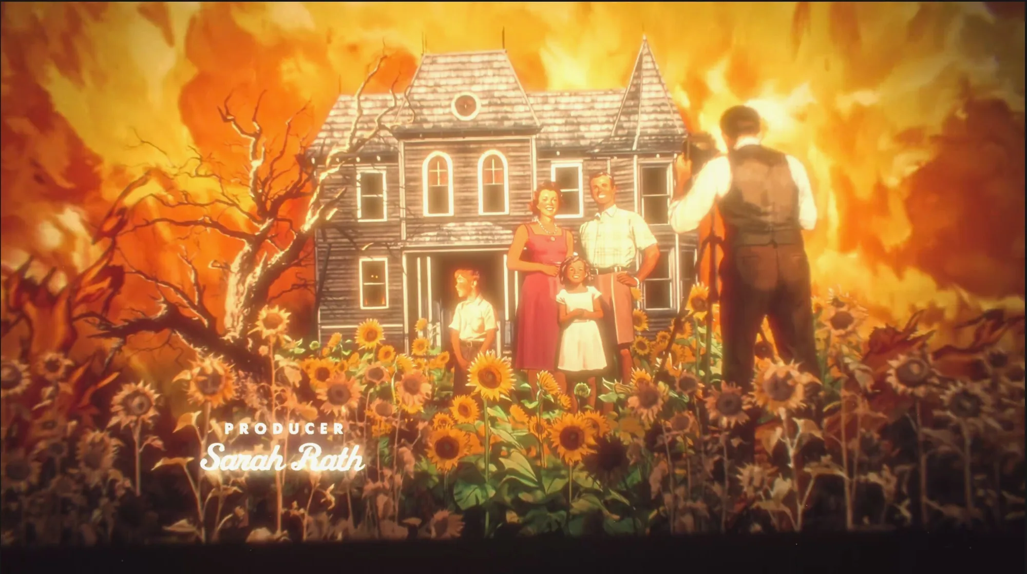 第一集的开篇是要给整个叙事定调的,不得不说制作团队落地的很好,前十分钟的质感更像电影水准。服化道布景的年代氛围烘托、叙事主视角的引入、叙事主题的锚定,在10分钟里以极为工整的形式逐步呈现,非常快速的推起一个小高潮。轿车里的一家人的逐渐怪异化流程几乎沿用到了后续的每一次惊吓场景中,既有设计感,又能和IT的特质契合,同时能与相对应的角色形成特殊呼应,这个设计思路是这一季最为核心的手法。