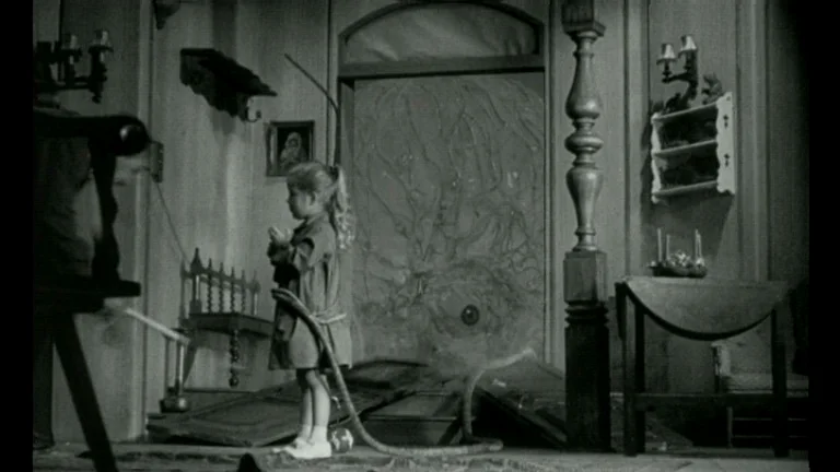 接下来的场景会有点怪,河流边的下水道里伸出章鱼触须举着棒棒糖引诱小男孩。按目前互联网的思维惯性,出现了触手就很容易偏向克系,但这里的触手造型源于原著中IT的一种形态:爬行之眼,这一形象在小说中出现过,袭击了进入下水道的“窝囊废俱乐部”成员,爬行之眼的原型是1958年电影《爬行之眼》。