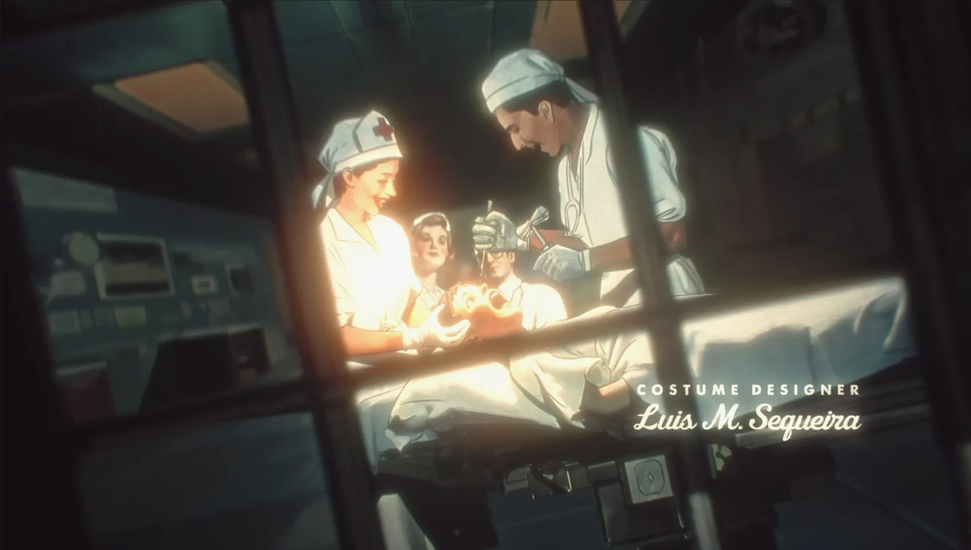 这个片头大的风格非常扣题,色彩鲜明、构图巧妙、很有时代印记,同时搭配的歌曲非常应景,一个女童声唱着歌谣,乍听之下没什么不对,但细品歌词就是另一种意味。