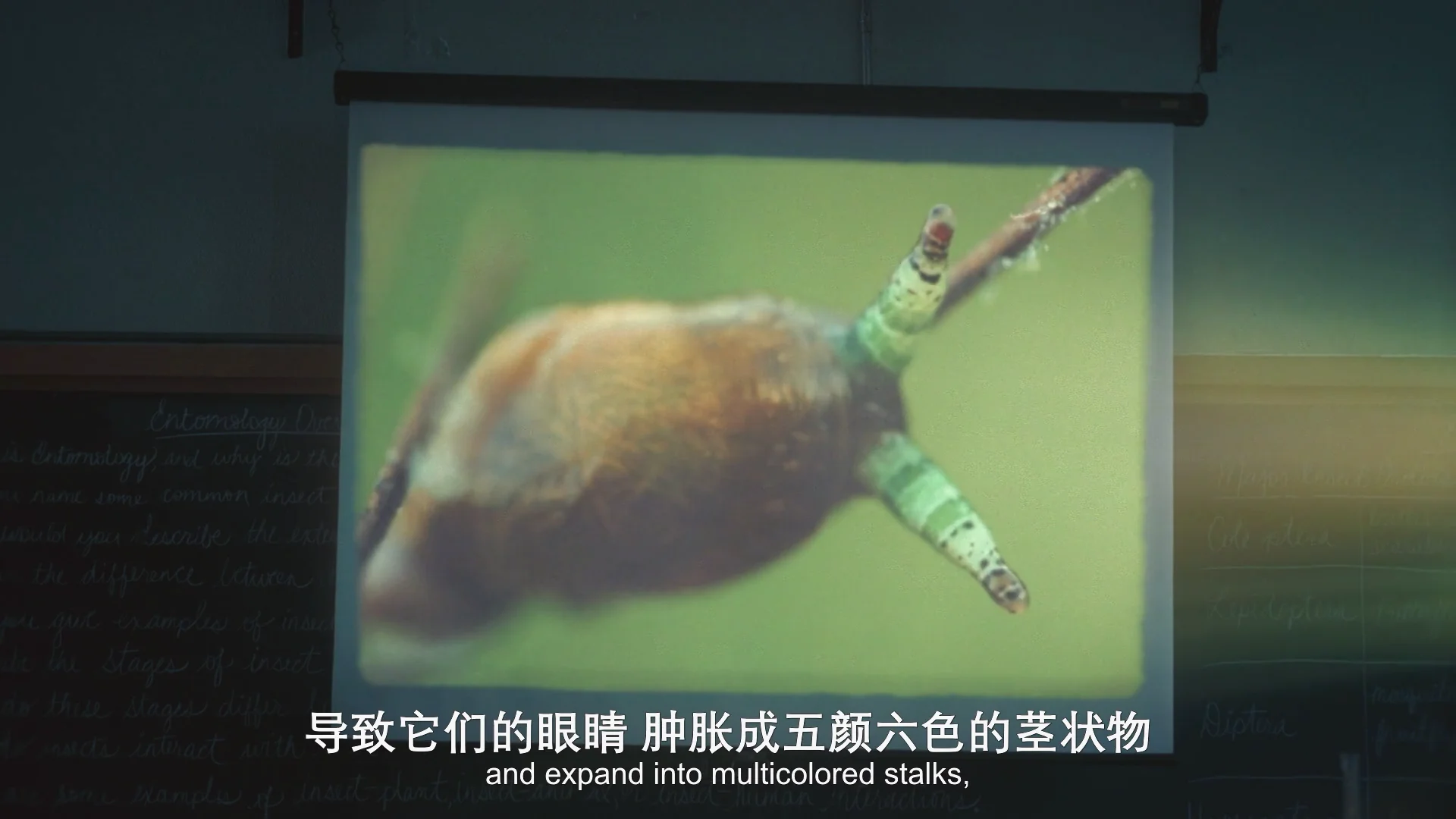 中途入组的Marge遭遇的是眼部变异(对应她的近视),这个设计真的绝妙,眼部寄生虫的视觉冲击是足够让人引起不适的,这种病态的异常不光是唤起恐惧,更有很强的生理性折磨,在所有惊吓方式中,这个是最让我不适的。