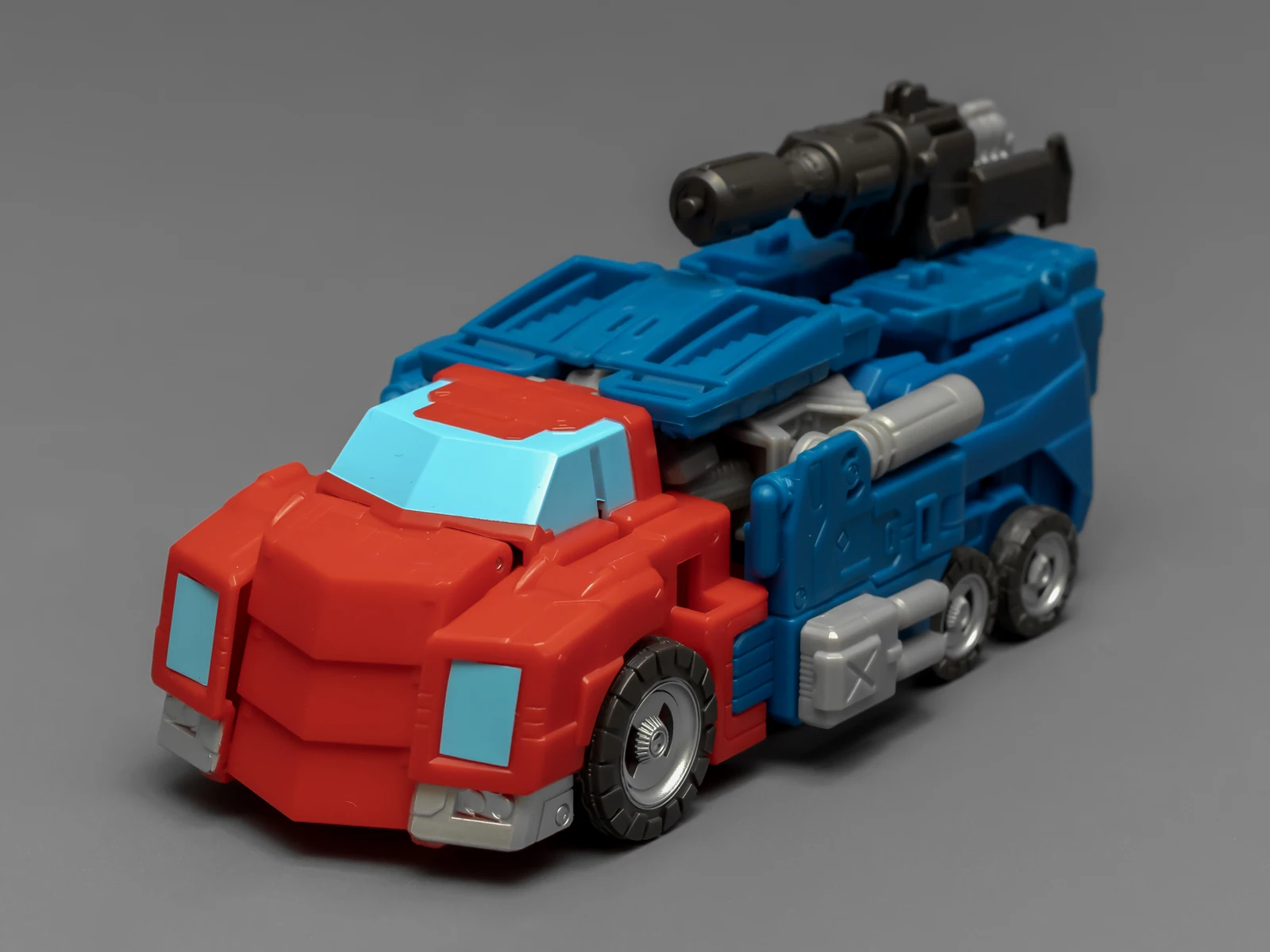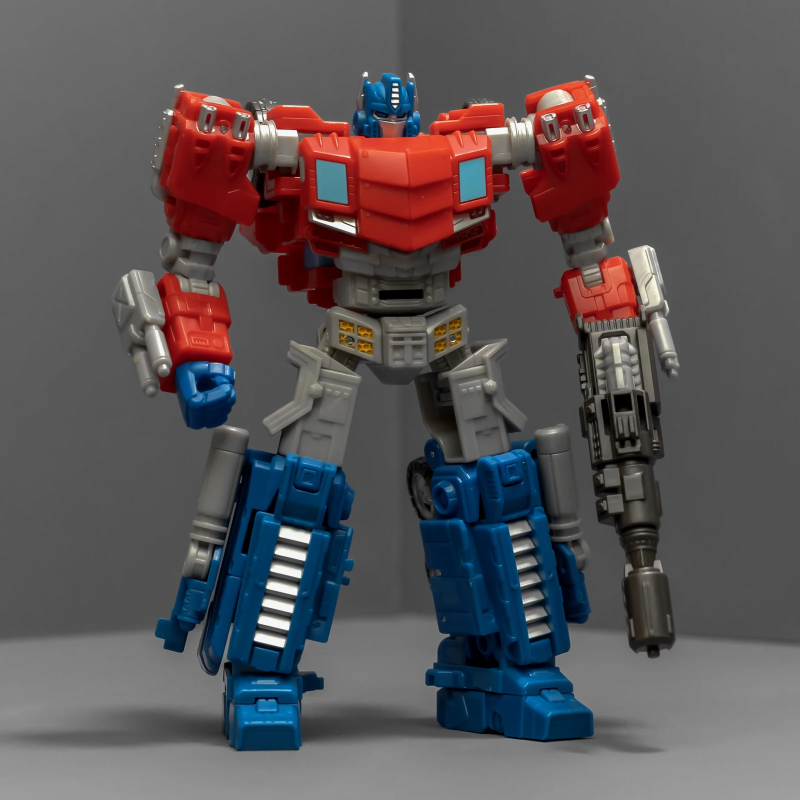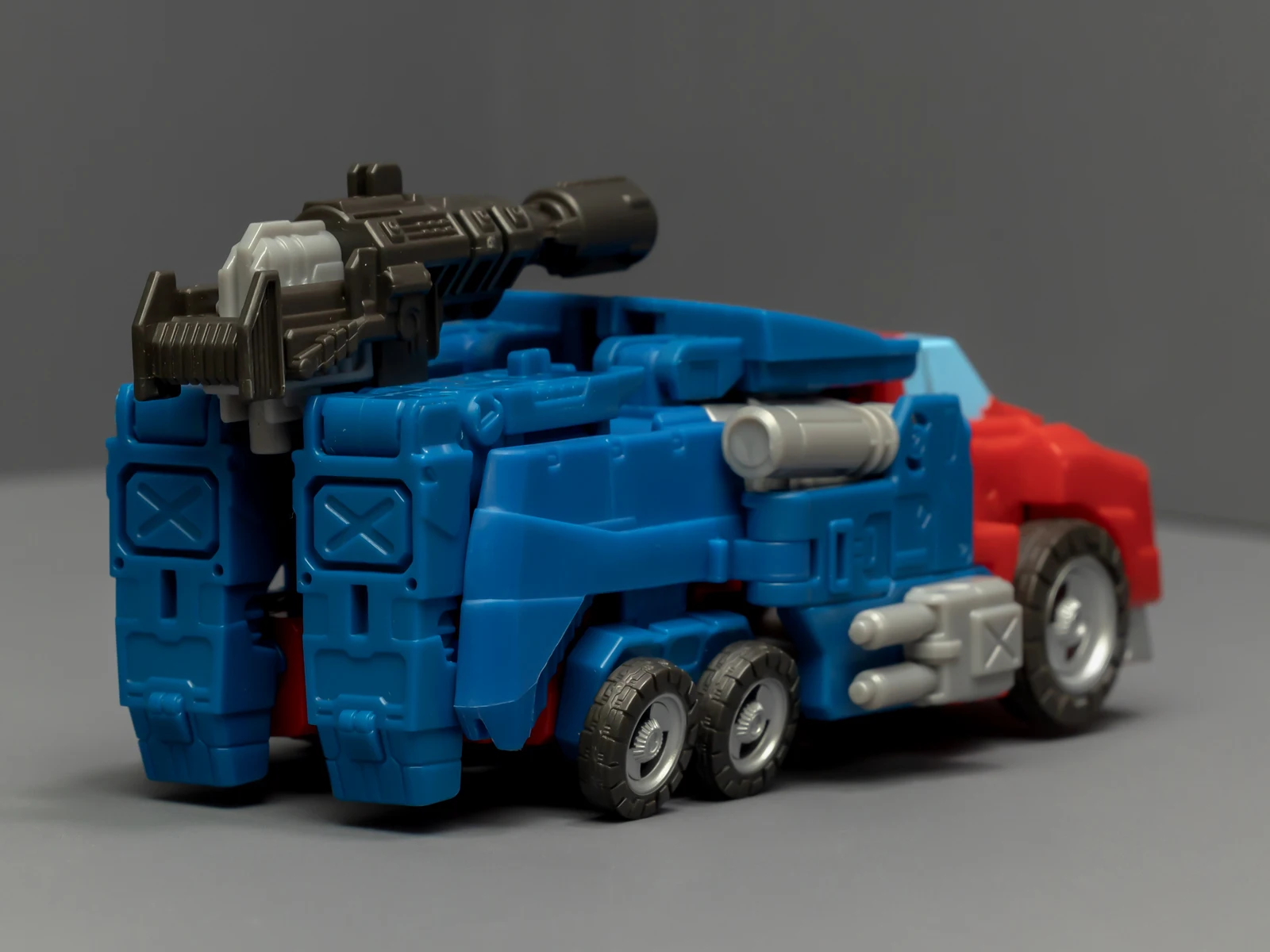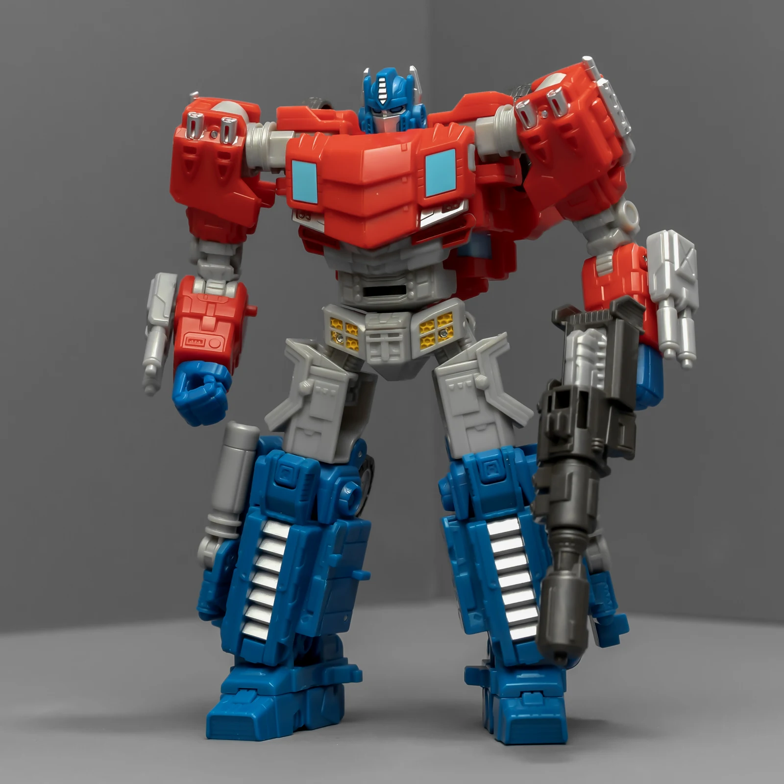 WFC擎天柱的身高比围城威震天要矮,为了让套装显得不奇怪,孩之宝还给这个奥利安做了增高术,把小腿换成了超长的版本,还保留了原来很好的接地关节——就是不肯把大腿偷胶填上。