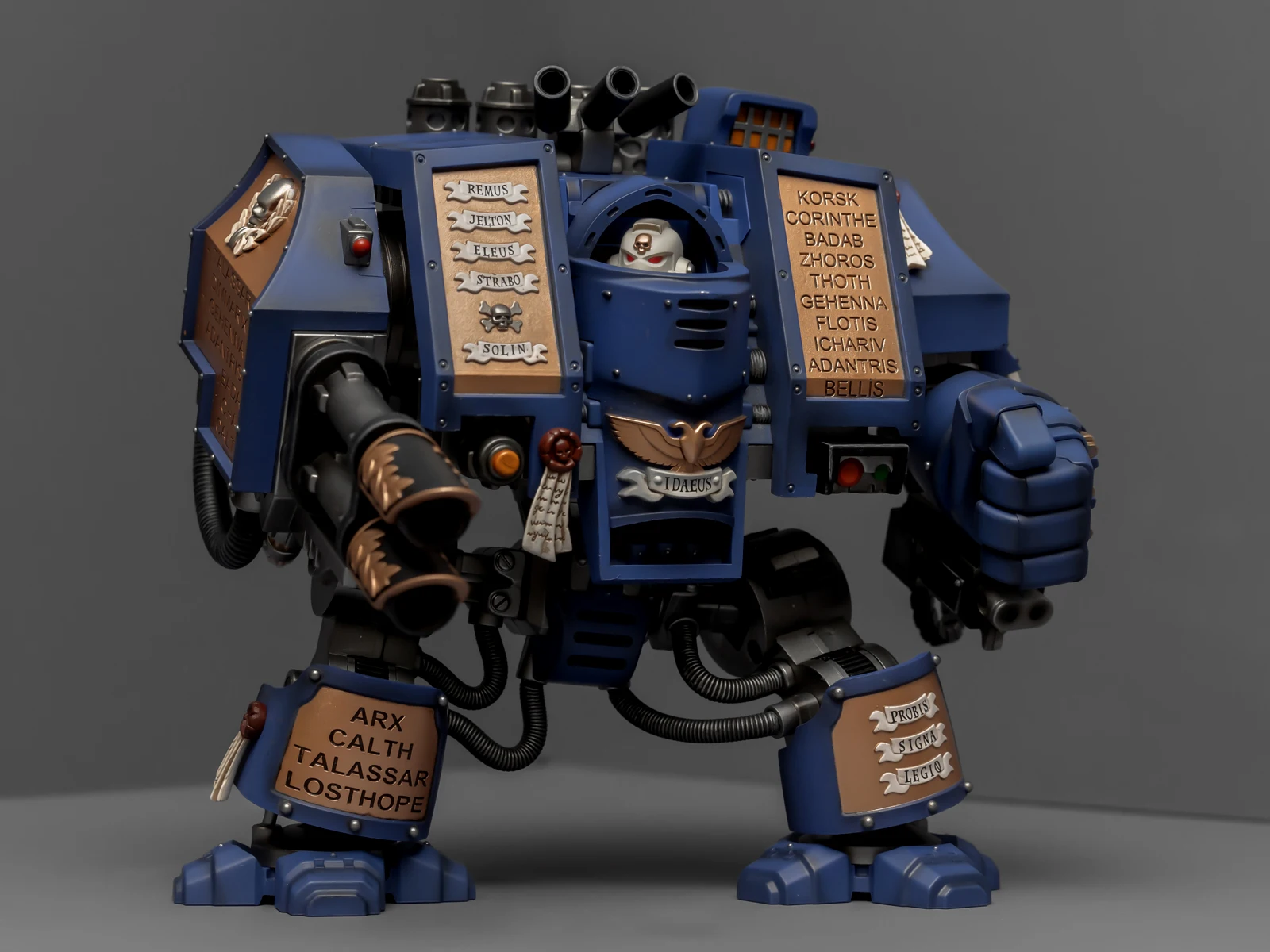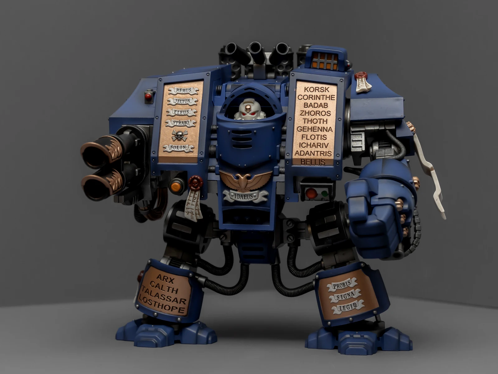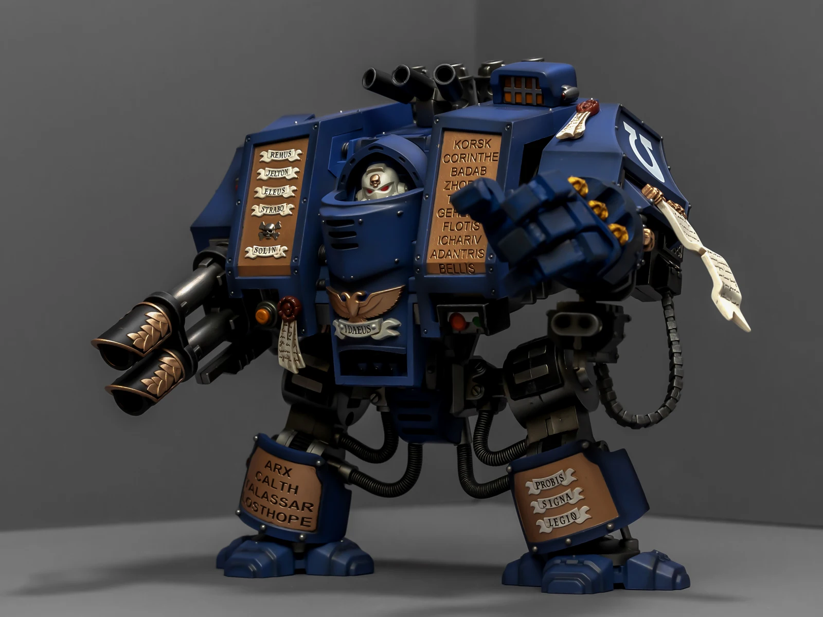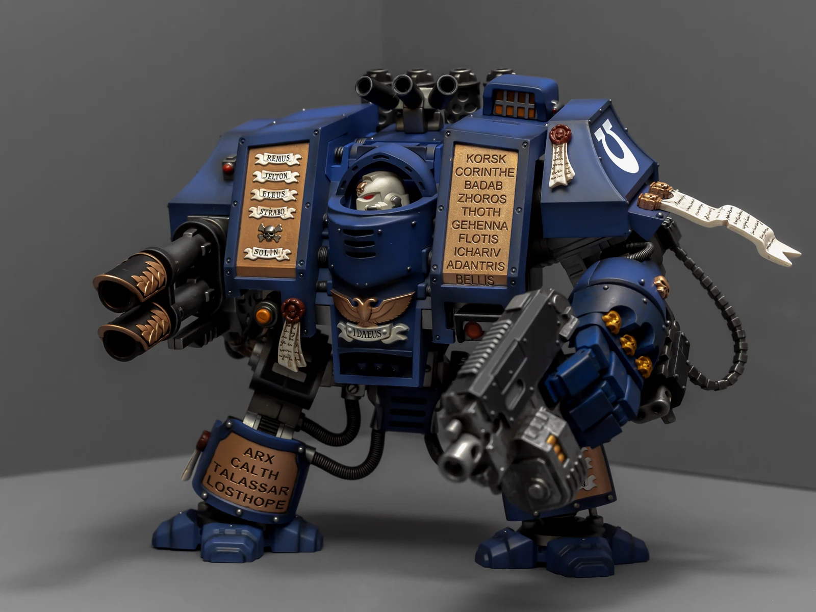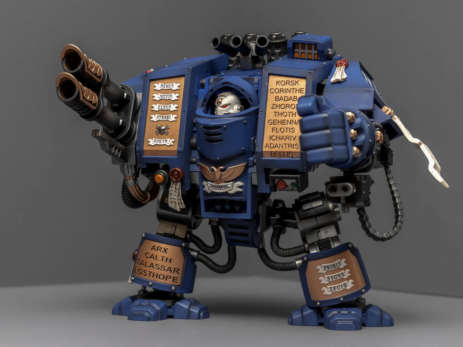 神圣无畏是铸铁型无畏机甲的变体,这些活动棺材里存放的都是各个战团最年长、最睿智的星际战士的残躯。虽然这些古老的战士受到其他阿斯塔特的尊敬,但也被认为易受混沌腐化,因此机甲上覆盖着大量纯洁印记与反恶魔纹章。