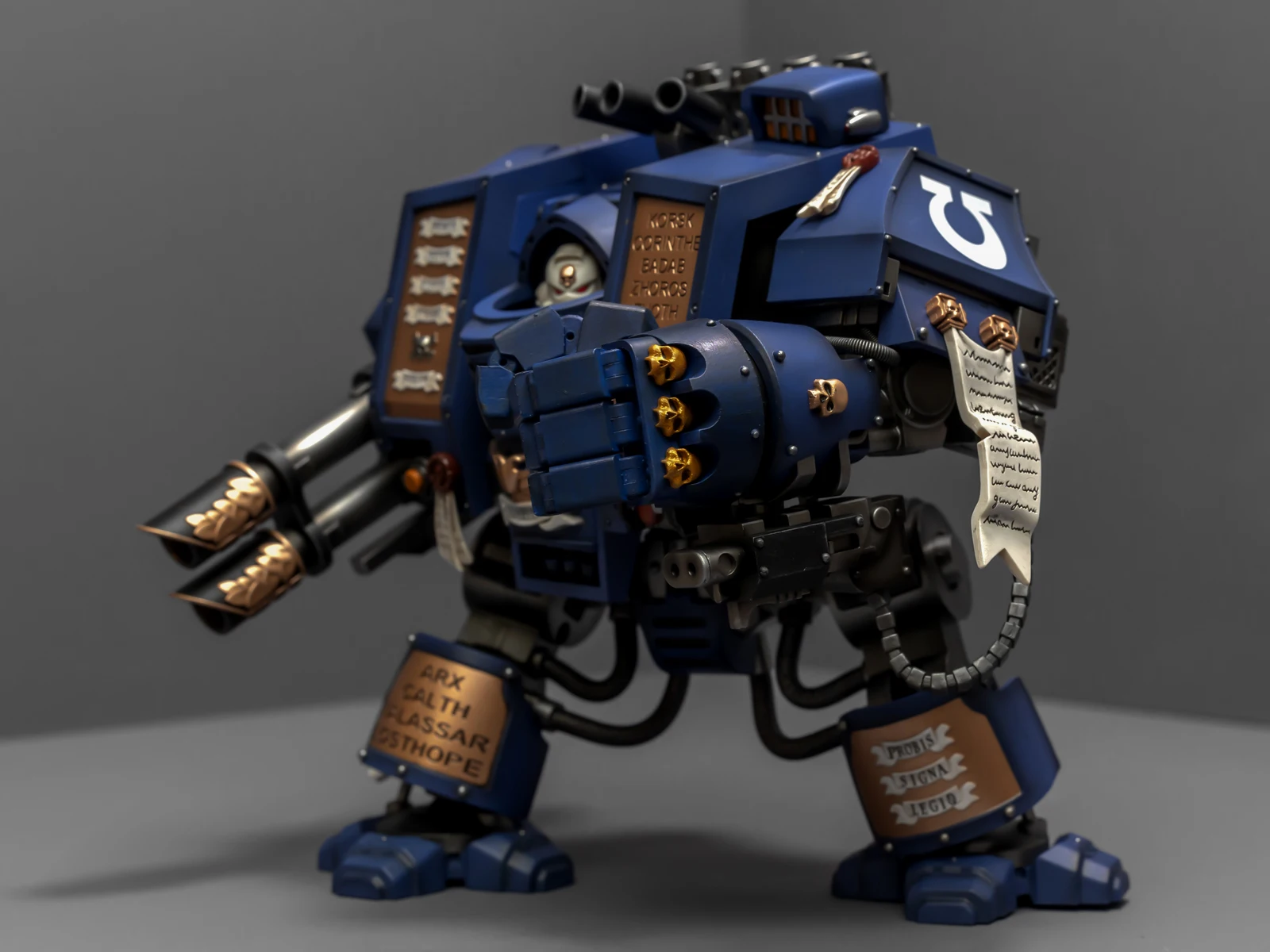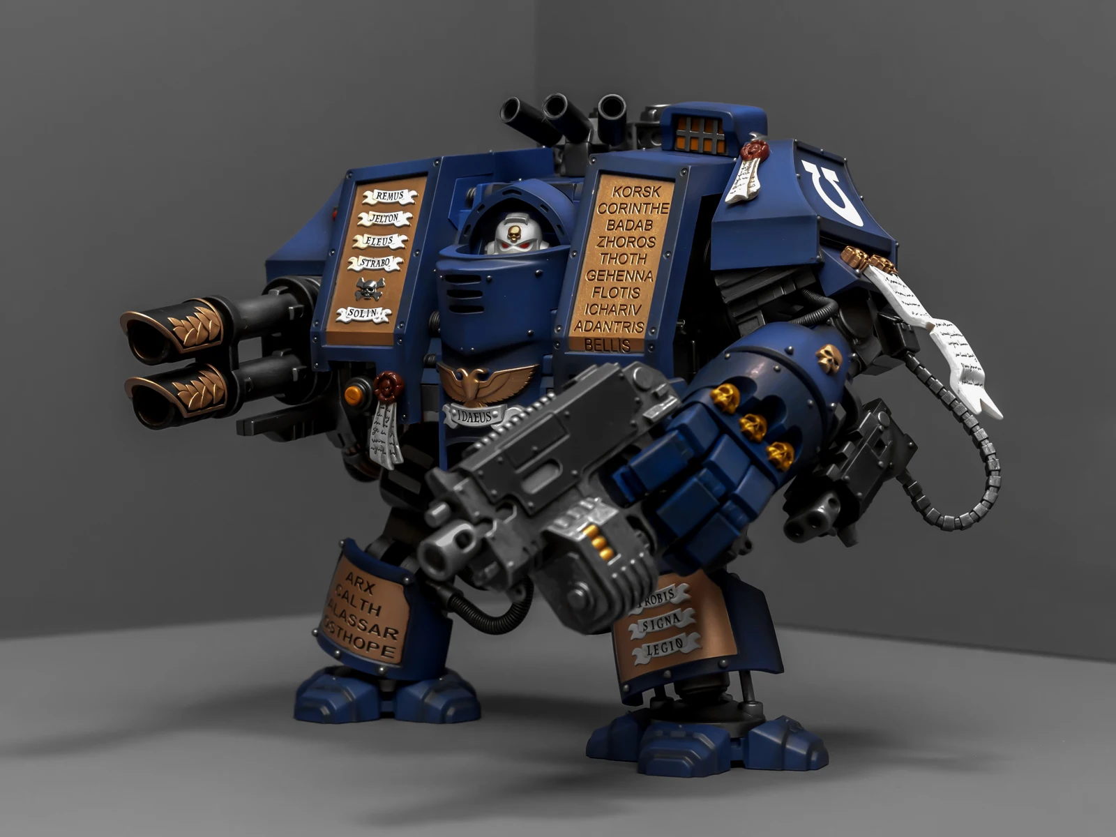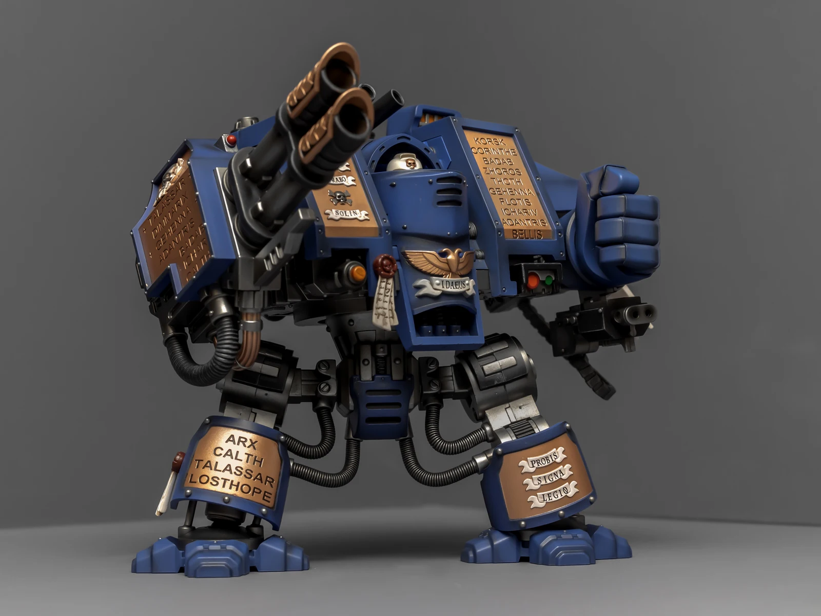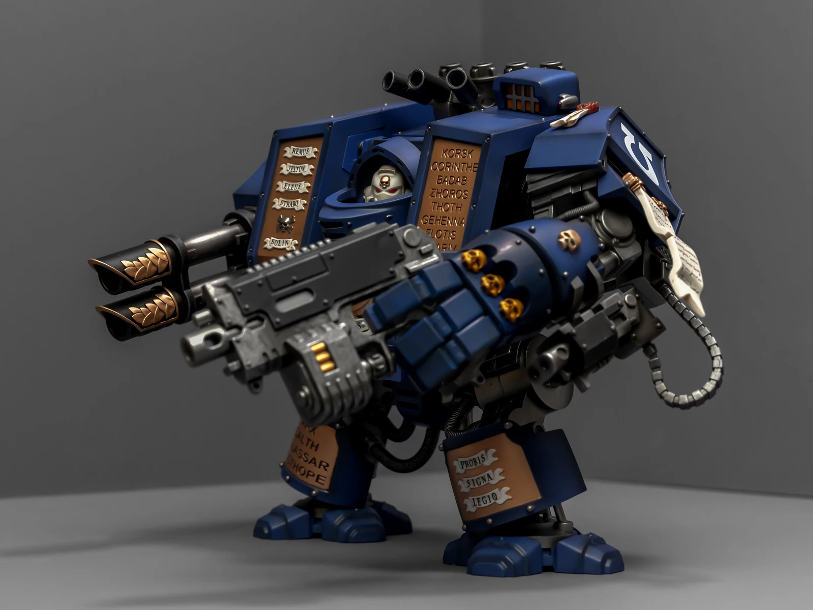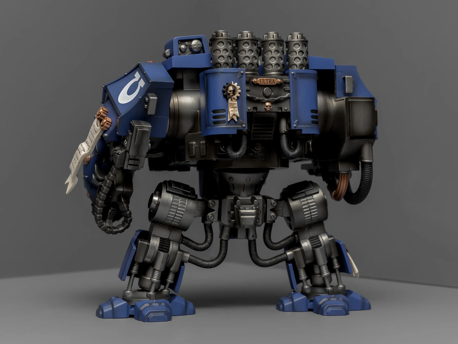 换上了3D打印的可动手,再提起那把从不败者战术装甲上“顺”来的重型爆弹枪,这气势立马就不一样了。虽说这只神圣无畏是老模具,但在改件和重火力的加持下,那种古朴厚重的机械感反而更有味道。看着这台“老古董”焕发第二春,既弥补了动力拳不可动只能握拳的遗憾,又把闲置武器利用了起来,玩暗源战锤,改件才是灵魂啊。