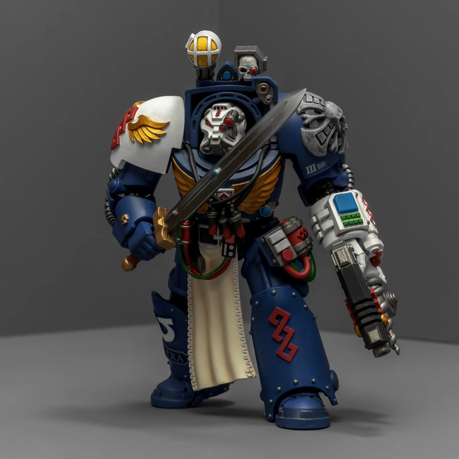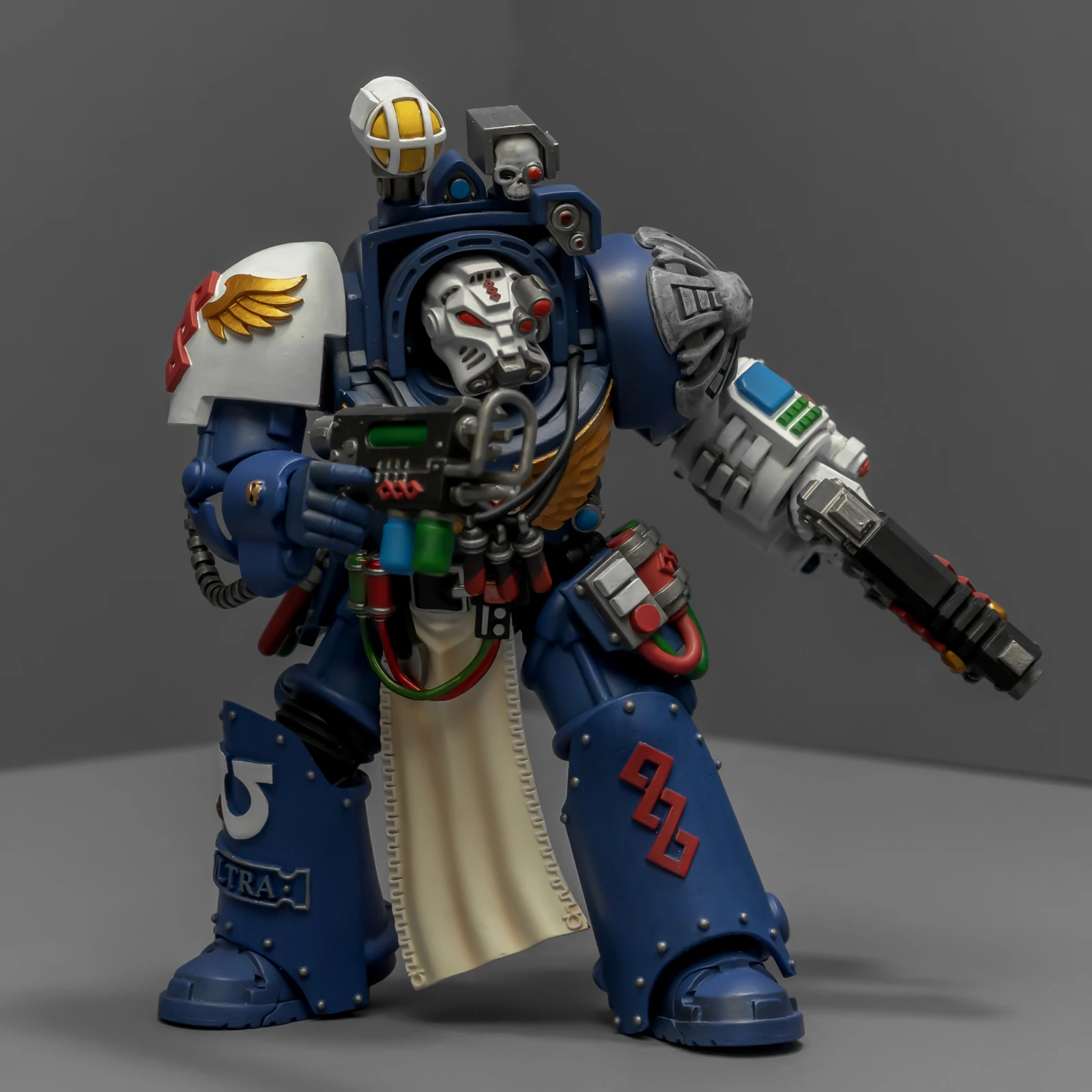之前收过重甲版的生物药剂师,把两人放在一起,重力甲和终结者甲气质还挺搭。目前手头的极限战士终结者特殊单位里,除了之前用配件魔改的智库和牧师,现在又加入了药剂师,特别小队壮大了。智库和牧师都用了和普通甲相同的头盔,反观那个老老实实戴着终结者头盔的药剂师,和这两位站在一起倒是显得格格不入,我在想,是不是也该给他再换个头了?