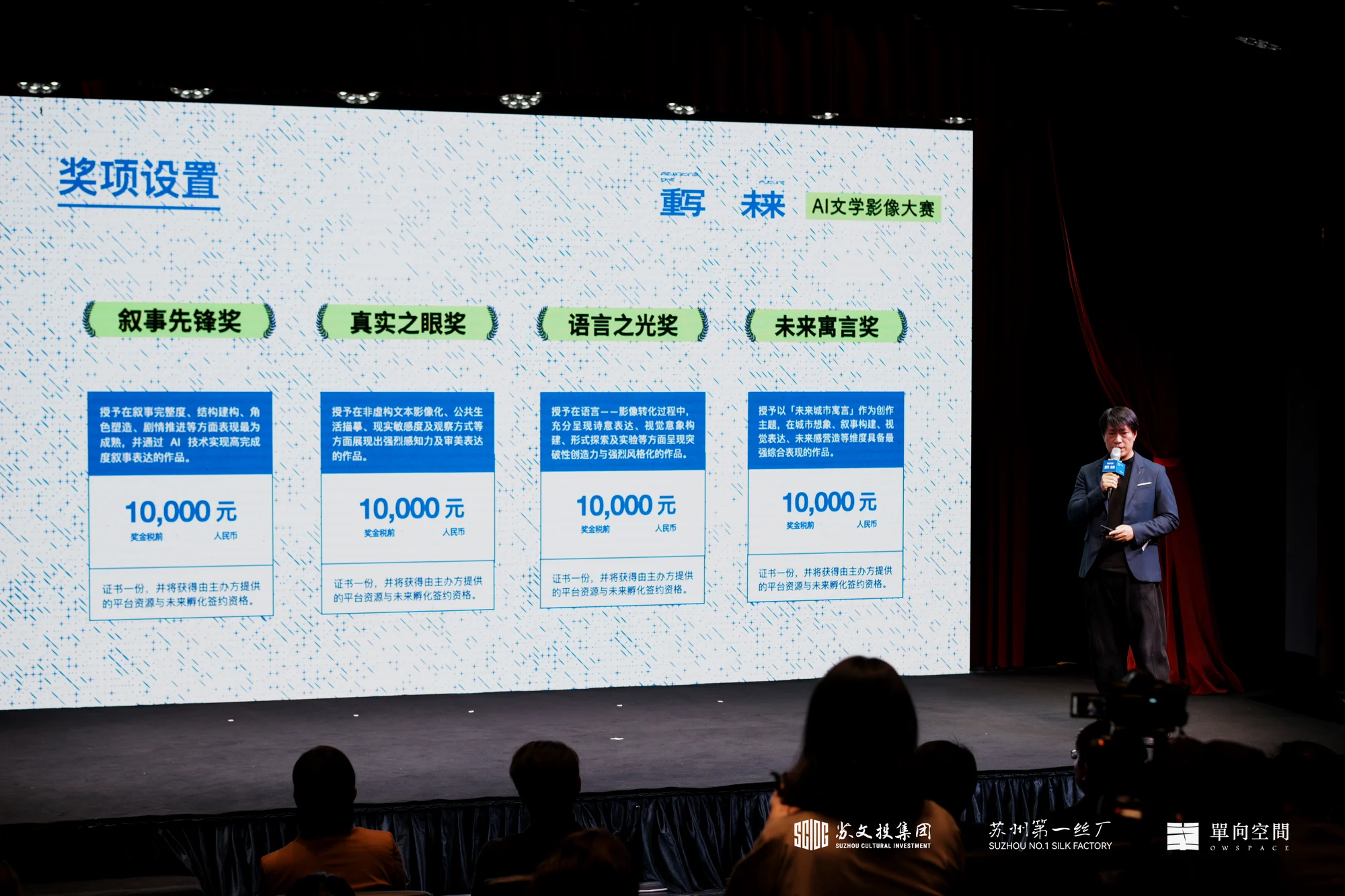 陈龙在致辞中分享:“每次技术革新都伴随焦虑,但更应看到机遇。”他同时透露,苏州市及苏文投集团设立了多项扶持计划,资金规模达六亿元,旨在支持青年创意与文化产业孵化。“我们诚挚邀请全国的文学与科技爱好者来到苏州,展现才华,共创未来。”