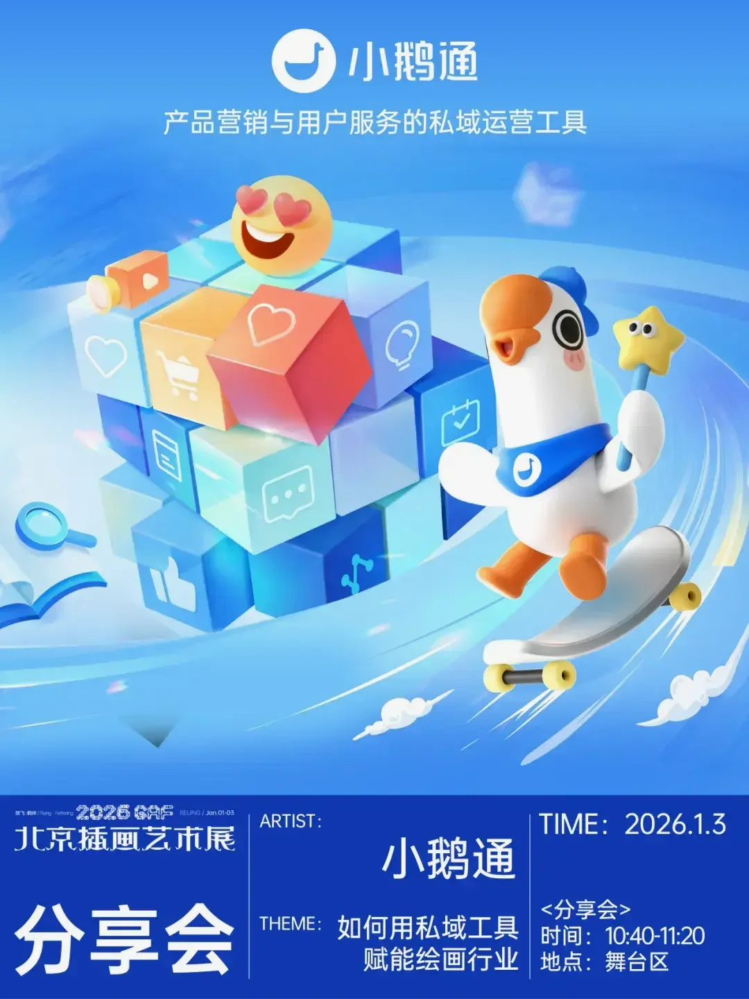 官方准备了满满三天的精彩活动:从开幕仪式、海外对谈、绘本创作,到主题分享、限量签售、作者见面会……每天花样不重样,带你全方位感受艺术的每一个角落!活动也特邀多位国内顶流插画师、国风美学大咖、漫画家和动画导演齐聚现场。他们将和你面对面,畅聊创作干货、行业趋势,分享如何将热爱变成事业,全是走心分享!快来艺术节现场亲自体验吧!