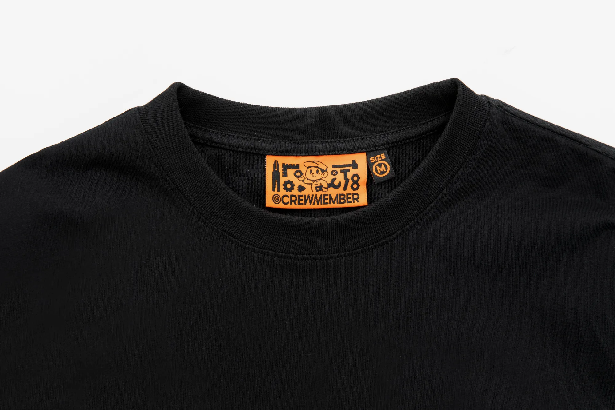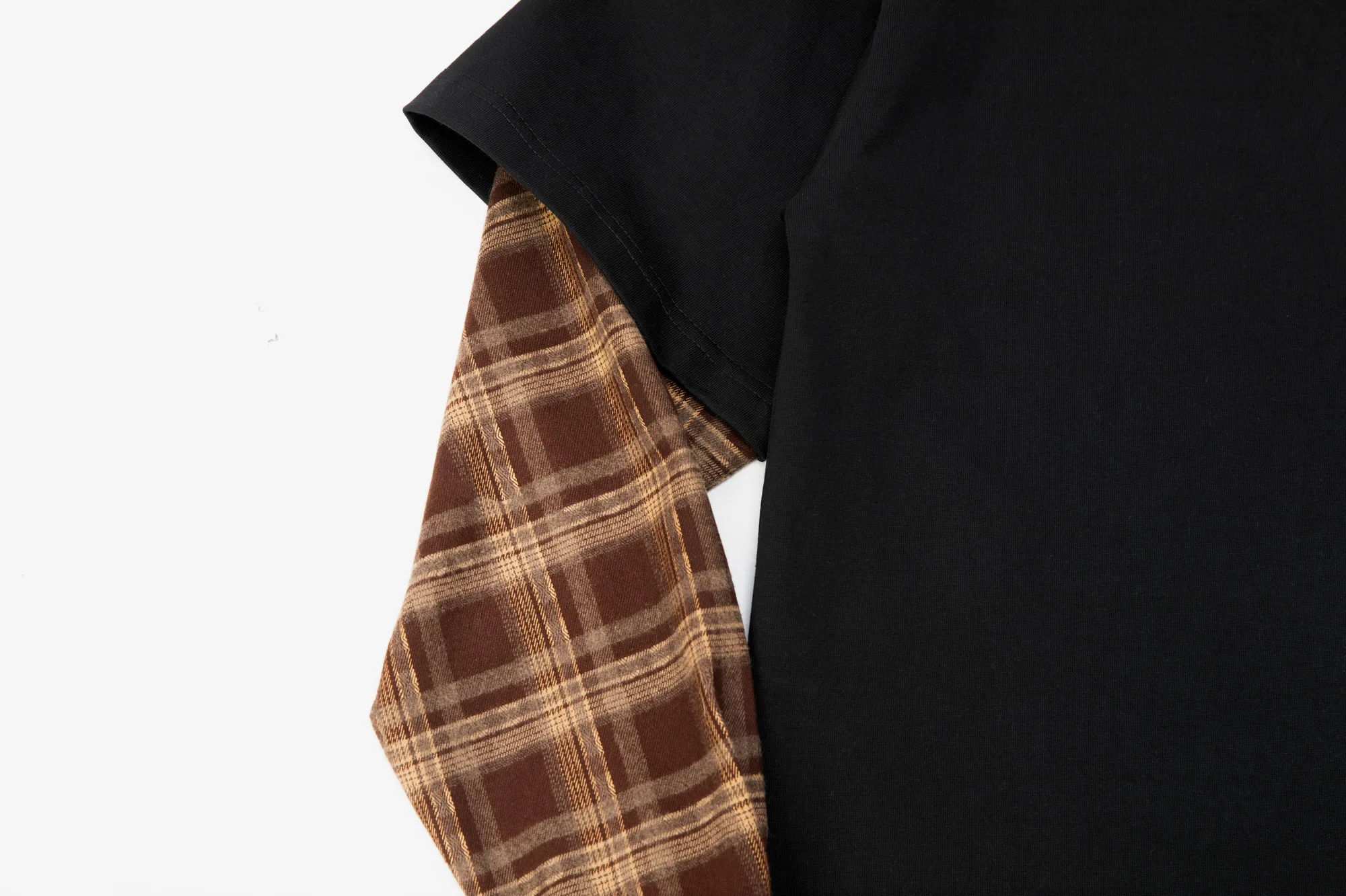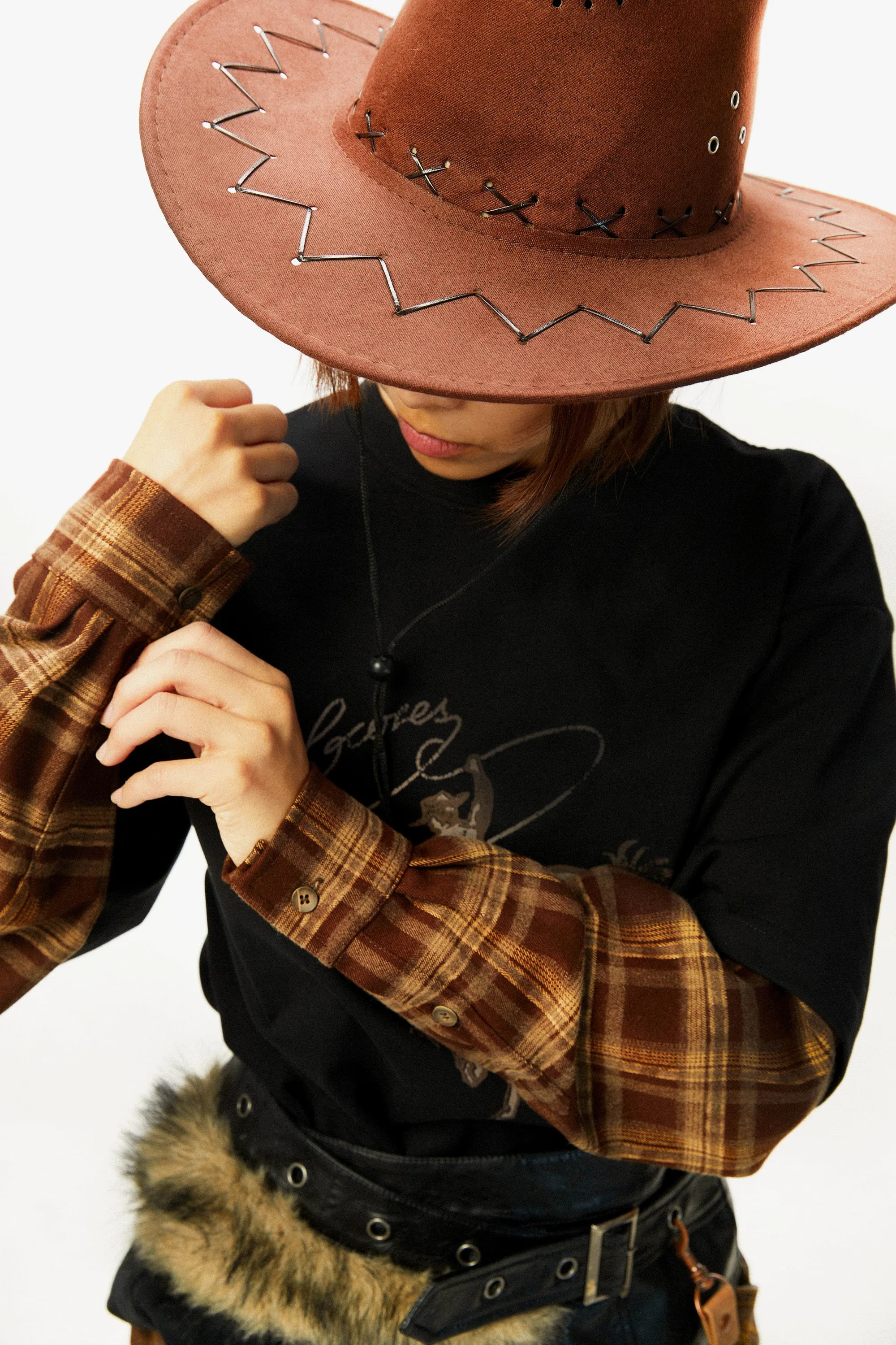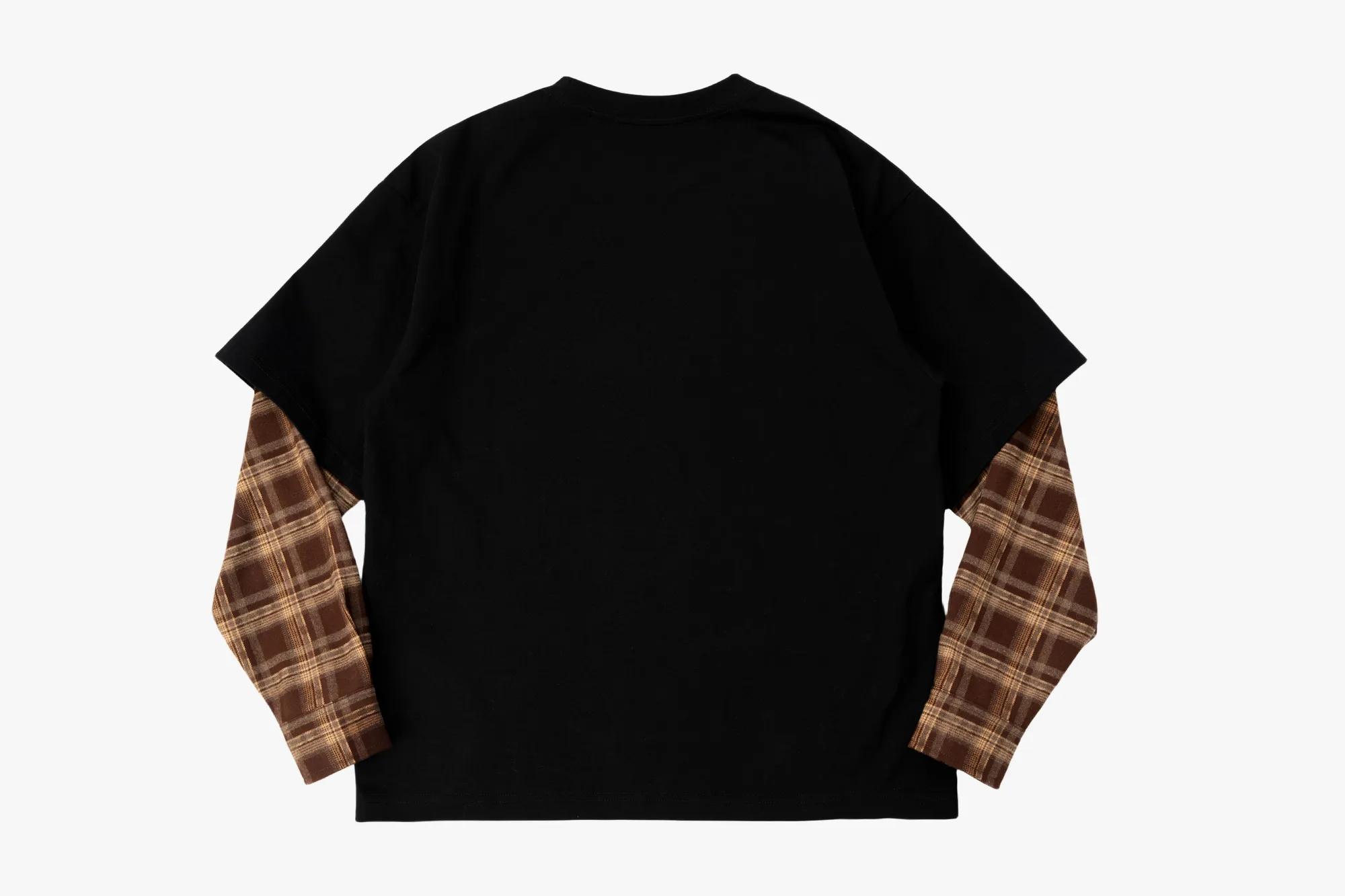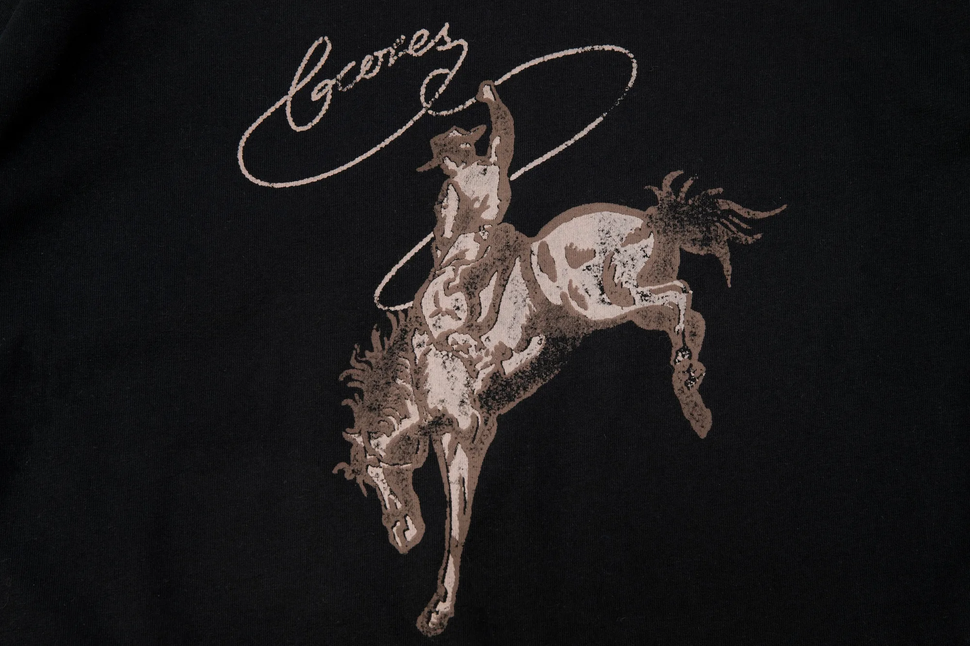 马年系列假两件长袖 T恤,巧妙融合了美式西部风情与现代叠穿美学,在沉稳的深色系中更添几分层次细节。