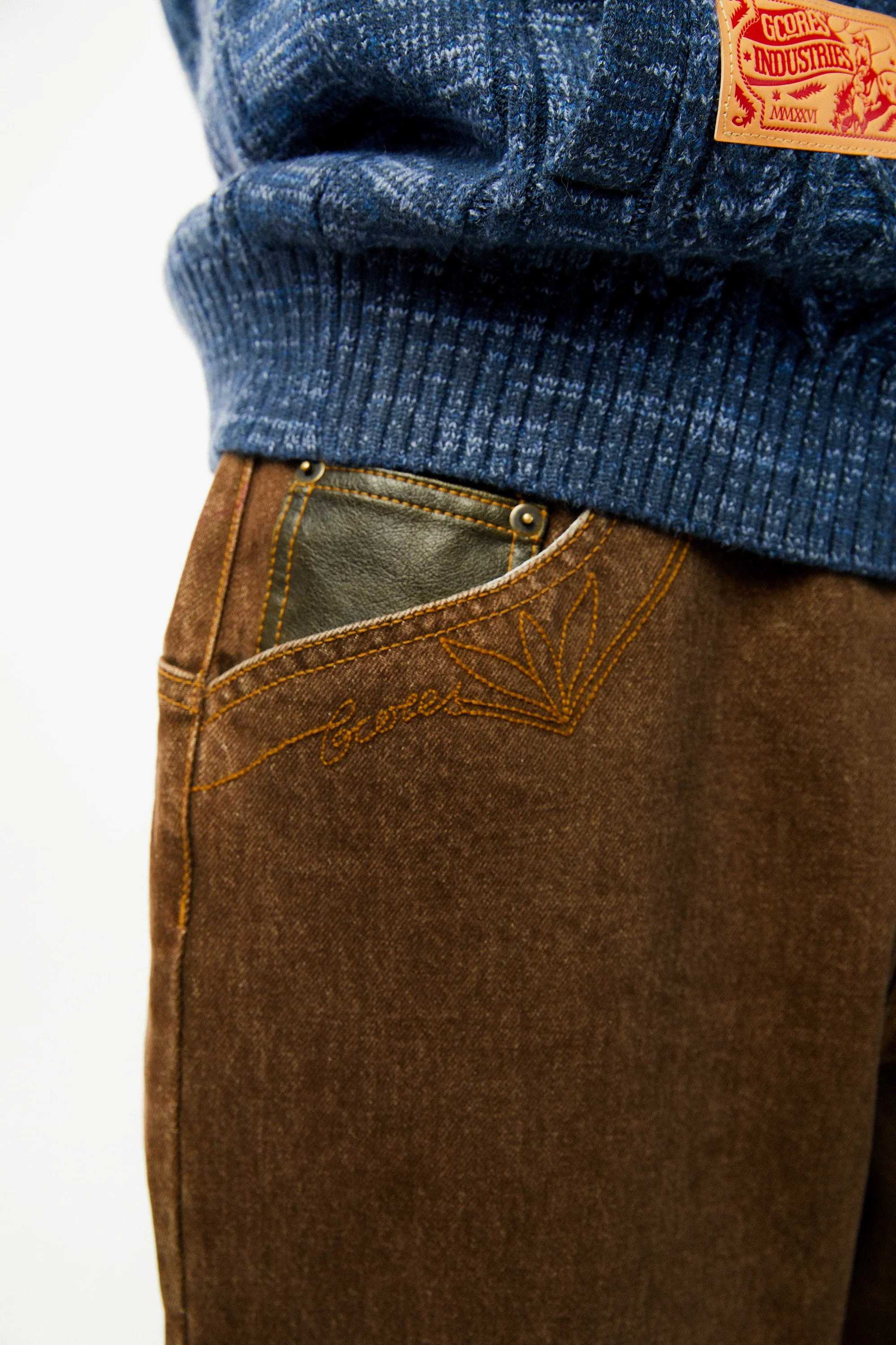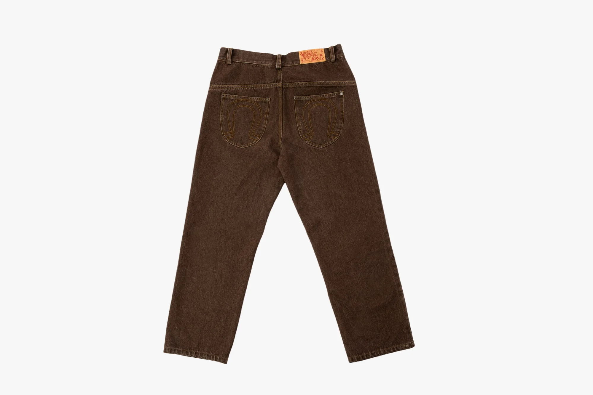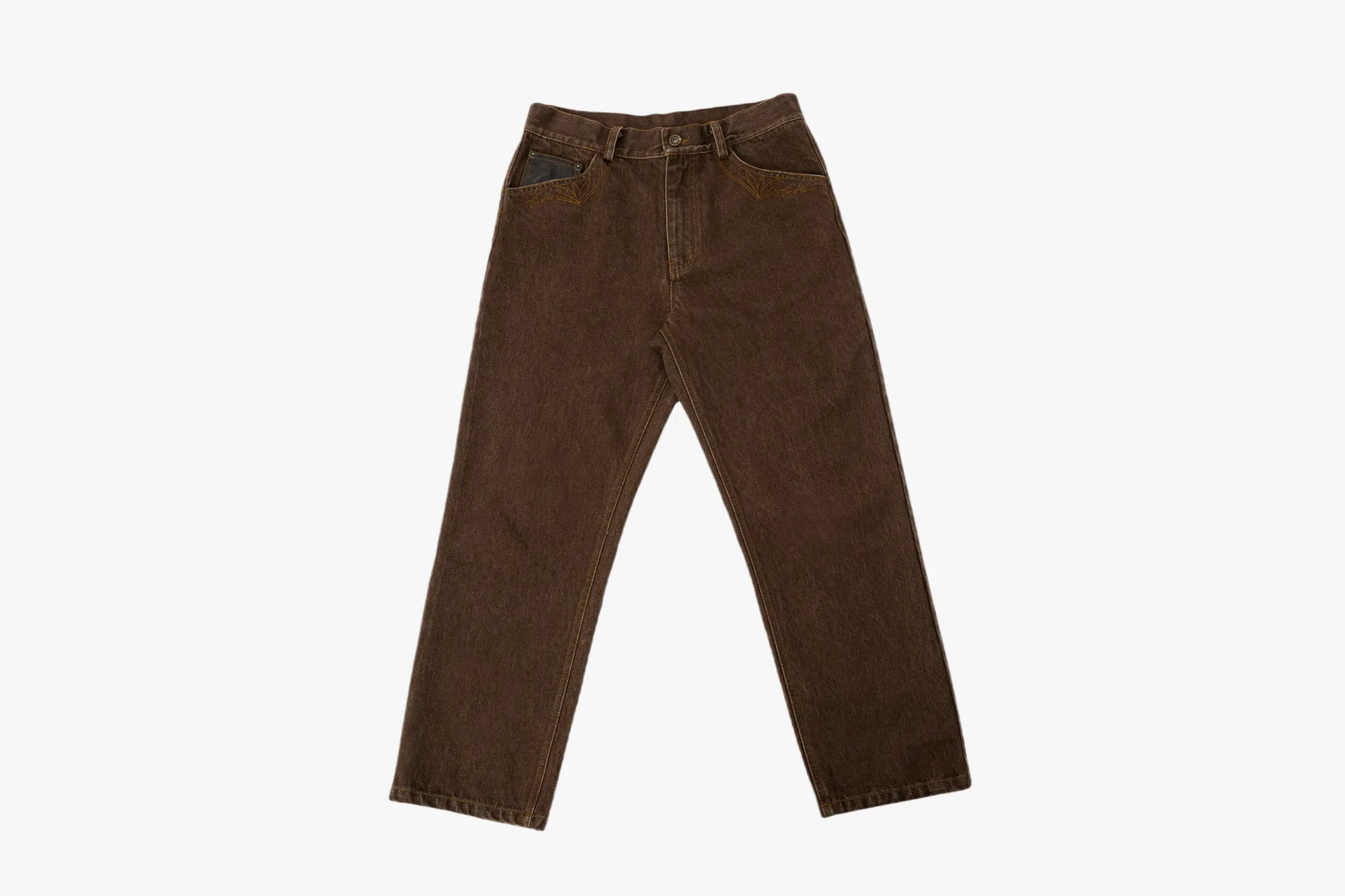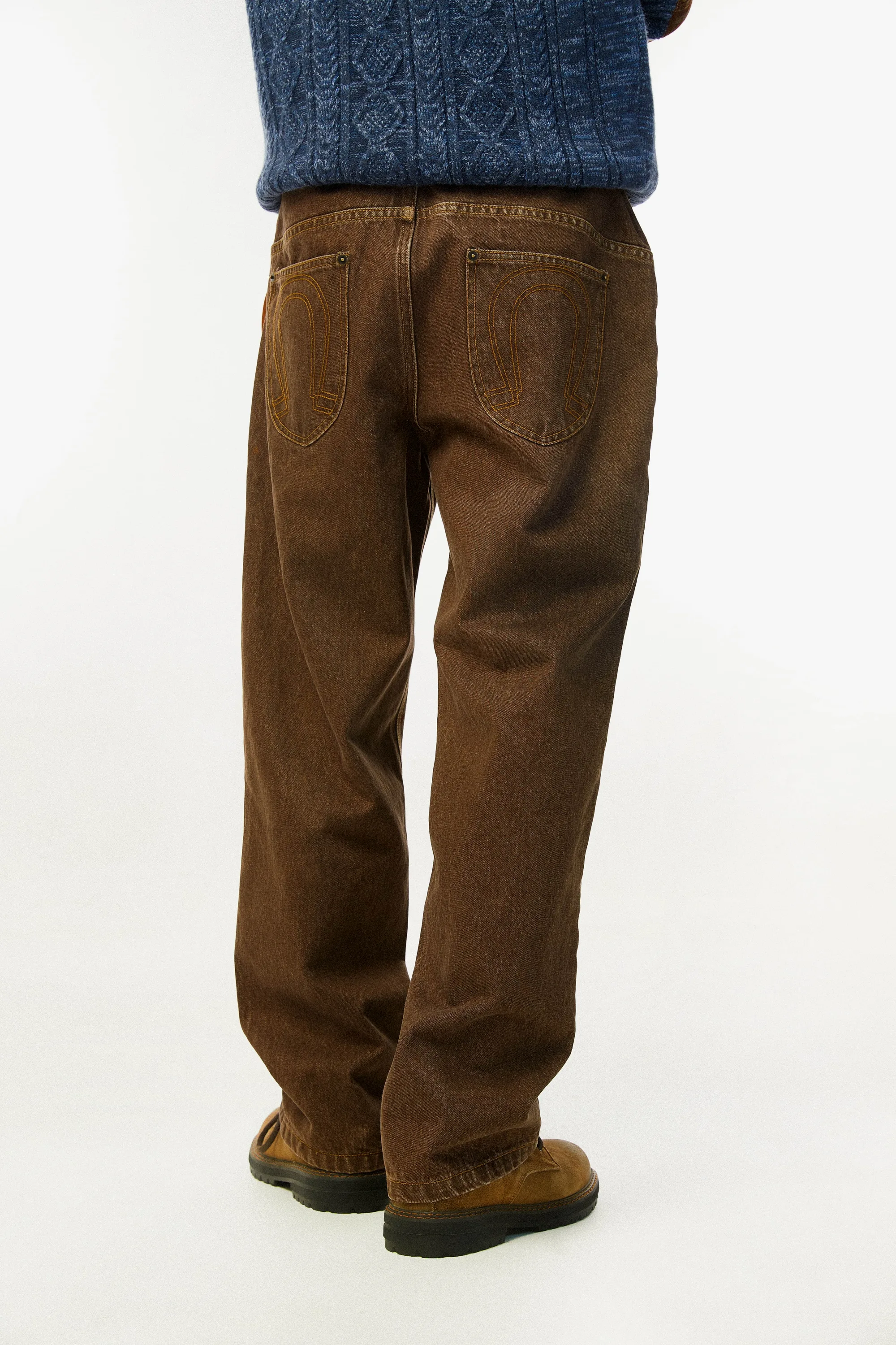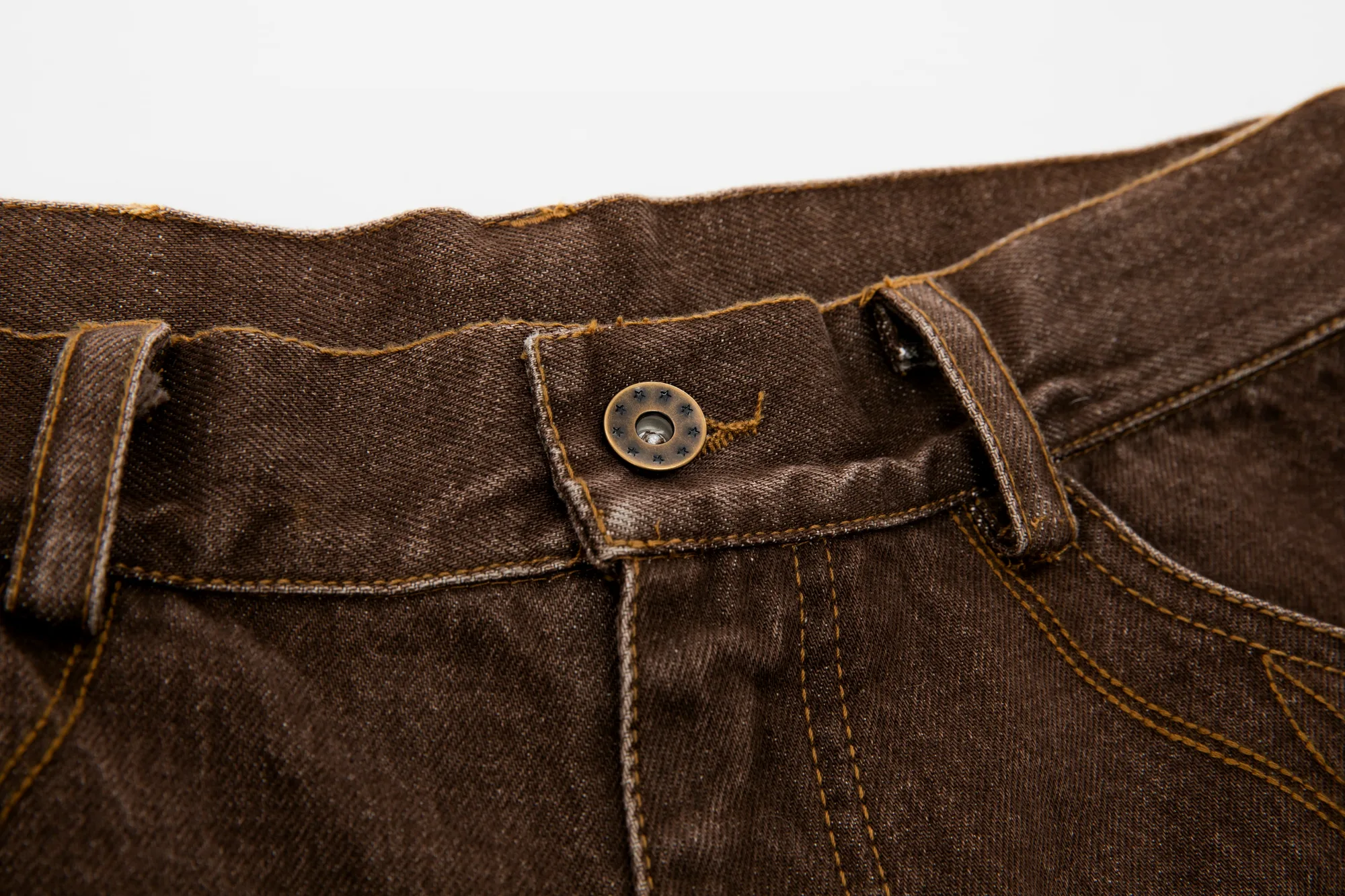 马年系列牛仔裤以醇厚的咖色调重塑经典丹宁美学,兼具复古主张与实穿主义。甄选 430g 高克重 100%纯棉面料,经成衣水洗工艺处理,在保持扎实挺括版型的同时,呈现出自然的复古肌理与舒适触感。