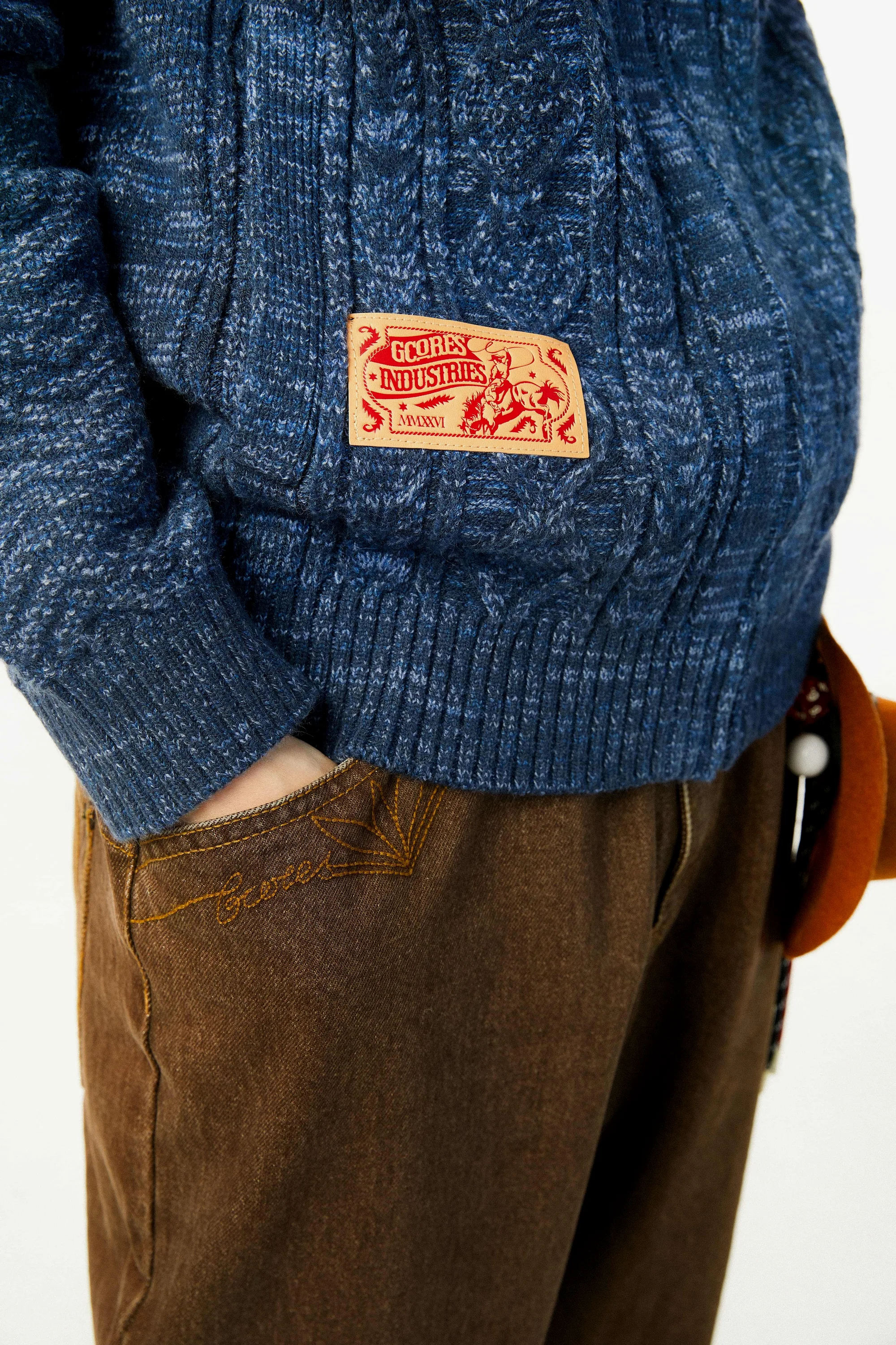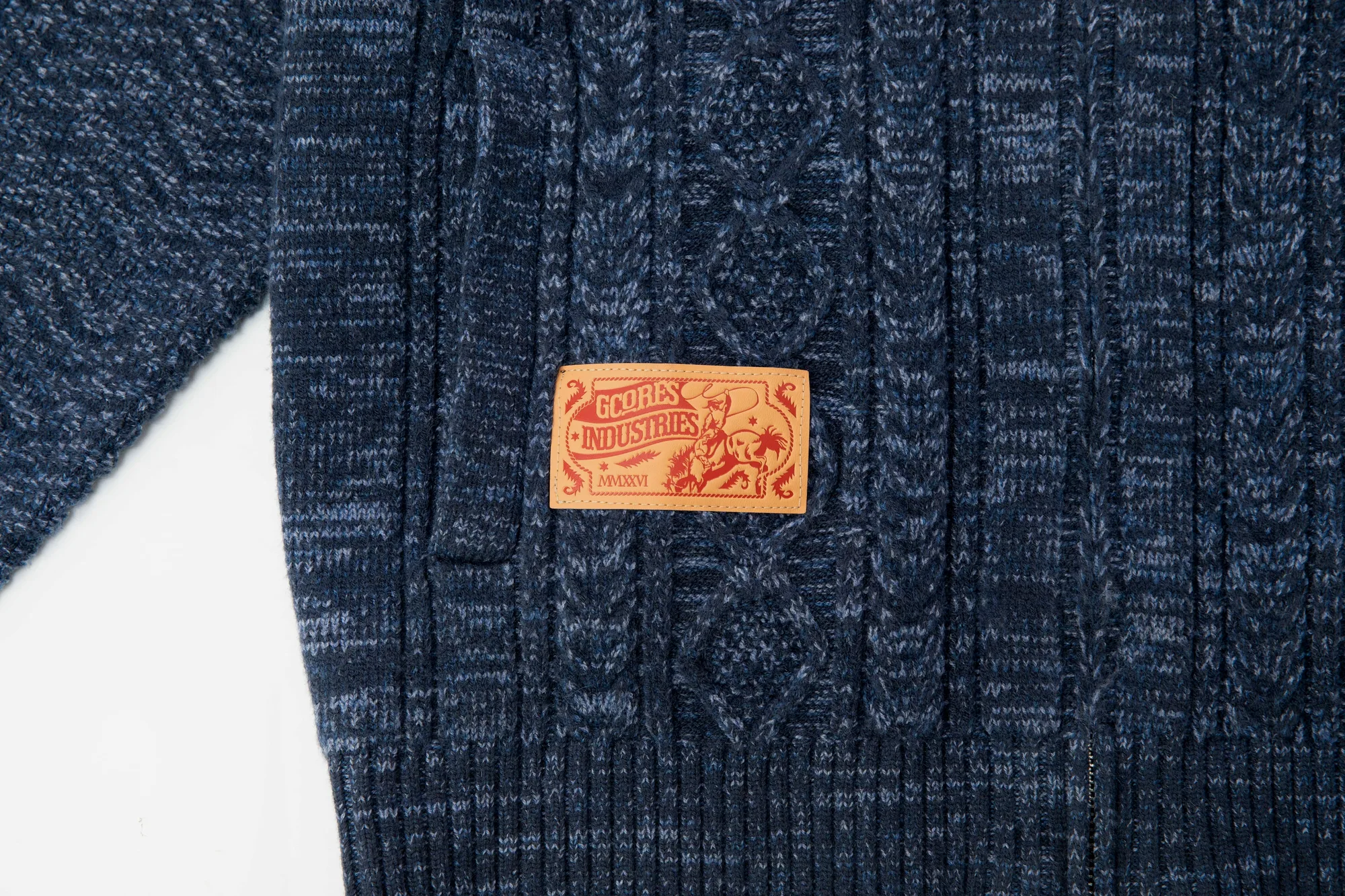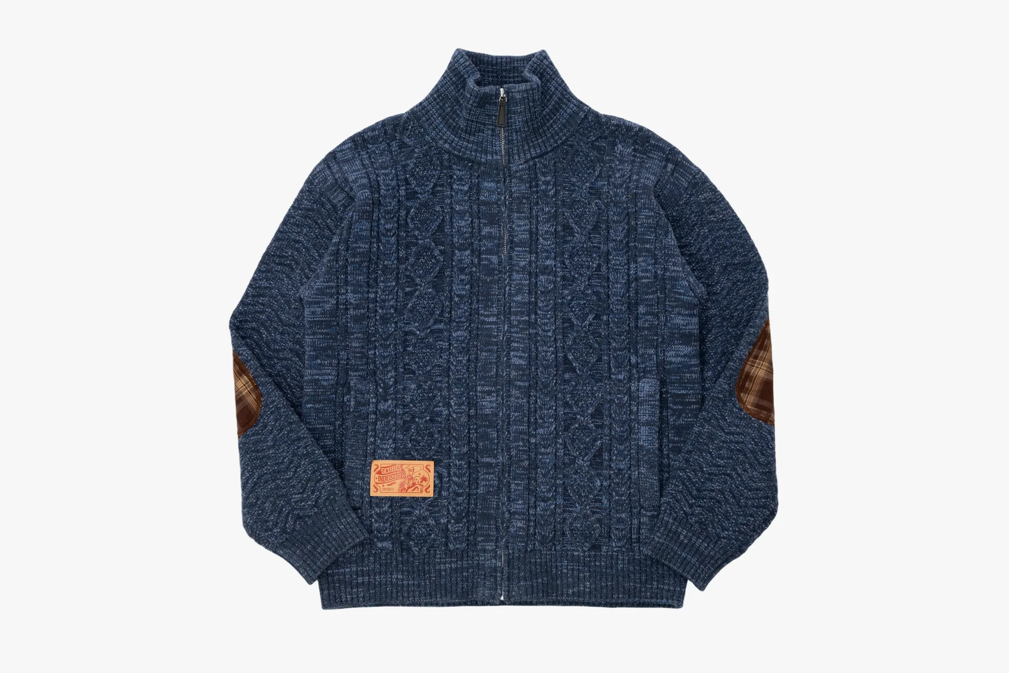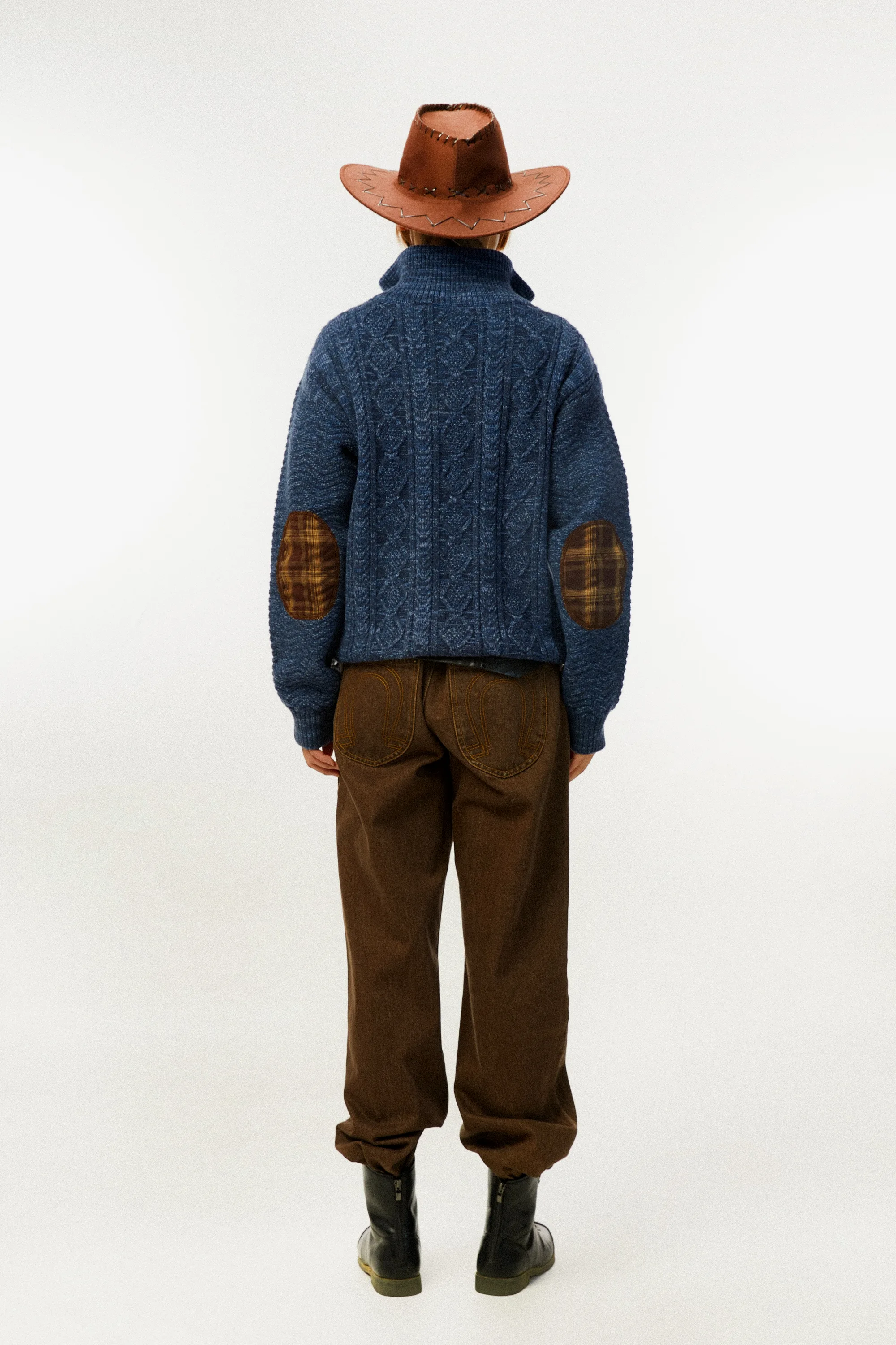 迎接马年的诚意之作,该款靛蓝爱尔兰麻花针织开衫在工艺上延续了源自阿伦群岛的经典渔夫毛衣工艺。衣身繁复的针法蕴含着美好寓意:麻花纹理如渔夫结一般,象征着海上的坚韧生活;而篮格纹则寄托了满载丰收的愿景。