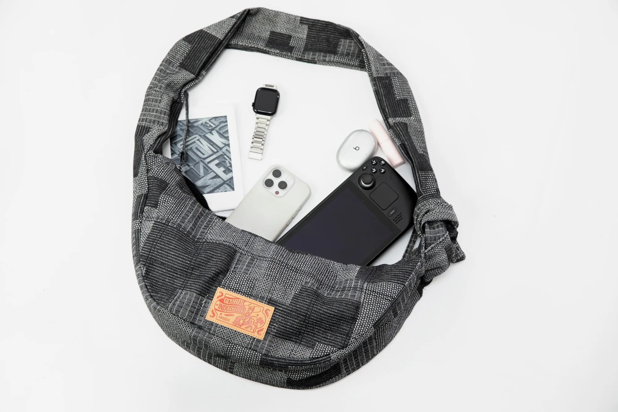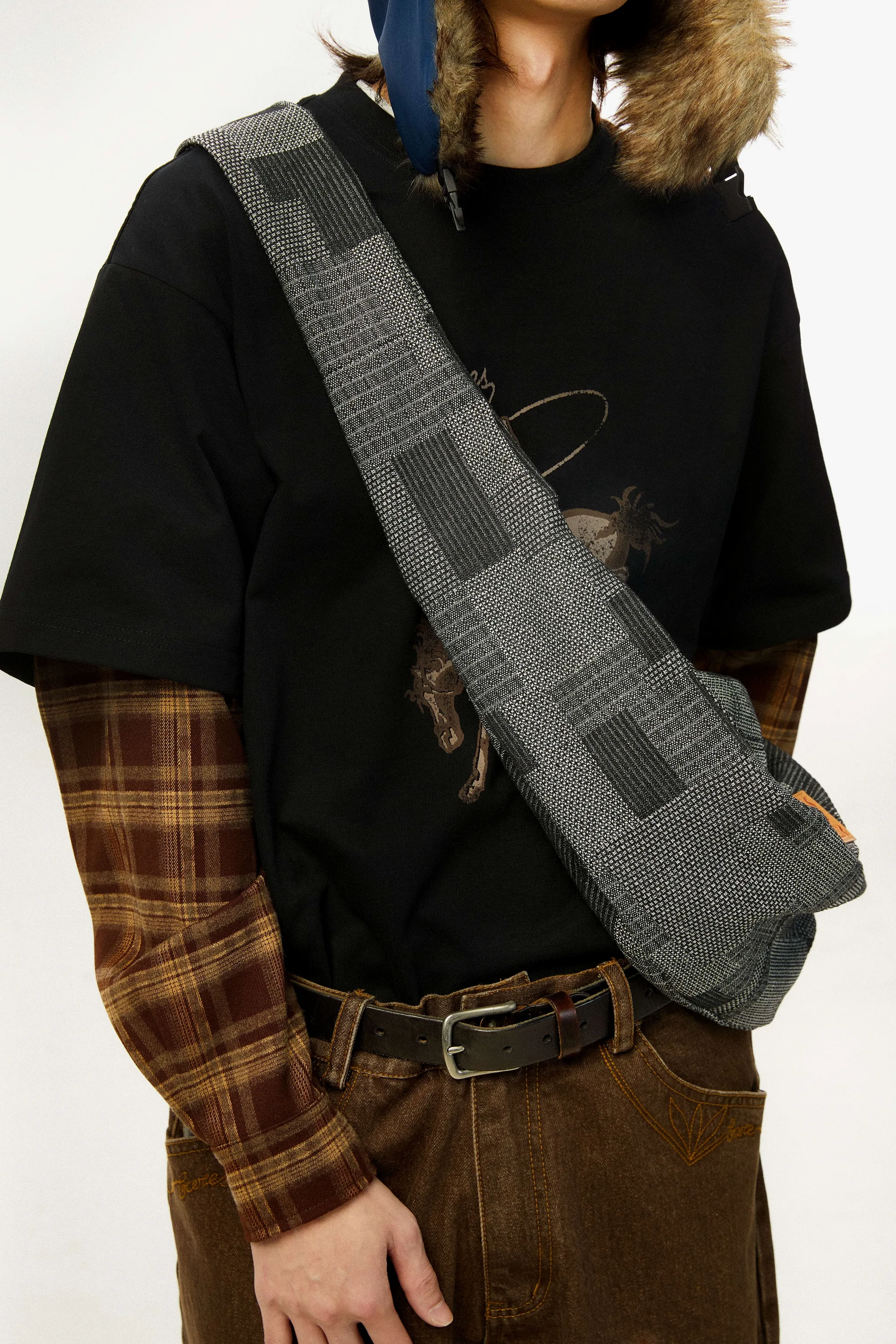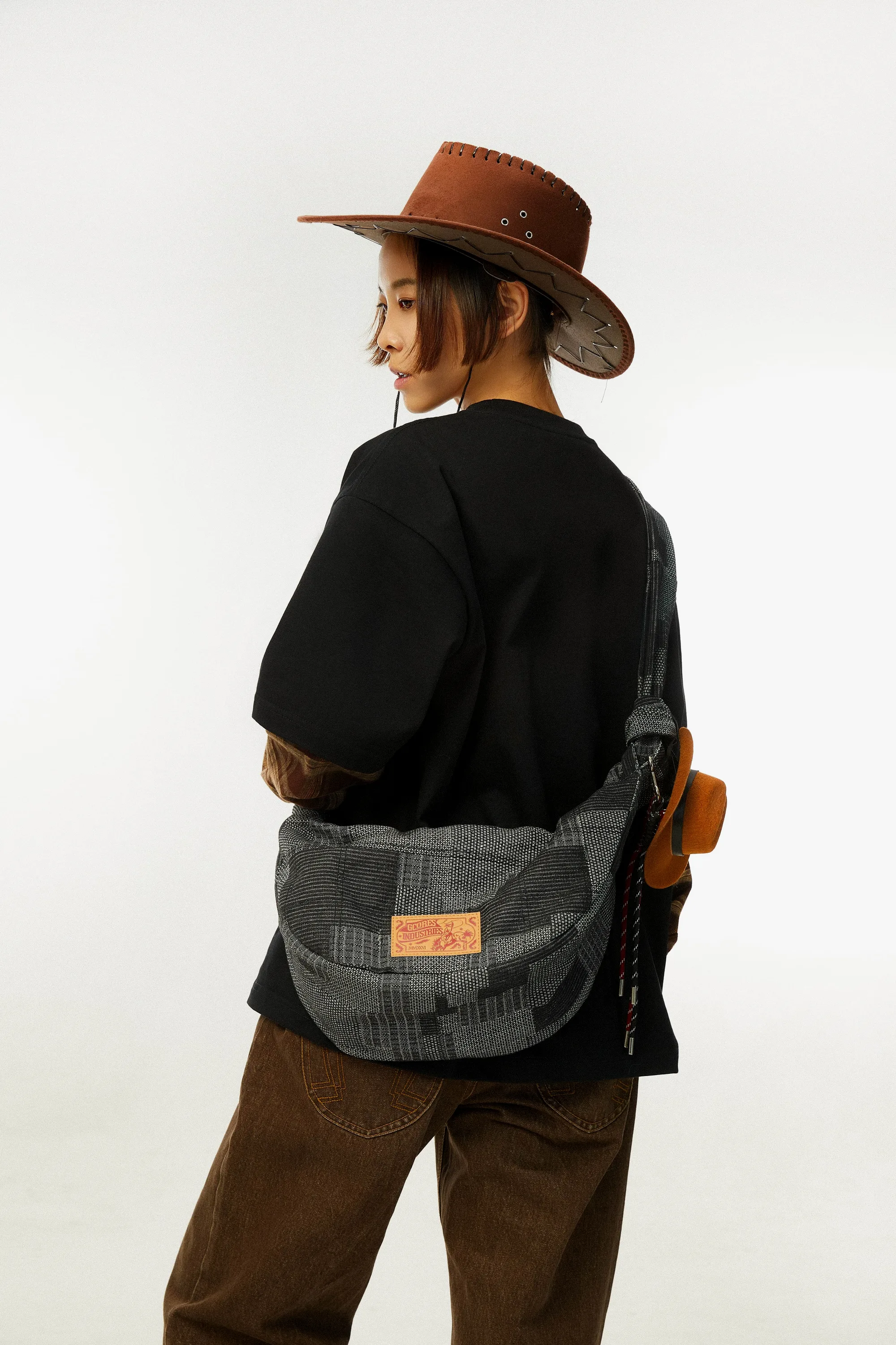 该款斜挎包选用造型独特的「饺子包」作为基础包型,并选用牛仔蓝及黑色拼接的百家布面料,纹理清晰,结实耐用,包身容积也十分适合日常外出使用。